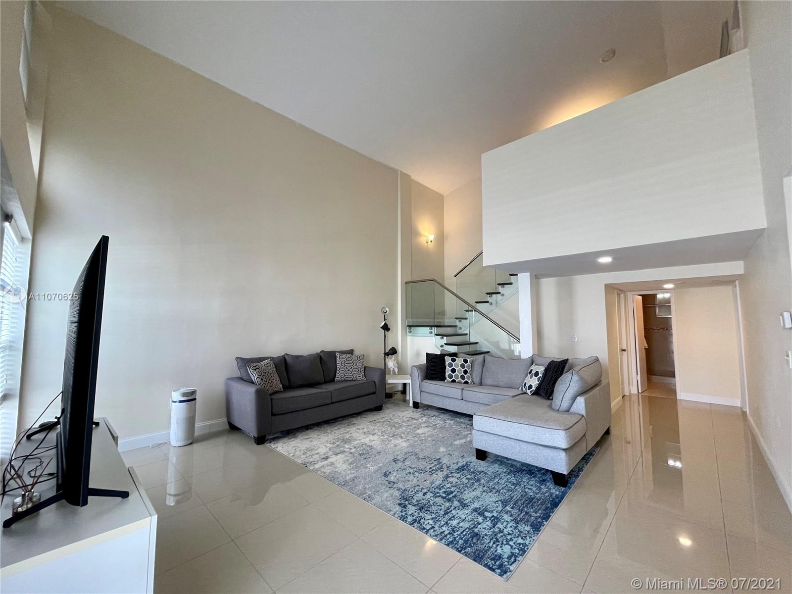 Immaculate, completely upgraded, modern townhome in the heart of Aventura, w/ breathtaking views of the intercostal waterway & skyline. The home features a new roof (2019), soaring 18 ft cathedral ceiling, double master suites upstairs, den downstairs large enough to be a third master bedroom, loft, modern glass stair rails, high polished imported porcelain tiles. Big upgraded kitchen, w/ double pantry, real wood cabinets, granite counters, glass black splash & stainless steel appliances. All bathrooms upgraded. Master bath features an oversize jacuzzi tub & separate water closet. Enclosed patio perfect for entertaining & BBQing. Property amenities include, pools, gazebos, tennis courts, gym, sauna, & billiards room. Water, Sewer, Trash, Internet, & Cable included w/ HOA Fees.