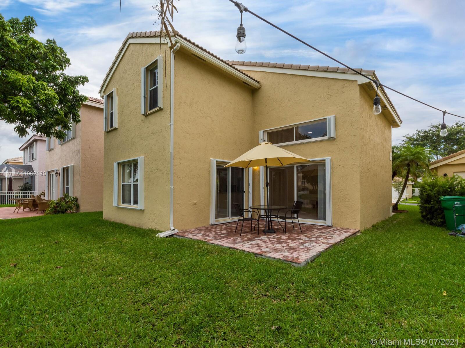 Spectacular two story home with a relaxing back patio with calming quiet lake view waiting for new homeowners to design and build their dream South Florida pool This home features 4 bedrooms, 2 and 1/2 bathrooms, 2 car garage with today's white kitchen cabinets remodeled (2021), brand new SS microwave, refrigerator & dishwasher, wood laminate flooring for stairs and all bedrooms, updated bathrooms, new blinds, new lights, inside laundry room. home was just freshly painted inside and outside. New A/C (2019) and water heater and most importantly accordion shutters. The property is within walking distance of the Town Center with shopping and entertainment, close to highways and hospital... A+ rated schools.