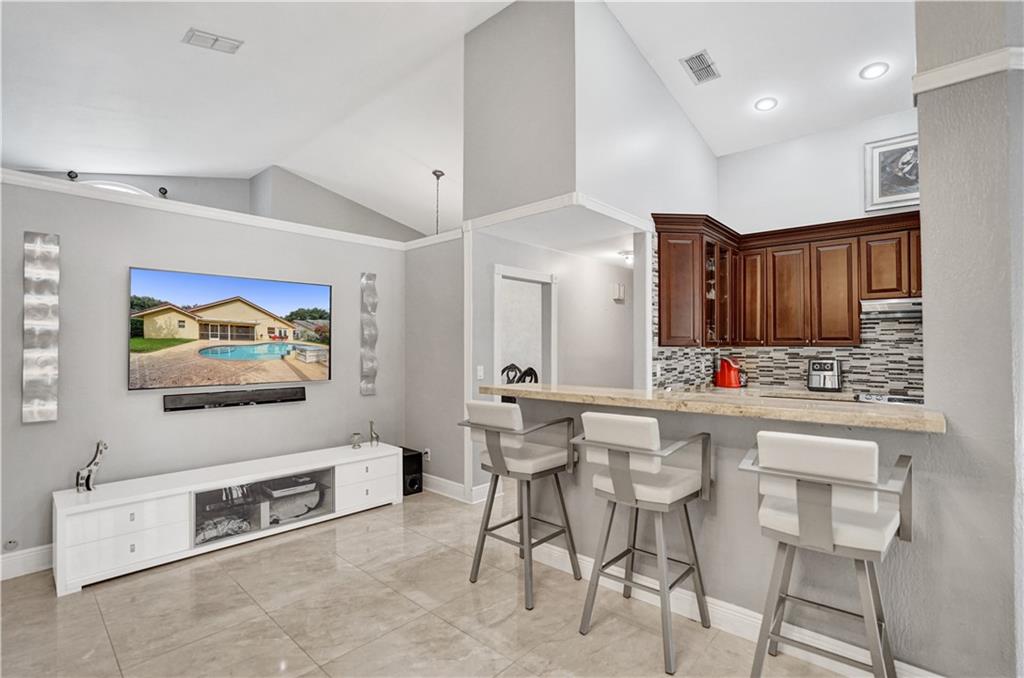 Updated 4 bed/3 bath, pool home in the protected preserve neighborhood of Oak Knoll Ridge. Newer kitchen with granite/stainless steel appliances & bar. Family room and kitchen features french doors over looking covered, screened in patio and pool area. Partial hurricane impact windows. Neutral porcelain tile through out. Spacious master bedroom with french doors over looking pool area. Walk in closet. Reconfigured master bathroom with spacious shower, double sinks and separate make up area. A split bedroom floor plan, 4th bedroom has bathroom en suite and walk in closet. Access to Pine Island Country Club includes membership to golf, pool, fitness center, tennis and basketball and two restaurants. Nature preserve of 5 miles to enjoy, walking, biking & horse back riding trails