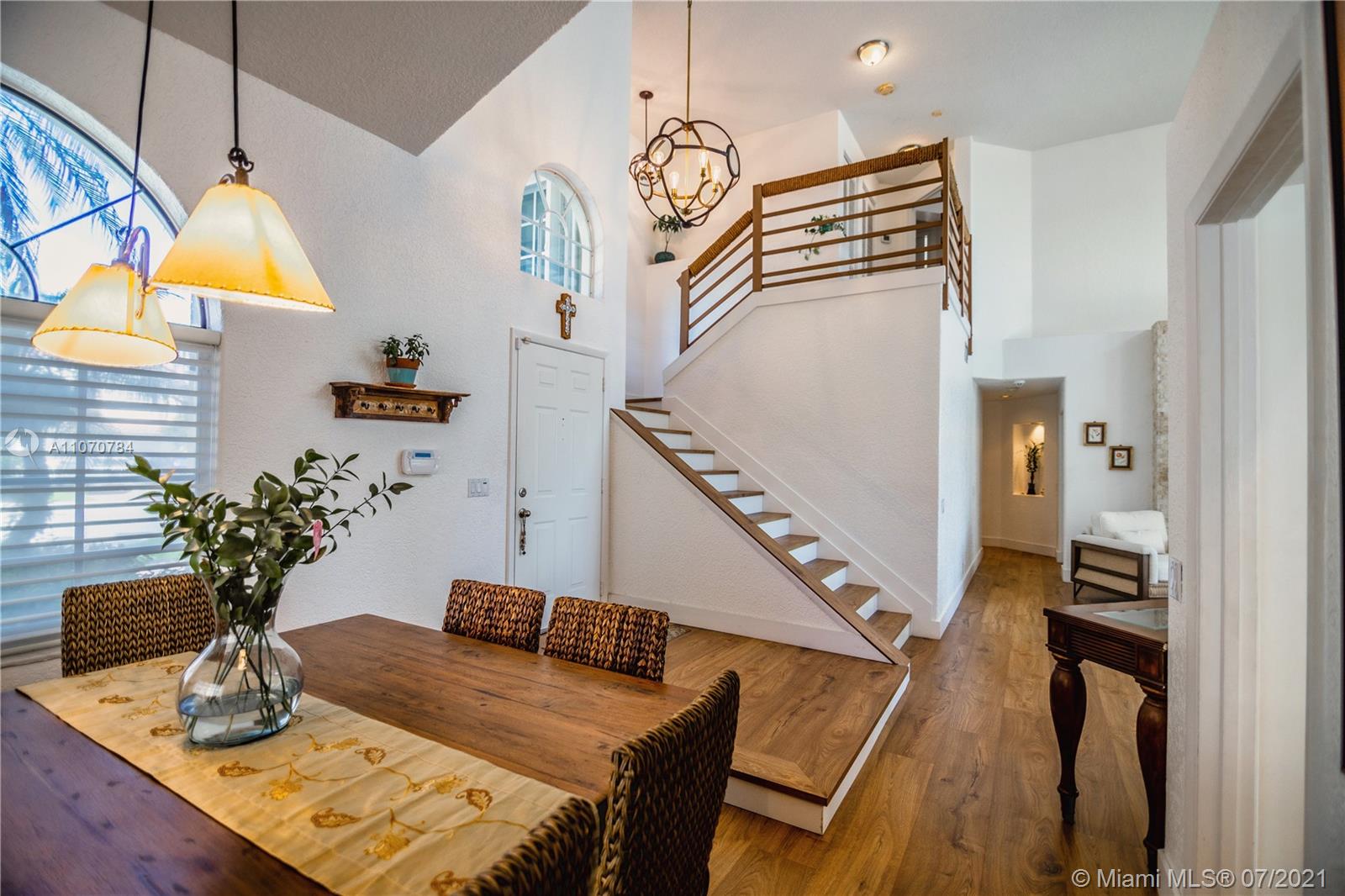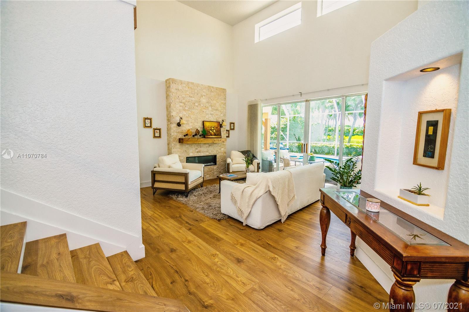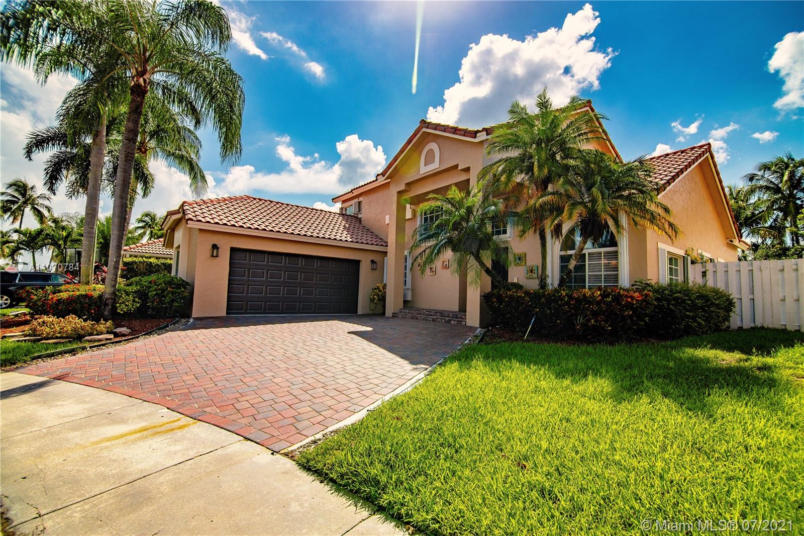 NO MORE SHOWINGS. IMMACULATE TWO STORY HOME IN DESIRED LAGUNA SPRINGS I - TWO BEDROOMS ON FIRST FLOOR - MASTER SUITE UPSTAIRS - MASTER BR HAS FRENCH DOORS LEADING TO BALCONY THAT WAS REDONE AT THE END OF 2020, OVERLOOKING DOME SCREENED POOL AND SERENE WATERVIEW - MASTER BATH WITH HEATED JACUZZI TUB - SWISS LAMINATED FLOORS THROUGHOUT THE HOUSE, WATER AND FLOOD RESISTANT UP TO 72 HOURS- CUSTOM SILHOUETTE BLINDS - REMODELED BATHROOMS - KITCHEN WITH NEW SAMSUMG APPLIANCES (2019) - ELECTRIC FIREPLACE IN LIVING ROOM AREA. CEDAR WOOD AND STONE COLUMNS IN POOL AREA. A/C 9 YEARS OLD W/UV FILTER - SOLAR WATER HEATER - ROOF AFTER WILMA - ACCCORDION SHUTTERS - NEW HURRICANE PROTECTION GARAGE DOOR ( SEPT.2020). NEW PAVERS INSTALLED ON NOV. 2020 IN DRIVEWAY. EXTERIOR JUST PAINTED. CUL-DE-SAC LOT.