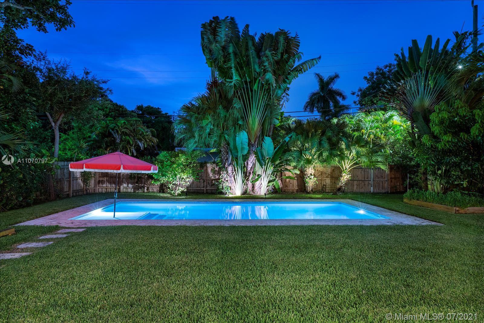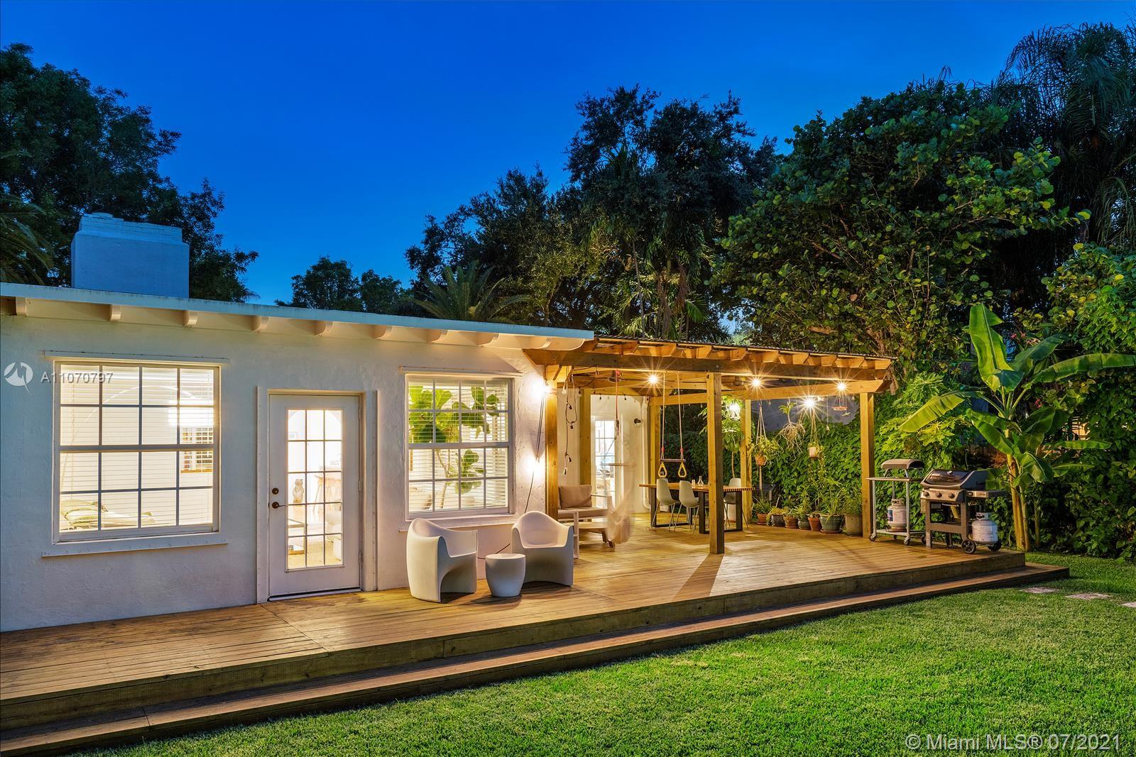 Come home to a fully updated 1506 sq. ft. 3 bed/2 bath pool home on an oversized lot in the heart of Miami Shores. This property epitomizes the indoor-outdoor lifestyle that defines Florida living. Entertain family and friends from the beautifully remodeled kitchen complete with gas range and Fisher & Paykel appliances. Dine al fresco or lounge away summer days on a 566 sq. ft. covered deck overlooking the landscaped private yard with pool, fruit trees and outdoor shower. Inside, natural light pours into the family room which is connected by custom arches to the open kitchen/formal living room with restored hardwood floors and a wood burning fireplace. Flowing throughout the home are curated design details brought together by thoughtful renovations. Just blocks from Downtown Miami Shores!