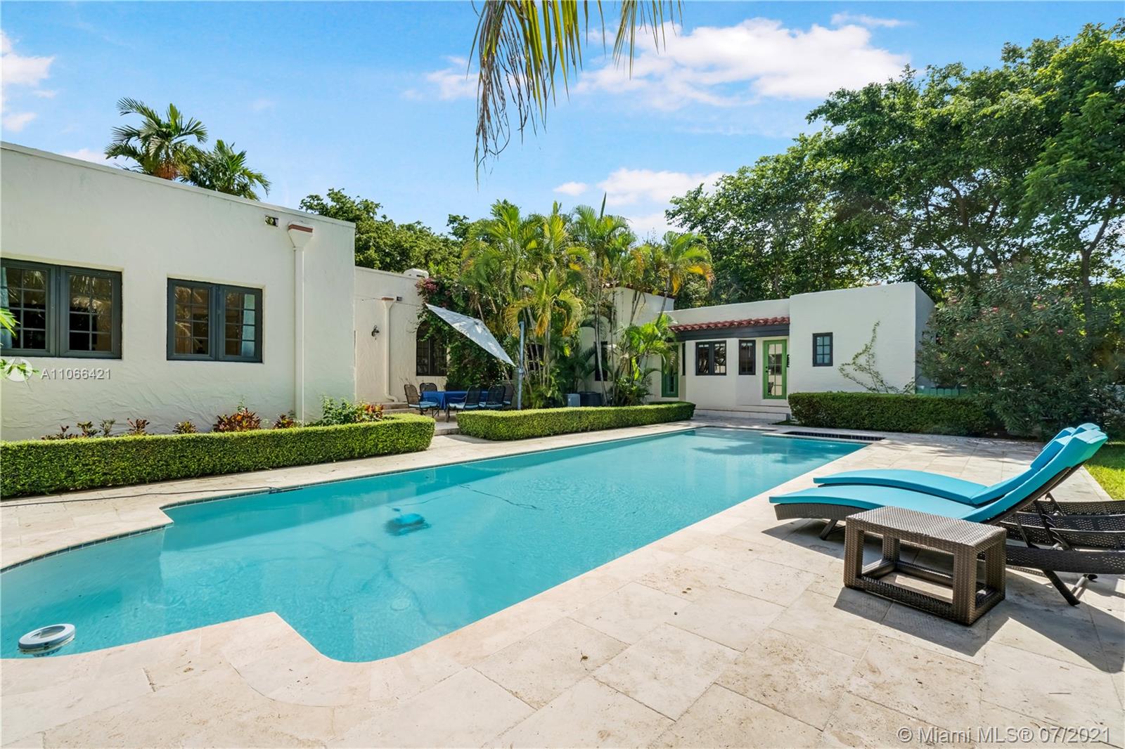 Exquisite elegance and charm define this renovated old Spanish house sitting on an almost 13,000 SF lot with tons of curb appeal and a beautiful back yard to enjoy Miami's lifestyle! Split floor plan with 4bedrooms / 3 bathrooms on one side of the house and another second master suite or large family room/guest suite on the other side of the house. All bedrooms have plenty of closet space and extra living spaces, perfect for today’s lifestyle with the rise of the home office. Hardwood floors throughout most of the house, gas stove, fireplace, impact windows with beautiful views onto a stone patio and gorgeous pool area. Kitchen and bathrooms were recently updated. Great location next to the best tennis in Miami, the Biltmore, the Golf course, the Venetian pool and top rated schools.