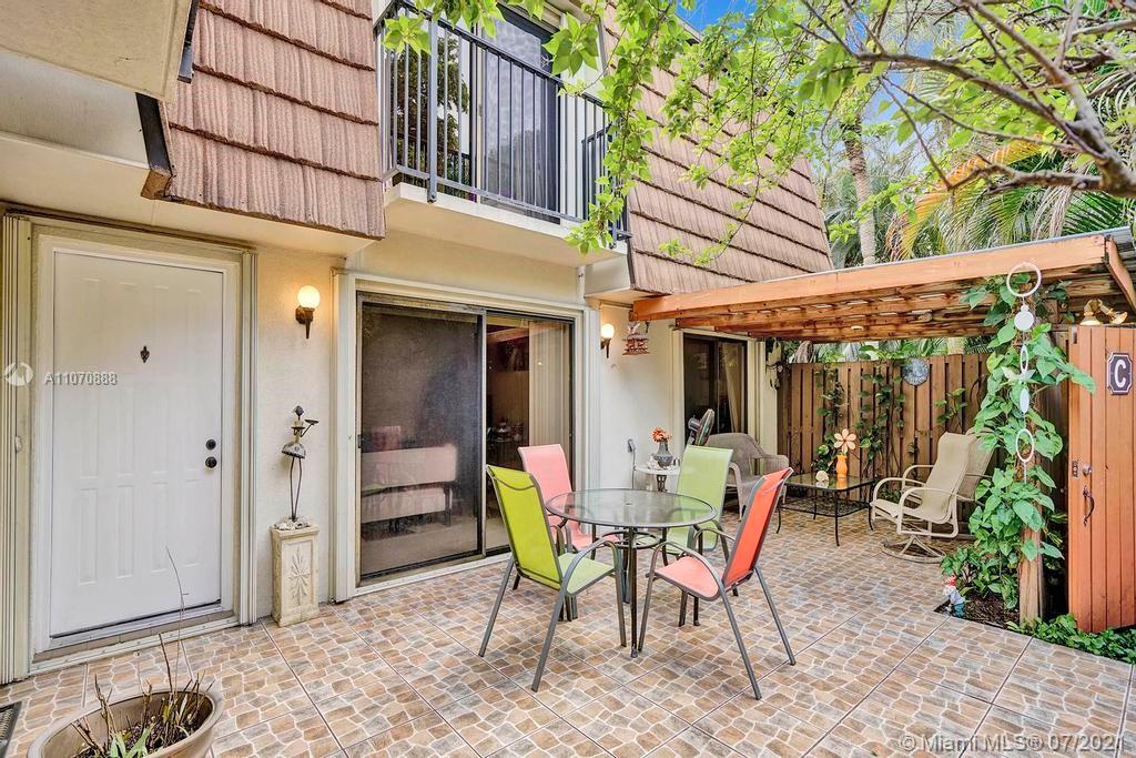 Spacious end unit Townhome with 2 Bedrooms Upstairs with balconies & 1 bedroom downstairs. Oversized Master Bedroom, Master Bath with Dual sinks, His/Her Walk In Closet. Large 2nd bedroom with plenty of closet space. Accordion Shutters throughout, Sliding Glass Doors overlooking the CourtYard perfect for entertaining. Maintenance Includes Roof Repairs, wood fence repairs, Basic Cable, Lawn and exterior insurance. All units must be owned for 1 year before the unit may be rented. Two assigned parking spaces and plenty of guest parking. Golf Community with State of Art clubhouse and Amenities including renewed 18 hole Golf Course, community Pool, Kiddie Pool, Gym, Library, Game Room and Restaurant. Great School District, close to highways, Shops, Entertaining and much more.