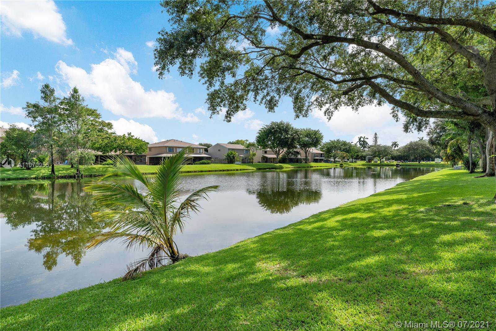 Rarely available 3/2.5 corner townhome in Saddle Up Davie. Gated courtyard in front and lovely wood deck overlooking the lake in back. Open concept kitchen with stainless steel appliances and granite countertops. All 3 bedrooms upstairs. Master bedroom with view of the lake and huge master closet with wood built-ins. Lovely finishes in master and hallway bathrooms. This gated community includes rentable barn stalls, lighted riding ring, pool with a clubhouse, dog park, and free storage area for boats/trailers/RV. Low HOA! Great location close to Shops & Dining, Broward College/Nova SE University and close to I-595 great for commuters. Move quick!