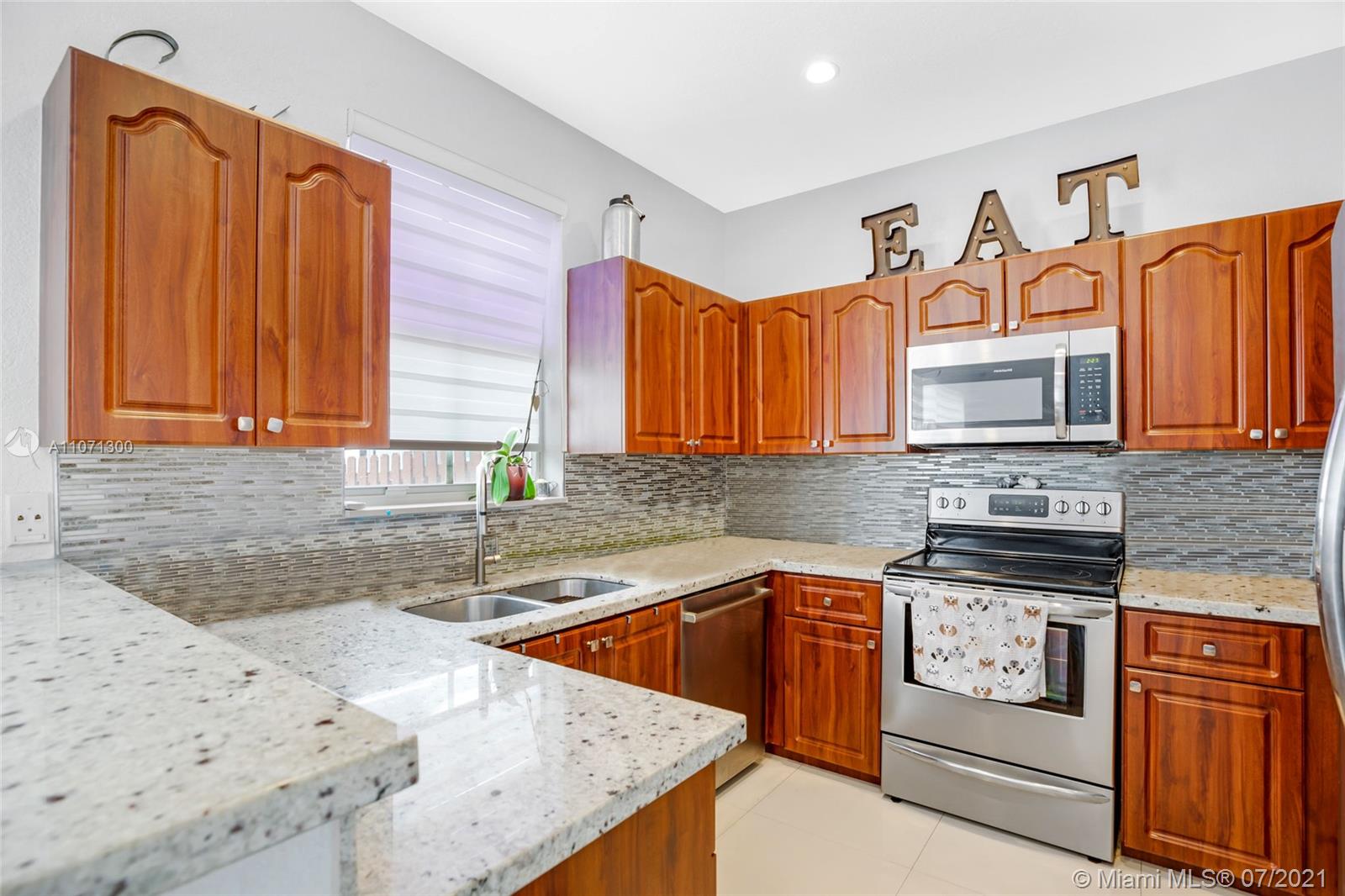 Great opportunity to live in a family community in Doral "Windward". 3 bedrooms and 2 and a half baths, kitchen, and bathrooms remodeled with granite countertops, wood cabinets, stainless steel appliances, tile on the first floor, and wood on the second floor. A/C unit 2016, the community has a swimming pool and playground. It is located close to highways, parks, shopping centers, schools and 15 minutes from Miami International Airport