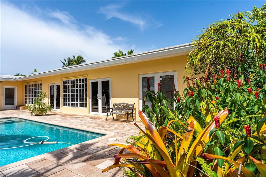 This 3 bedroom 2 bath home in the highly sought after Coral Ridge neighborhood and Bayview school district features tropical and lush landscaping on the 10,010 sqft fenced in corner lot. The 2,216 sqft under air boasts a magnificent great room that captivates and amplifies the exposed beams and tongue and groove ceilings for that WOW feeling when you open the front door. The fence has a double gate that allows for boat or RV parking. The backyard is great for entertaining alongside the pool and BBQing in the Summer kitchen. 2 newer A/C units and updated bathrooms make this house ready for you to call it home.