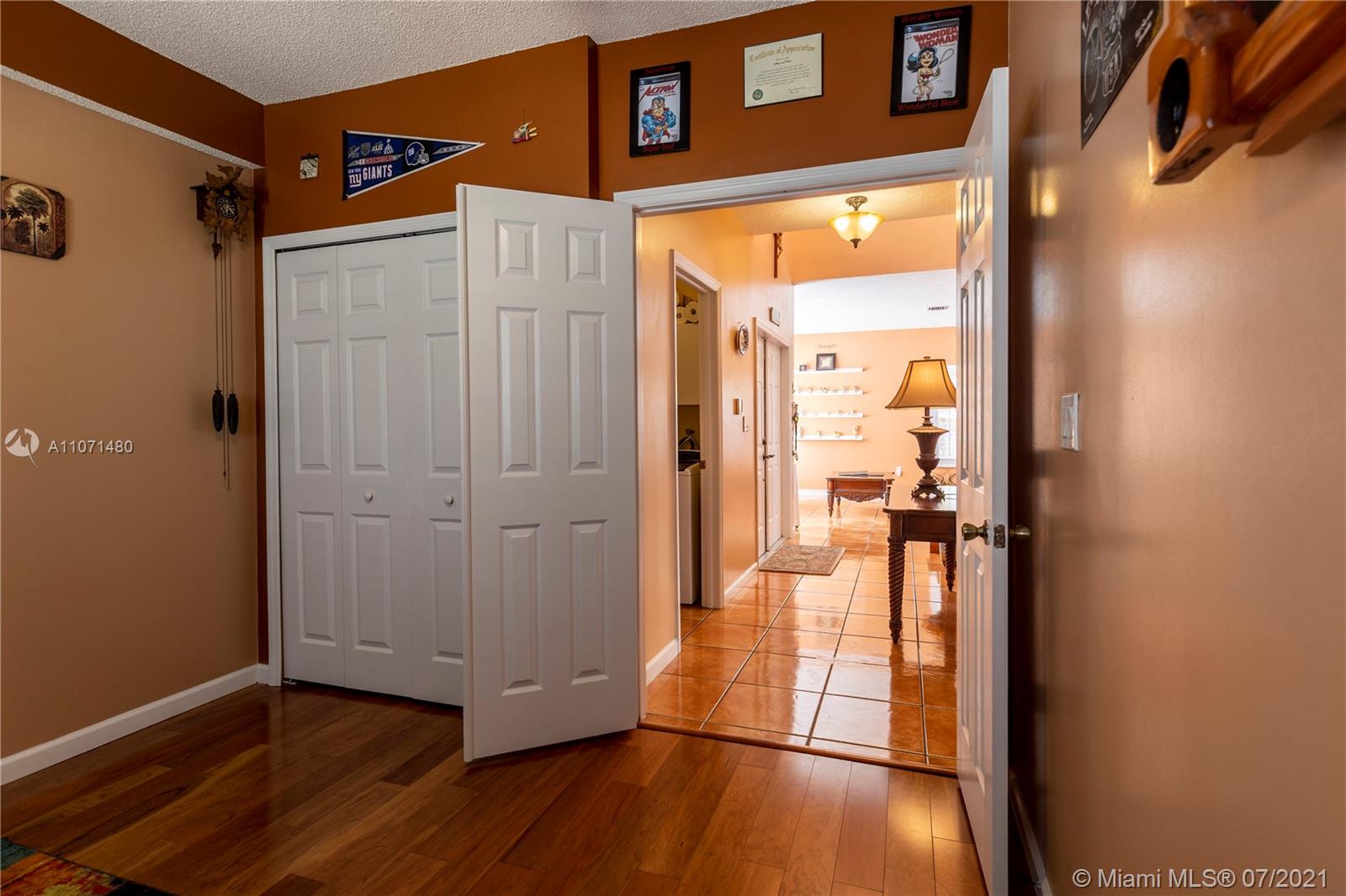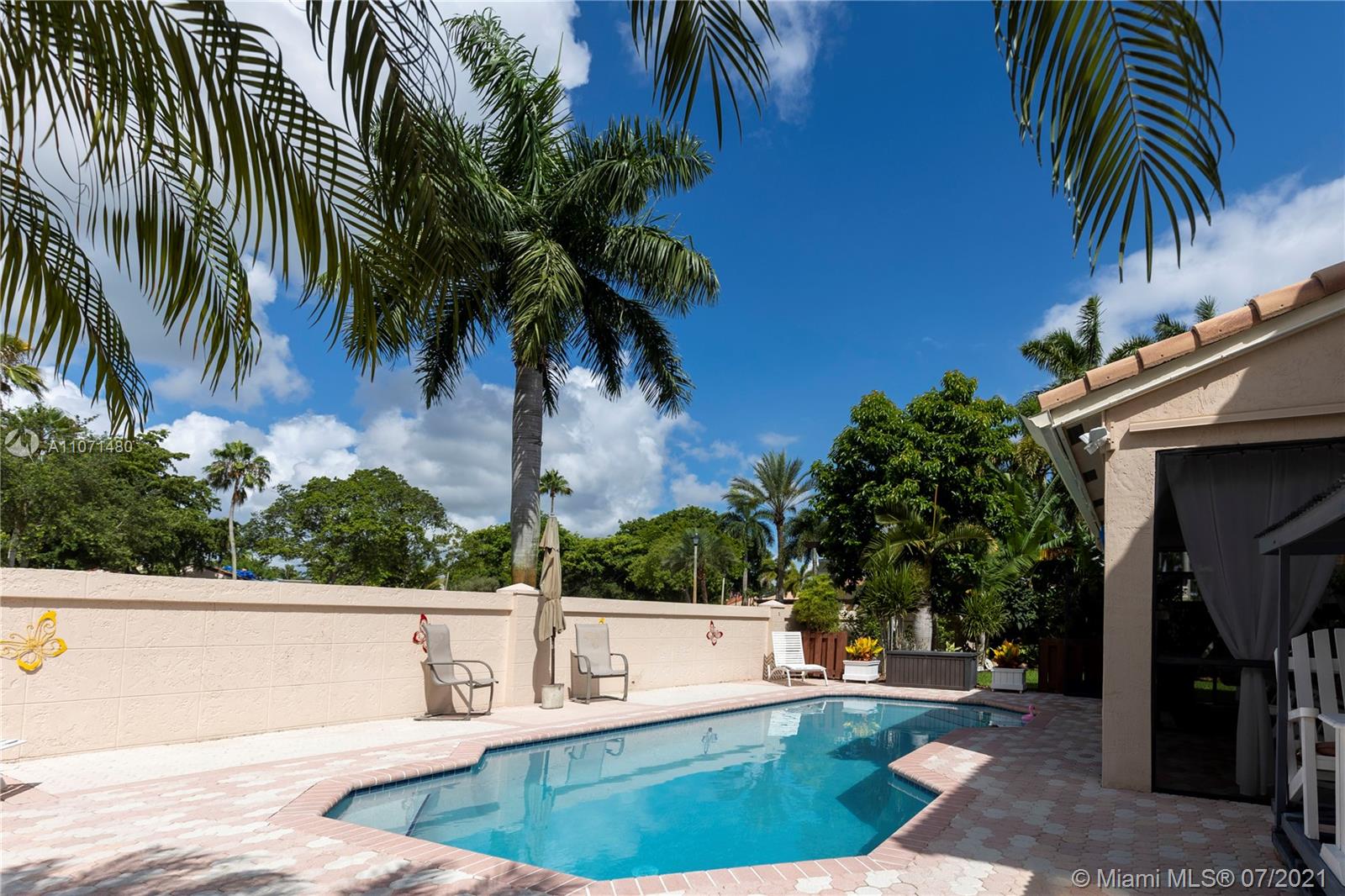 Spacious 5 bedroom, 3 bathroom pool home in Poinciana Parc in Davie. Original owners who have meticulously maintained the home. Our home is the largest model, The Ambassador Model featuring a full bedroom/bathroom downstairs and 4 bedrooms and 2 bathrooms upstairs. Plantation shutters throughout the home, Saltillo floors downstairs and engineered Cherry wood floors upstairs, recently updated master bathroom and ceiling fans in all rooms. Enjoy the oversized backyard with large covered patio, newly resurfaced pool and Banana, Mango and Avocado trees. Association dues include the front lawn and 24 hour security. Hurry!! This beautiful home won’t last.