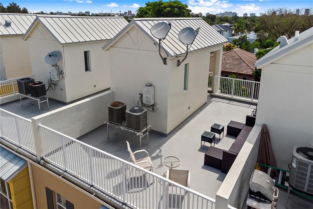 Welcome home to this stunning 2 bedroom 3 bath townhouse ( with den that has a full bath ) in the heart of Victoria Park. You cannot beat this location. Walking distance to restaurants and shops, but nestled on a quiet street to come home and relax after a long day of work. This home features a den on the first level ( with a full bath ), living area on the second level, and master bedroom and guest bed on the third level. Don't forget about your rooftop terrace to enjoy your beautiful views of Fort Lauderdale. Unit has a natural gas stove and two AC units for ultimate efficiency. 2 car garage. Assocation covers roof and exterior.