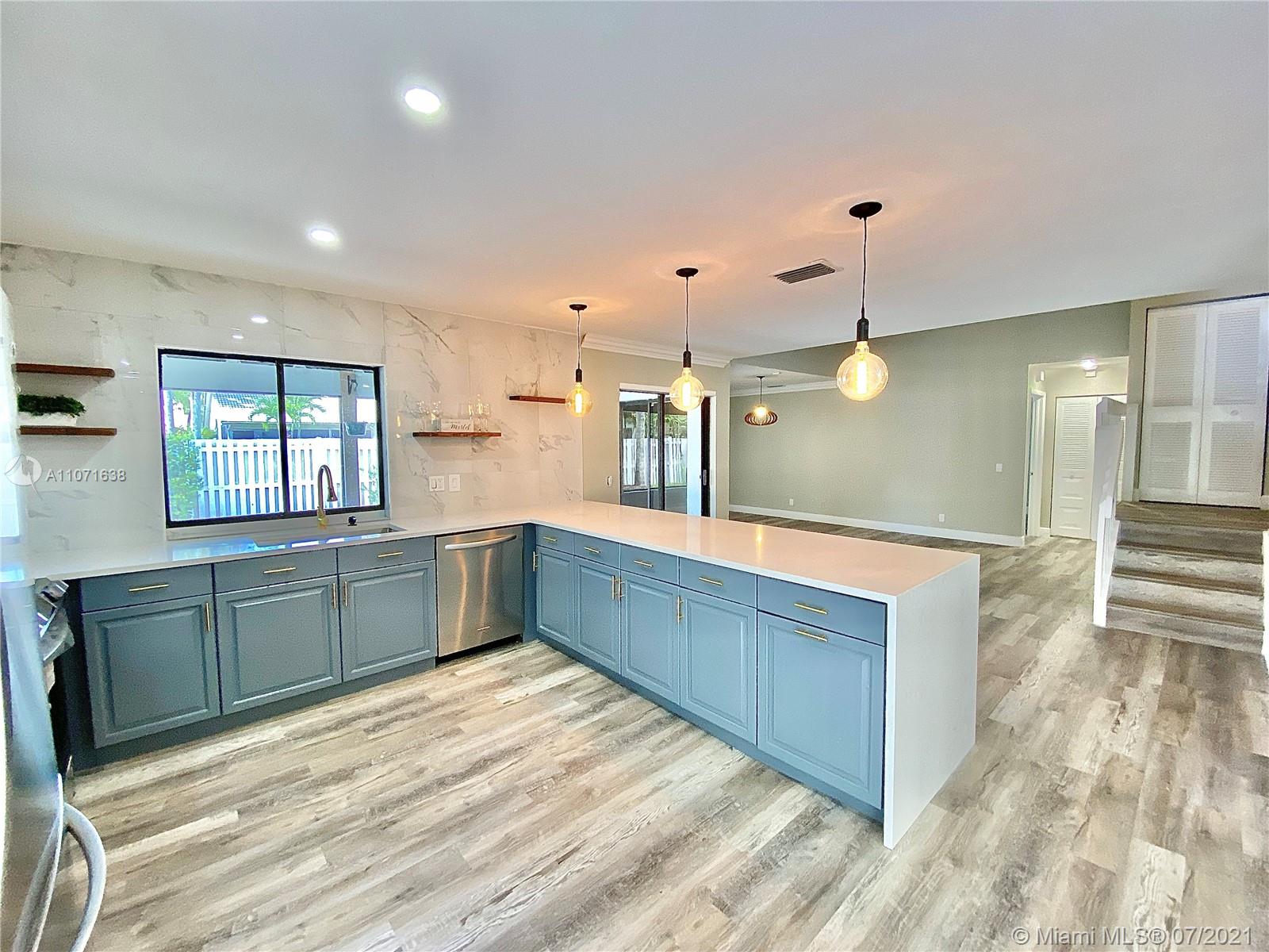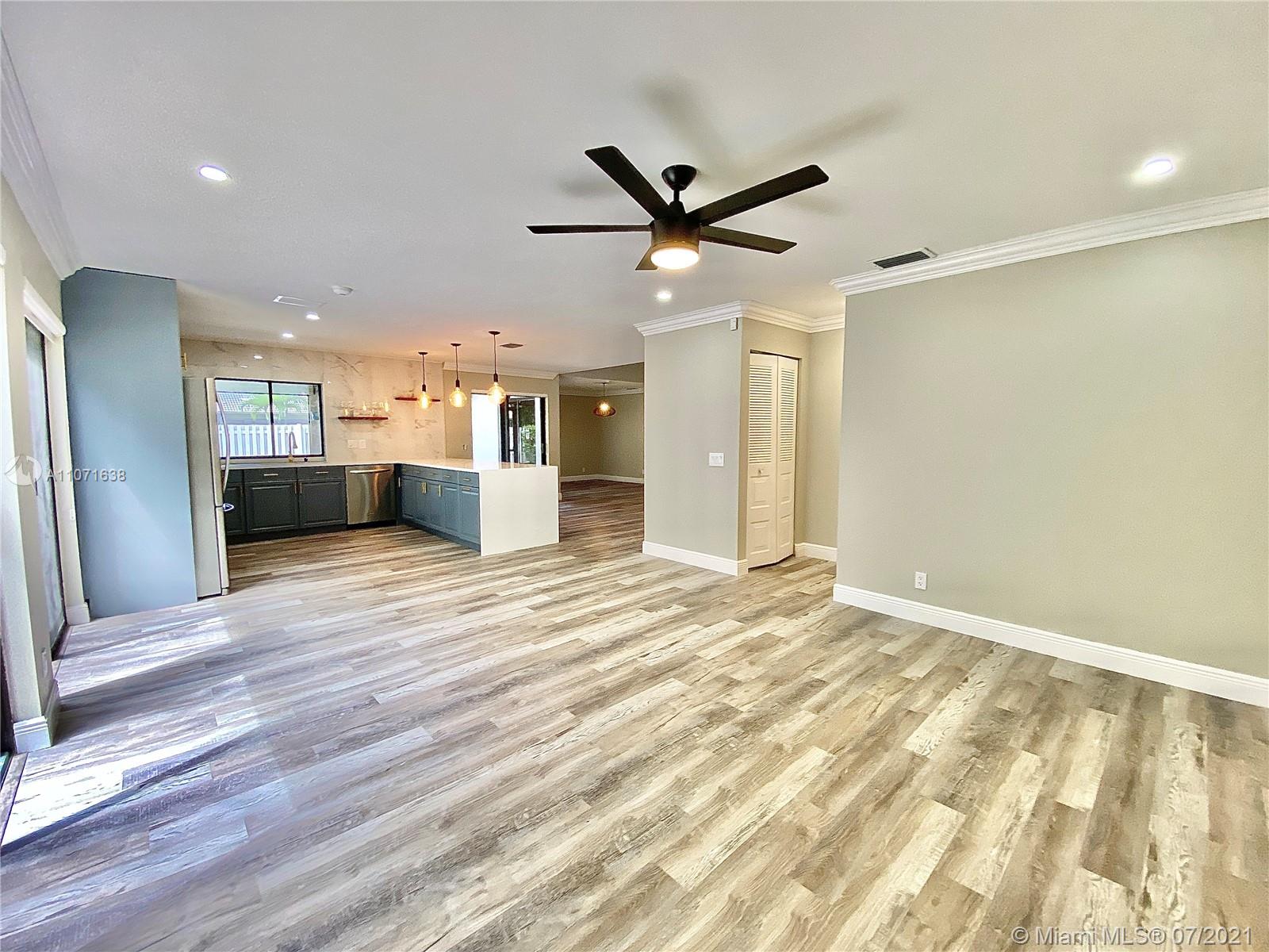 Are you looking for a freshly remodeled home in the heart of Weston? This architecturally distinct property offers a unique floor plan, featuring all new flooring, new interior paint, smooth ceilings, new stylish lighting, a sleek kitchen with quartz counters, plenty of storage & work space, cooking hood vent and all stainless appliances. All bathrooms have been updated with new tile, vanities & mirrors. Stay cool with brand new ceiling fans with lighting in every bedroom & family room, sheer window blinds throughout, Roof 2010. Relax in your covered & screened patio & fully fenced private yard with concrete deck. Centrally located in quiet street, within easy reach to community pool, Country Isles Park, Midtown Athletic Club & I-75. *New Accordion shutters are in the permitting stage*
