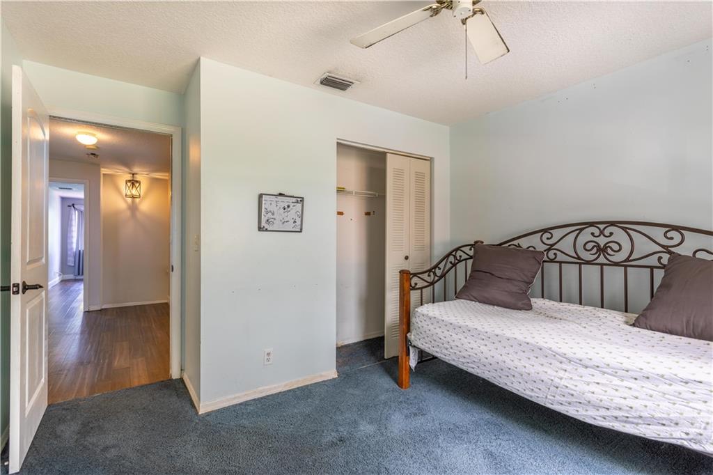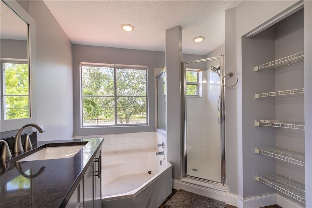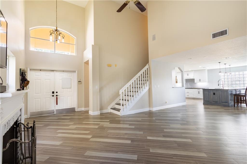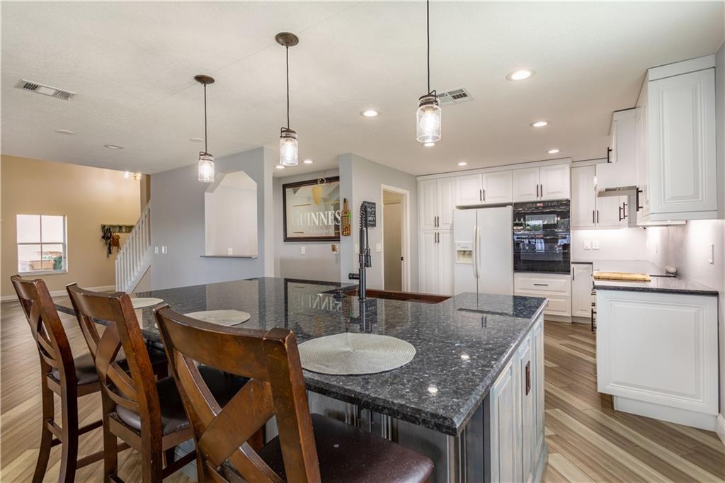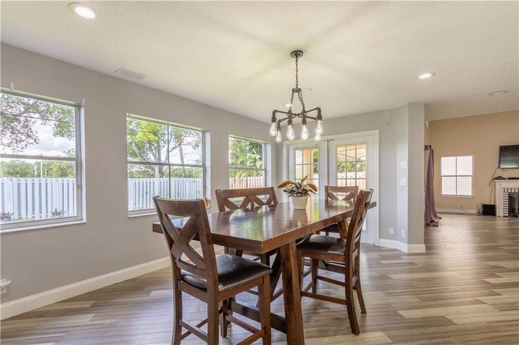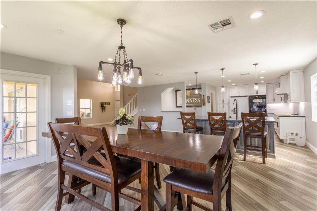 NO SHOWINGS 8/1- 8/7 Come check out this spacious 5 bedrooms 3 full bath home! This home has a completely remodeled kitchen with a hand-stamped copper sink on the island and a built-in bar for extra seating and entertaining. The home boasts 22 feet vaulted ceilings in the front entrance and family room. The Master bathroom has been fully remodeled with new bamboo flooring throughout the Master bedroom. The downstairs flooring is new engineered hardwood. Upstairs guest rooms flooring can be replaced or the seller will give floor credit. The roof is only 3 years old with a very low HOA. Close to shopping, dining, and the turnpike. This home has a newer roof and hurricane shutters and panels.