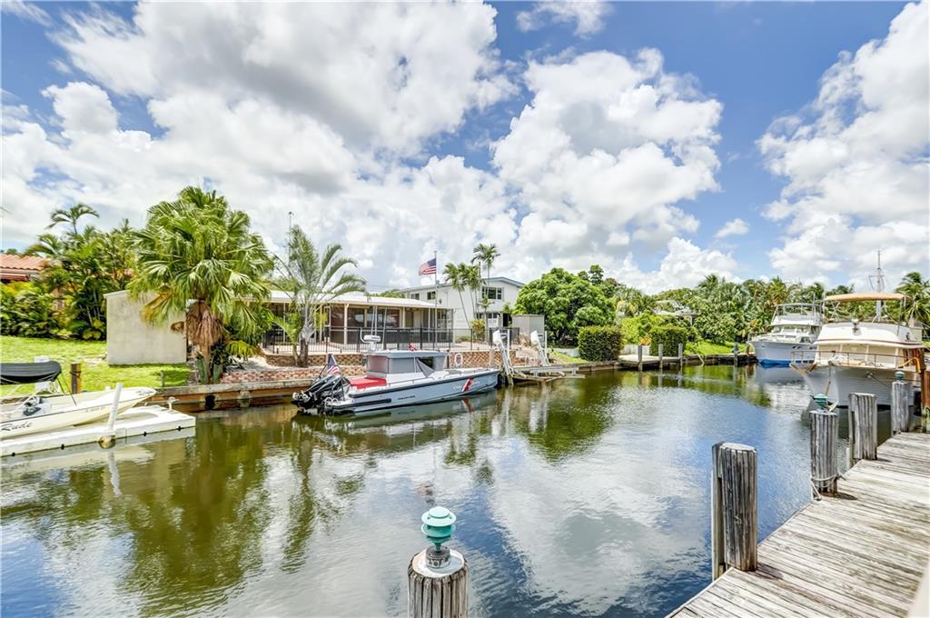 Ocean Access with no fixed bridges. Enjoy Boating and water sports from your own backyard. 65' waterfront pool home in the boating community of Lauderdale Isles. Just minutes away from all major highways, FLL International airport, downtown and the beaches. Direct ocean access by boat via the New River. Community boat ramp just two streets away. Wide open floor plan with vaulted ceilings in the living area. Originally a three bedroom two bath home, one wall was removed to make two master suites. Hurricane shutters, fenced yard with storage shed. The perfect renovation opportunity to create your own tropical paradise to entertain or just relax waterside.