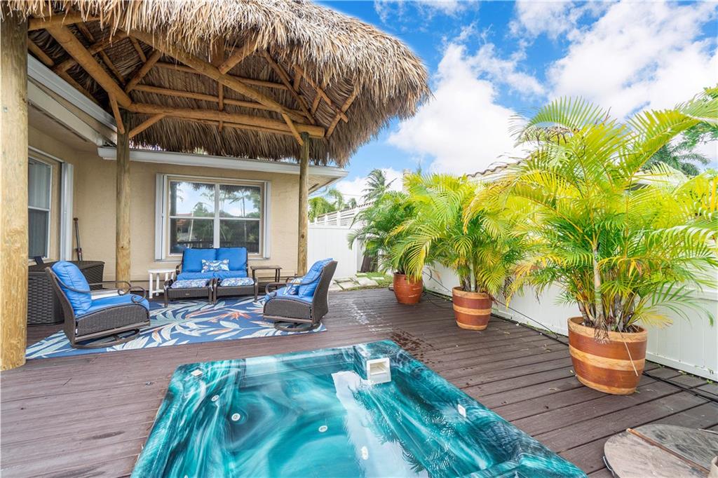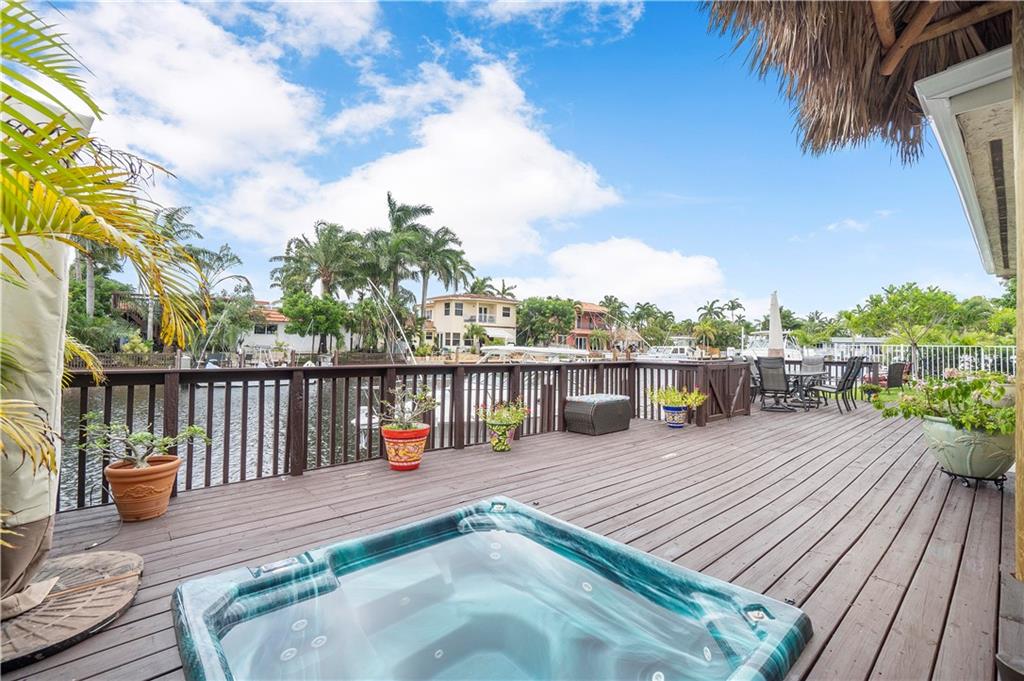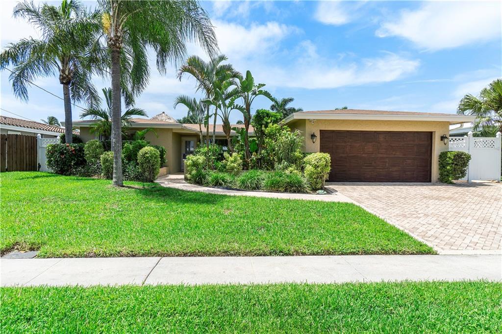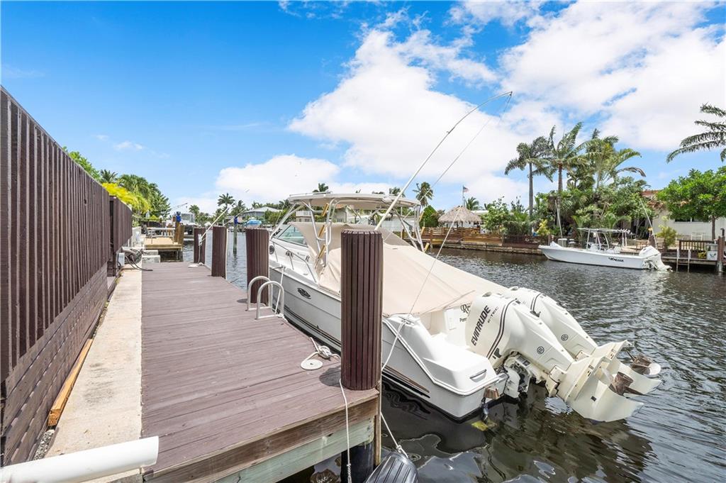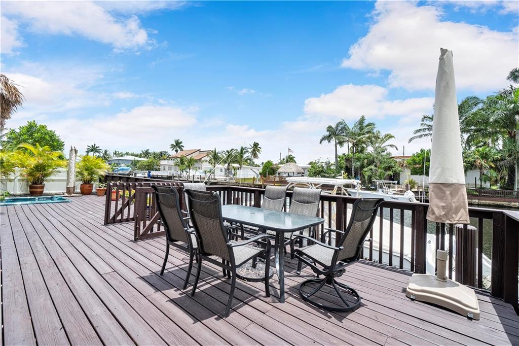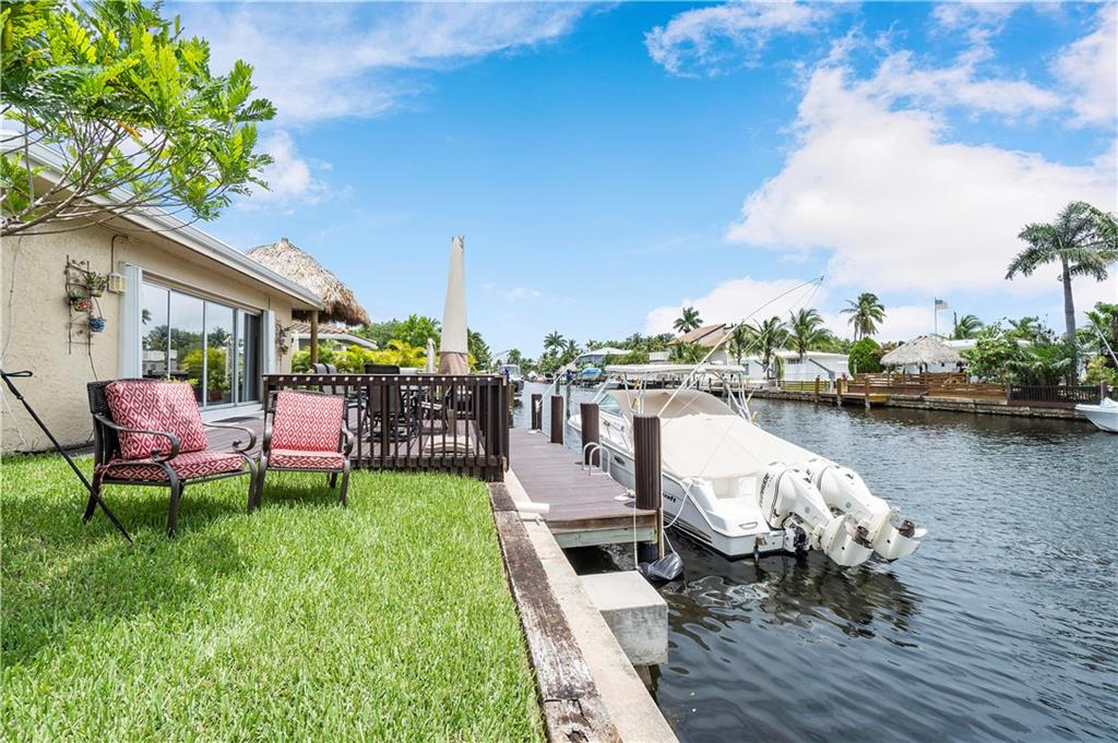 Updated waterfront home with ocean access, a split floor plan, 70 ft. dock, and 2 car garage in a family friendly neighborhood, NO HOA. Wide open floor plan with a breathtaking view of the Barbados Waterway, at 90 feet, one of the widest canals. 2 fixed bridges with 12-foot clearance for larger boats, 15 mins to Intercoastal, 25 minutes to Hillsboro Inlet. Sea wall and dock redone 2017, New roof 2016, New impact glass door and picture window 2020, accordion shutters, New ac 2017, New ductwork 2020, New engineered wood flooring 2020, Electrical panel replaced 2017, wired for a generator 2020, New gutters 2021. Large deck with spa and New Tiki Hut overlooking the canal. Bonus room currently used as office/studio. Great neighborhood close to beach and ocean. See attachment for more info
