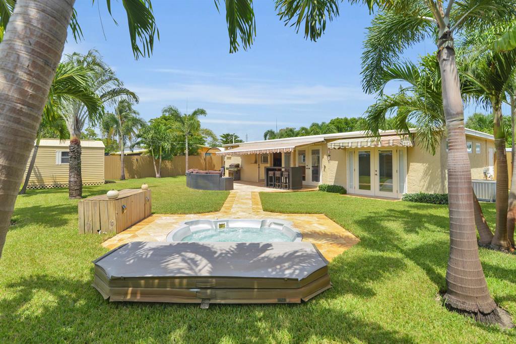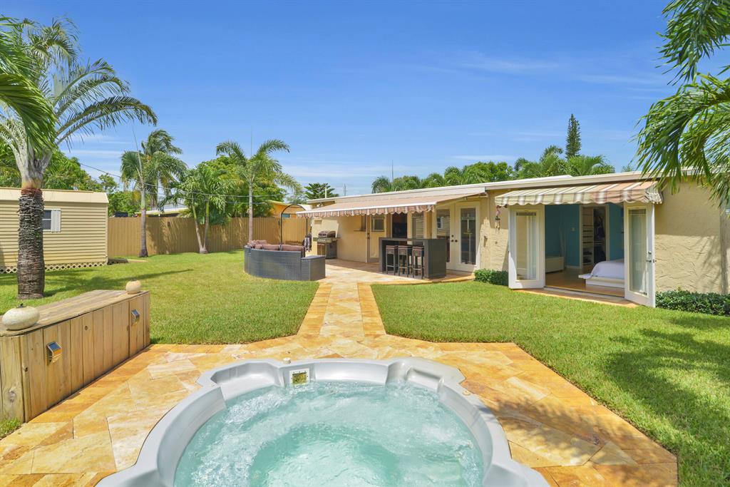 Fabulous rare opportunity to own a Beautiful Upgraded & Extremely well-maintained home sitting on a 7,500 SQF lot. Conveniently located right off US1 Federal Highway, and 10 min from beautiful beaches. This Florida-style home with 2/2 split open floorplan is sunny and bright. Enjoy an expansive backyard with gorgeous landscaping surrounded by a private-fenced yard with garden shed. High-end travertine floor patio, with a big in-ground Jacuzzi with direct access from your master suite. Solid Bamboo flooring throughout, nicely renovated kitchen with granite countertops, 3-yr old GE dishwasher, stainless steel appliances, convention microwave & solid wood cabinets. Partially Impact Windows. New Electrical Panel, A/C & Eco Smart tankless hot water heater, 3-yr old Whirlpool W/D. LED lights...