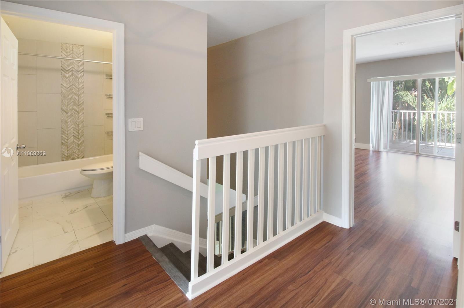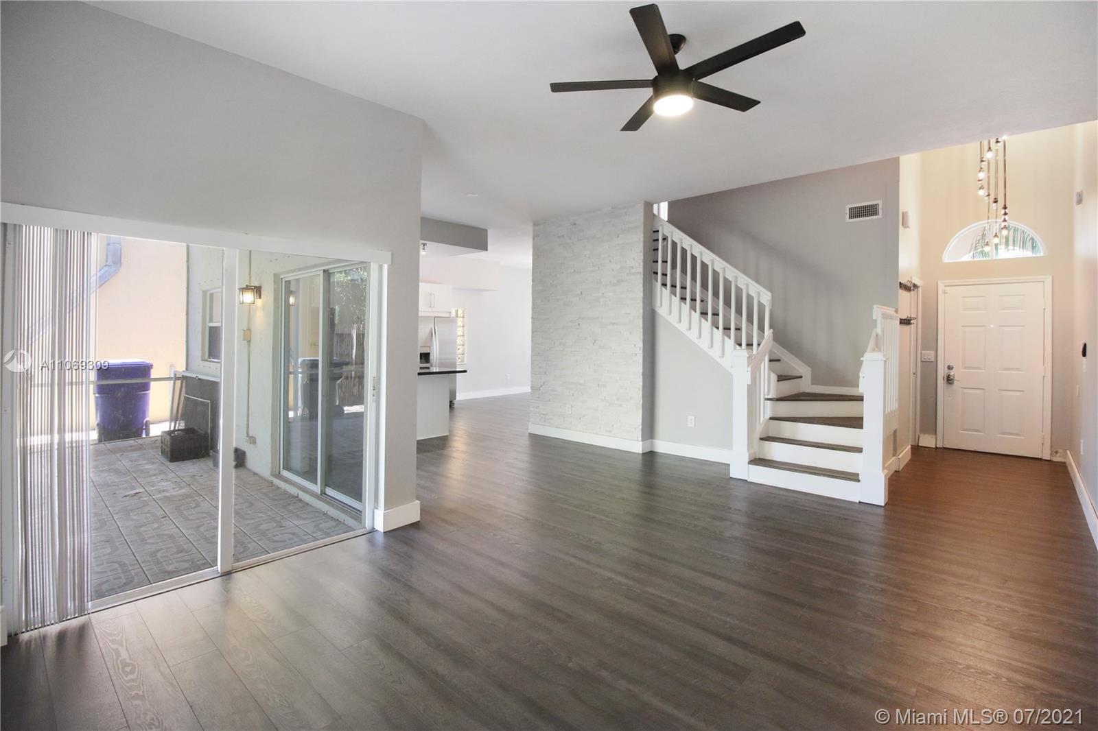 Rarely available two-story single-family home with garage & privately fenced yard. First floor includes custom designed open kitchen, with double dens, and screened-in patio in backyard. Second levels contains two-guest rooms, very spacious master bedroom, master bathroom w/dual sinks and custom designed shower, and large walk-in closet with built-ins. This gated community located east of US1, minutes from beach, is well-maintained and contains a community pool. Home is also located walking distance to West Lake Park, which includes tennis courts, kayaking, boat ramp, basketball, nature trails, and more! Brand new 4.5 tons A/C recently installed. Entire house freshly painted. All new flooring on bottom level.