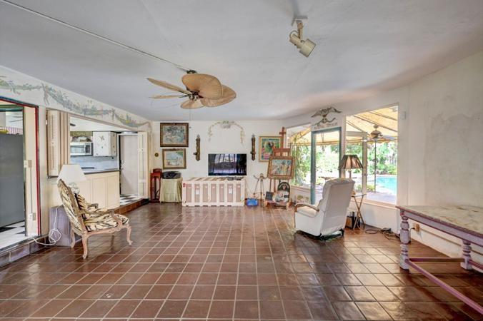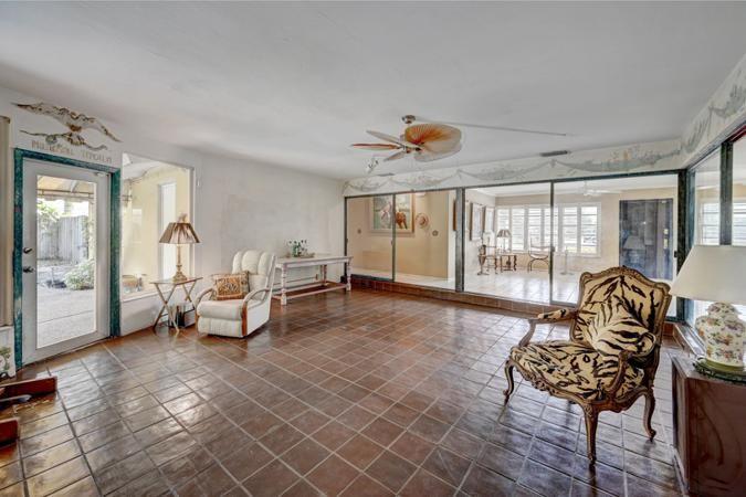 Amazing rare Opportunity to purchase East of Bayview Drive on a Large Corner lot. Mid-Century Modern Flair. Remodel or Knock down. This home is surrounded by Multi-million $$ homes. These lots are rare. You are a hop, skip and a jump to the Ocean. This home features a 2 car garage, Paver circular driveway, Luscious landscaping, Stainless steel appliances, 3 bedrooms, 2 baths, Secluded pool area, Hurricane shutters, Zoned for highly sought after Bayview Elementary. This is a dream location, conveniently located close to everything!!
