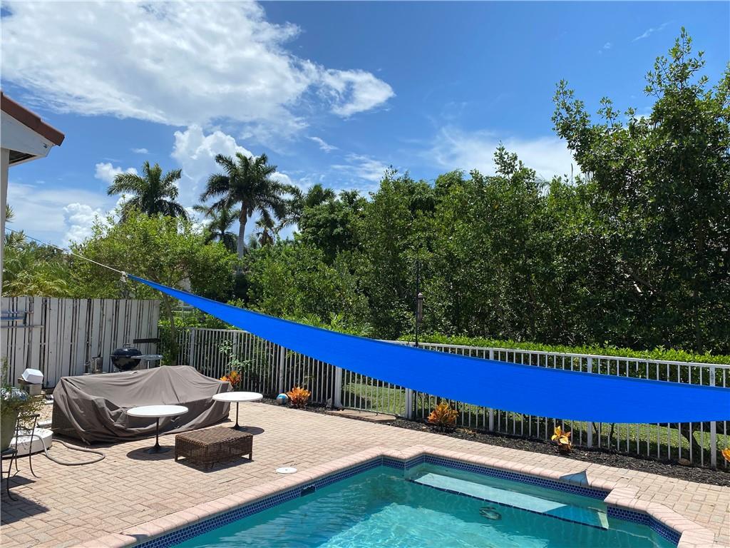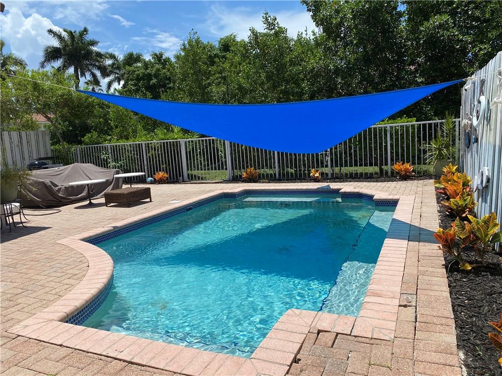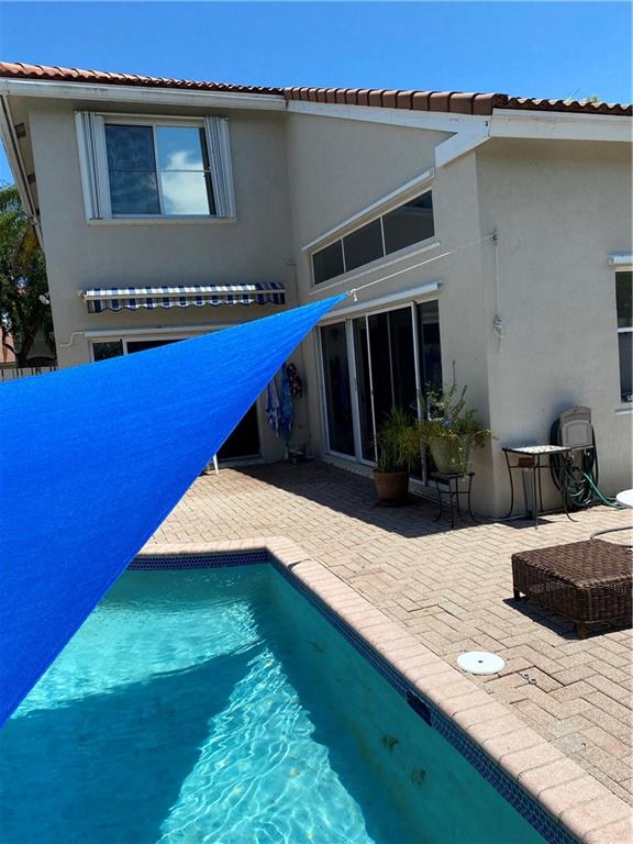 GREAT 3/2.5 WITH PRIVATE POOL AND 2 CAR GARAGE LOCATED ON AN AWESOME UPGRADED LOT WITH NO BACK NEIGHBORS. LARGE KITCHEN THAT OFFERS GRANITE COUNTER TOPS, STAINLESS STEEL APPLIANCES, AND AN OVERSIZED COOKING ISLAND, AND EAT IN BREAKFAST AREA. TONS OF CABINET SPACE. KITCHEN OPENS UP TO A FAMILY ROOM OR CAN BE MADE INTO A DINING ROOM. VAULTED CEILINGS IN THE LIVING ROOM AND DINING AREAS THAT HAVE ACCESS TO THE PRIVATE PATIO WHERE YOU HAVE YOUR OWN PRIVATE SWIMMING POOL, PLENTY OF ENTERTAINMENT AREA, AND GREAT FOR BBQ'S. NO CARPET IN THE HOUSE...TILE FLOORS DOWNSTAIRS, AND LAMINATE WOOD UPSTAIRS. MASTER BEDROOM HAS 2 CLOSETS, SEPARATE TUB AND SHOWER AND HIGH CEILINGS. ACCORDION HURRICANE SHUTTERS UPSTAIRS. A/C 2 YRS OLD. GUARD GATED 24/7 AND JUST 1 MILE FROM THE BEACH. TENNIS,SWIM,GYM