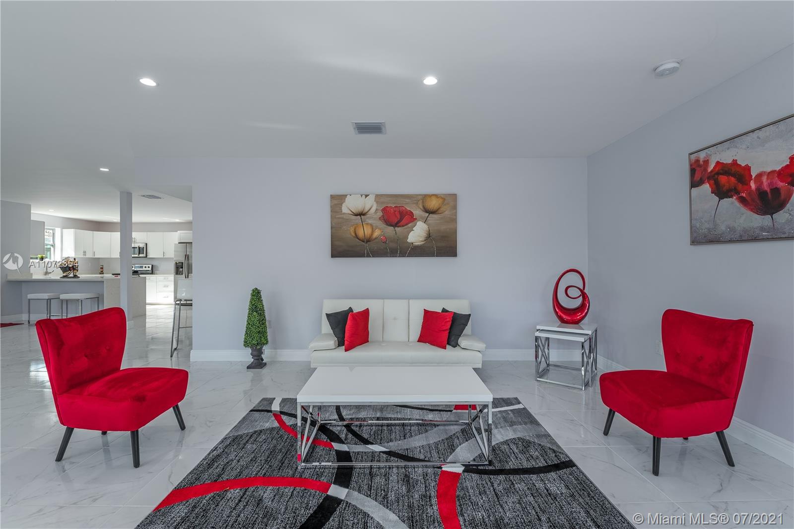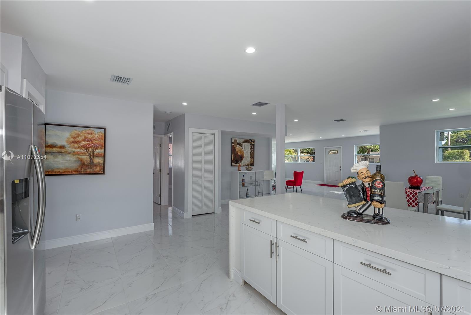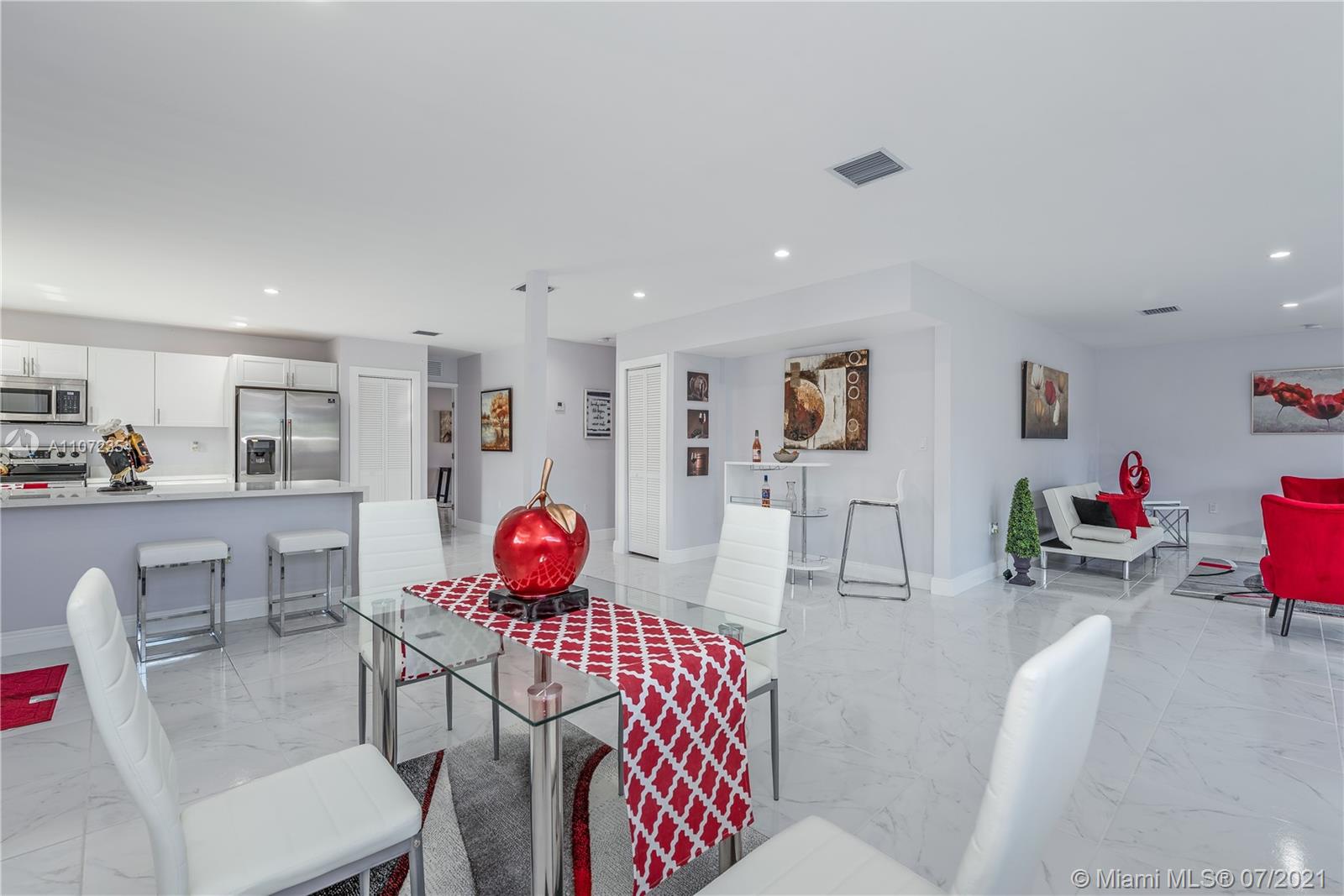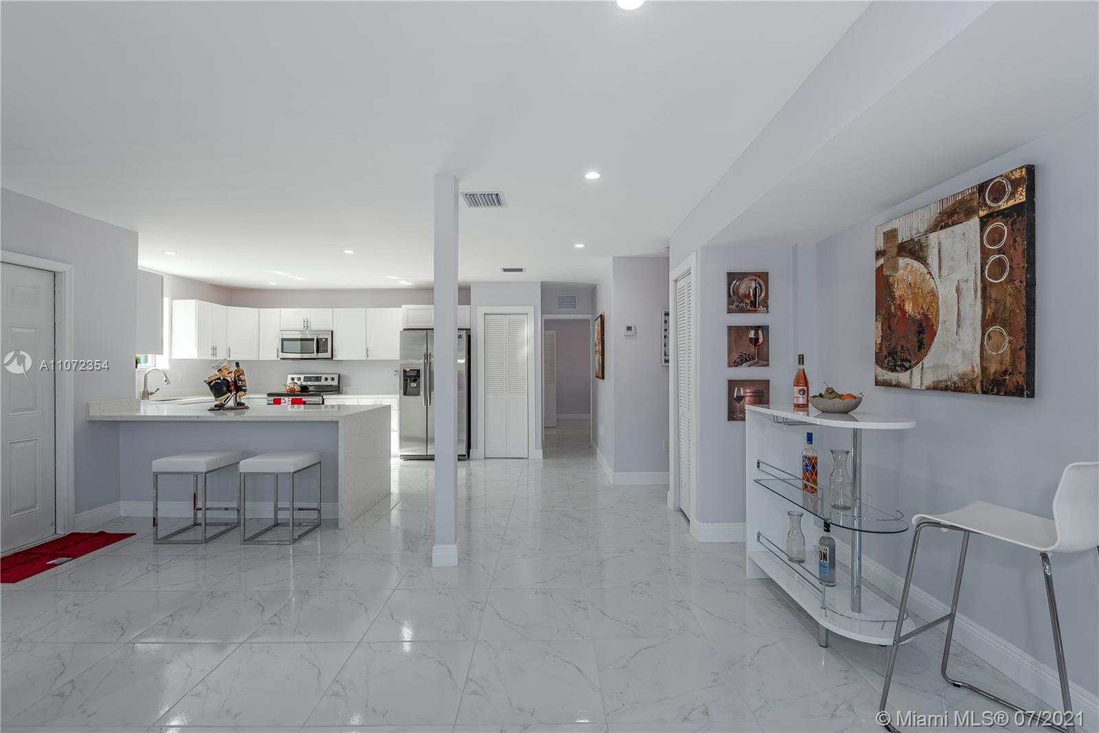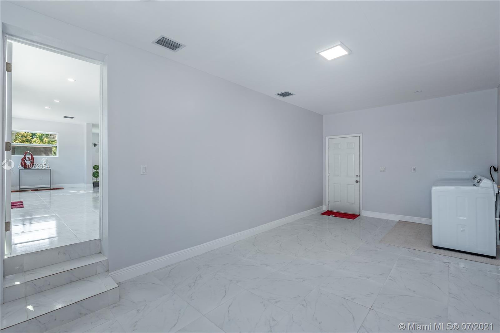 Completely renovated single family home w/ detached Guesthouse. Discover this modern designed home, 3BR/2BA w/ over 2,000+ SF. Illuminated by natural light & recessed lighting w/ impact windows/doors. Open layout w/ gleaming ceramic floors, ample living/dining room & kitchen w/ Quartz waterfall countertops, SS appliances & modern cabinets w/ soft closing. Spacious master BD, WIC & double vanities. This home has a legal 1BR/1BA Guesthouse w/ kitchen & own meter for use as in-laws quarters or rental income. Both homes remodeled w/ permits for new electrical wiring, plumbing pipes, central A/C ducts & units. Immaculately landscaped outdoors w/ patio & space for a pool. This hidden gem has a great curb appeal, located in a quiet & serene enclosed cul-de-sac, near beaches, shops & restaurants.
