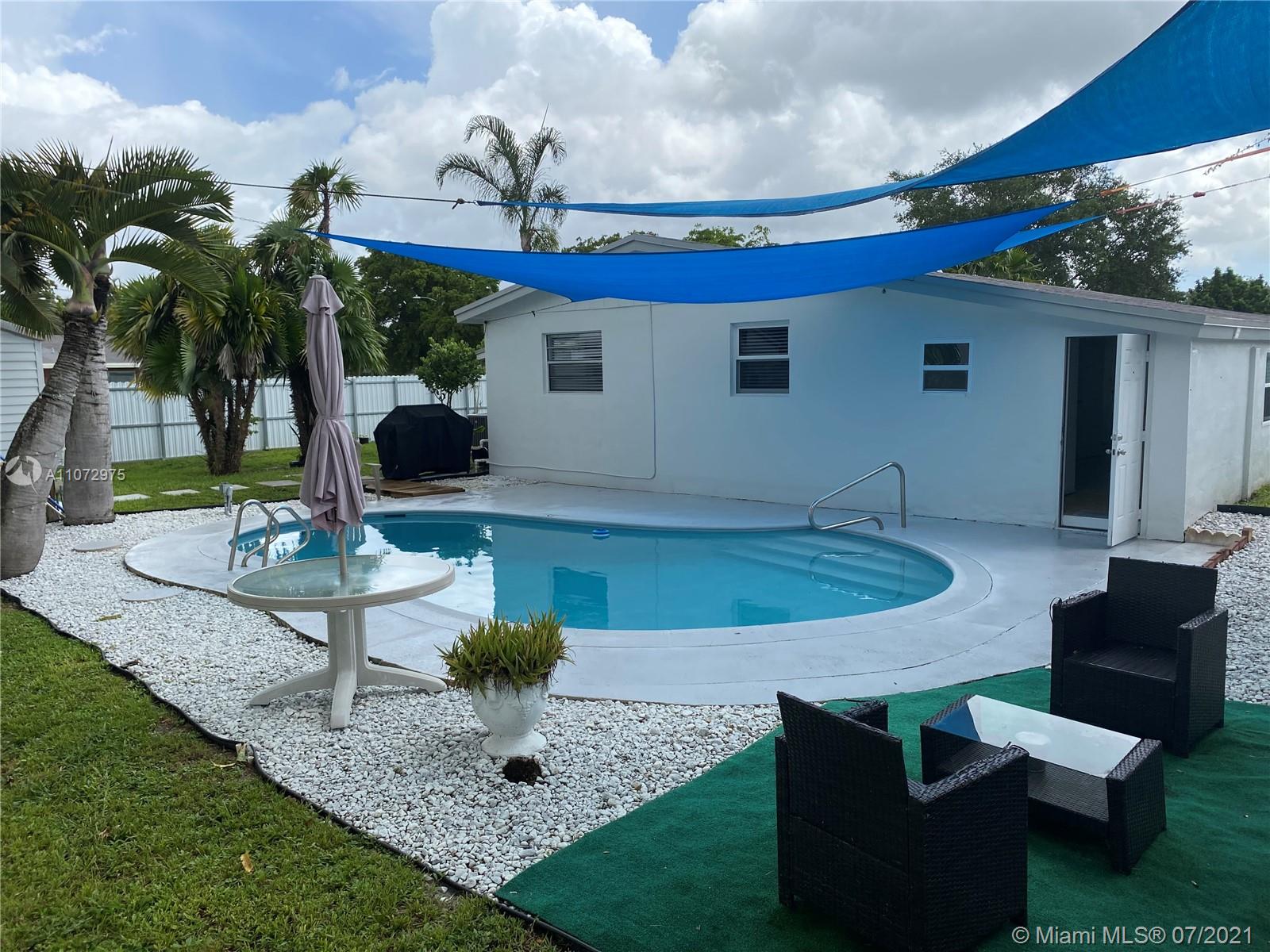 Large one story 3 bedrooms 2 bathrooms pool home sitting on a 7000+ sq ft lot. Great location close to major highways, schools, shopping centers and more. Property features bright living areas with ceramic floors through-out the house. New stainless steal appliances, new AC (1 yr), roof is 4 years old and impact windows have been installed (missing 3 windows) . Lots of storage including a permitted 12 ft shed.