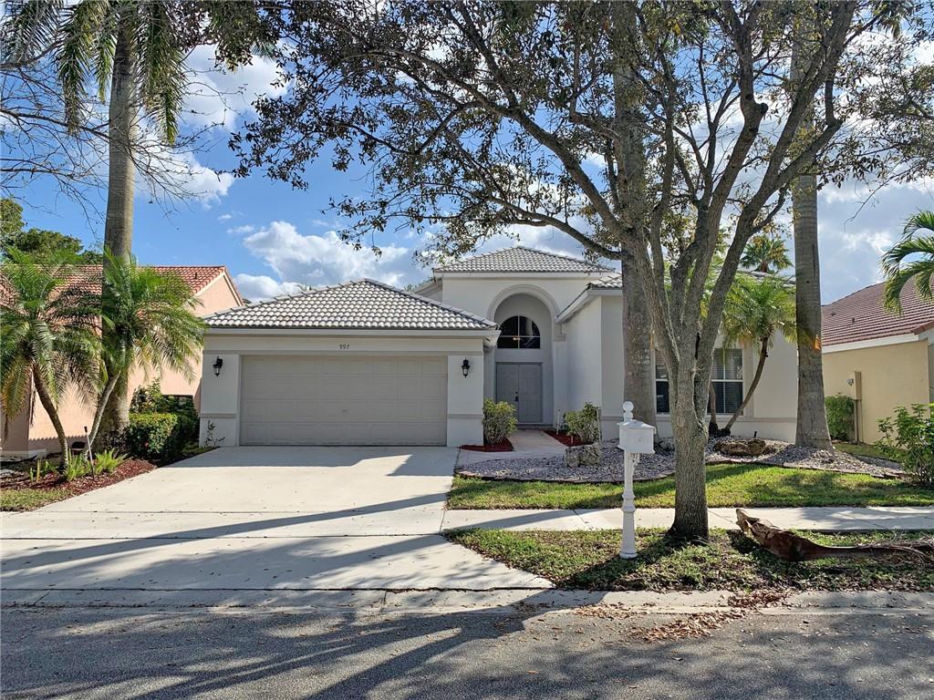 Not to be missed! This home features updated kitchen with wood cabinets & granite countertops, all bathrooms have been updated with new cabinets, marble & granite. Master Bathroom features large jetted soaking tub, large frameless shower & dual sinks. New waterproof laminate flooring in the bedrooms and 18" diagonal tile in living areas. There is a living room, formal dining room, family room, split floor plan with four good size bedrooms, fully fenced private backyard with room for a pool, huge screed patio, Hunter Douglas Blinds & California Closets. The Falls community has low HOA dues with 24/7 guard at the gate, kids play area, large community pool, basketball court and volleyball court.