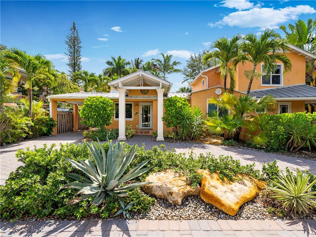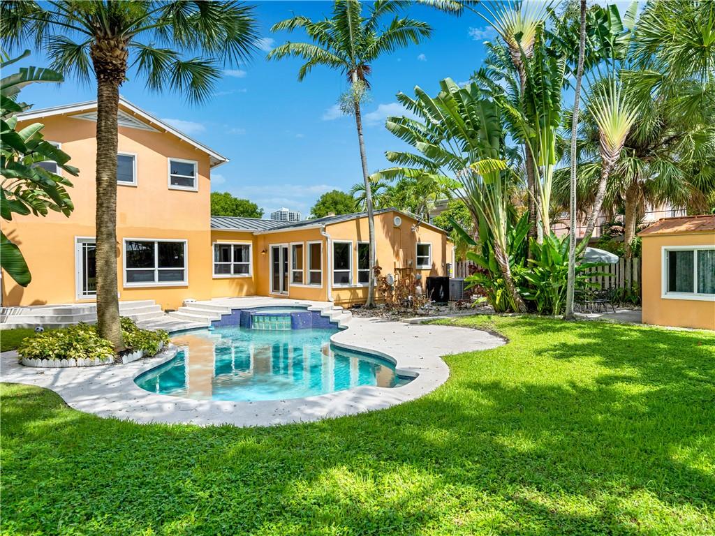 Perfectly located just steps from Las Olas in the tropically shaded Beverly Heights neighborhood alongside the Himarshee Waterway. Rebuilt in 1999 this one and a half story home features high ceilings, large sunny rooms, impact windows and doors, a fabulous kitchen starring a professional six burner natural gas range, a breakfast island with prep sink, adjacent large dining area opens to the large yard and pool. The master suite on the second floor has surrounding windows and views of the downtown skyline. Owner has updated kitchen and baths. Property includes a detached efficiency guest house. [Information is from 3rd party sources including BCPA and is believed accurate but not warranted].