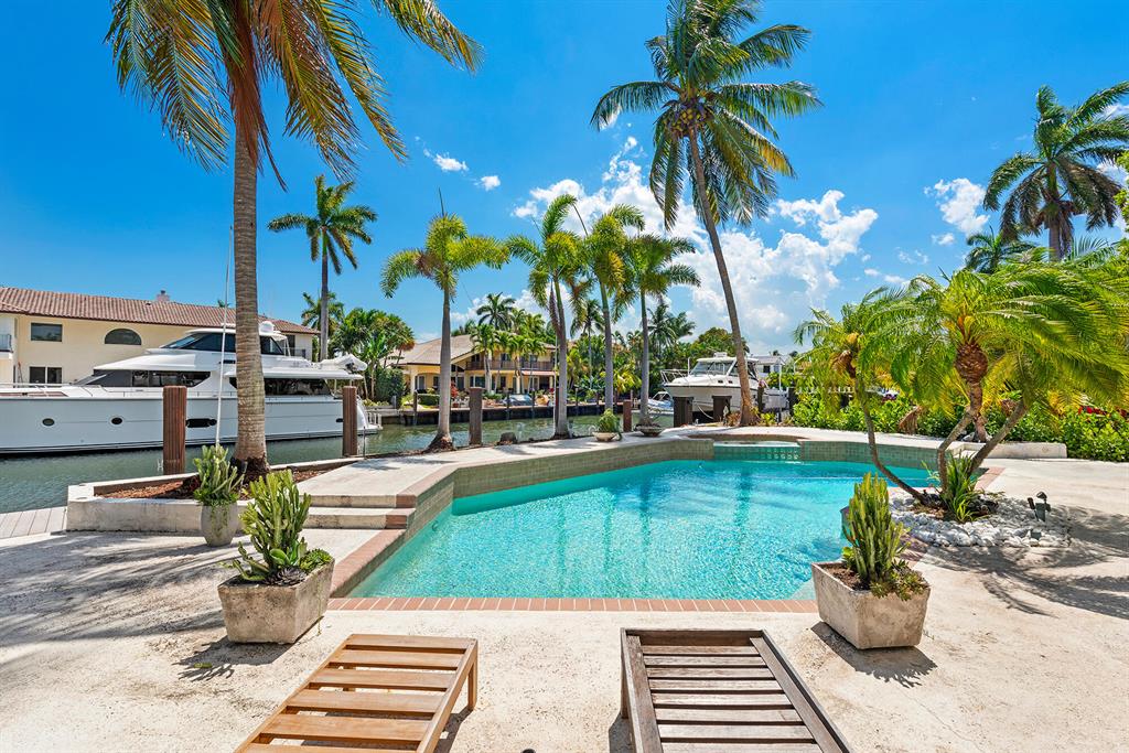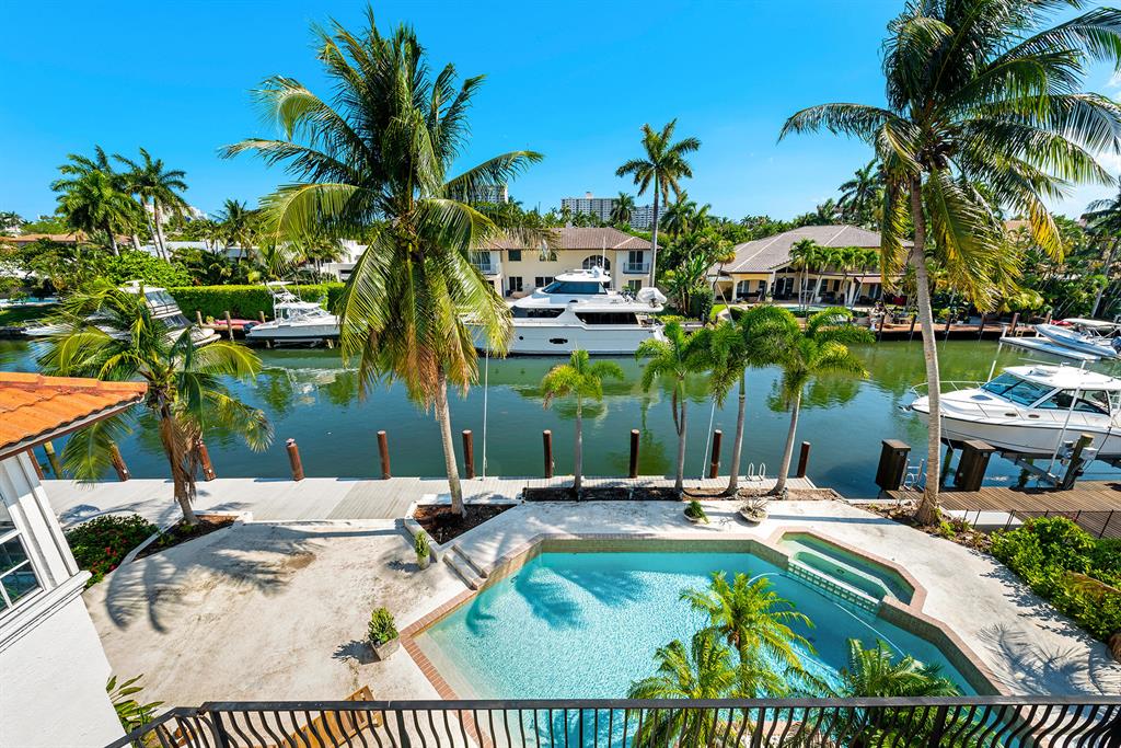 LOCATION! Incredible 2-Story Estate in Exclusive Las Olas, Seven Isles. 154' of Water Frontage, Deepwater Ocean Access for Mega Yachts! No Fixed Bridges! Grand Gated Entrance, Paver Driveway! Oversized Tropical Lush Double Lot! Massive Rooftop Terrace with Water & City Views. New Seawall & Composite Dock with 180-amp Service, 16,000 lb Boat Lift. Paradise awaits with Custom Pool, Spa & Covered Patio. Dramatic Vaulted Ceilings, Bright Open Windows & Floor Plan. Huge Chef's Kitchen, Quartz Counters, Tray Ceilings, Recessed Lighting, Snack Bar & Breakfast Area. Formal Dinning Room, Custom Library & Fireplace. Entertainment Room with Full Bar. Master Bedroom ,Private Balcony, Office Nook, Exercise Room, & Sitting Area with Stunning Fireplace. Minutes the beach, Fine Dining & Shopping!