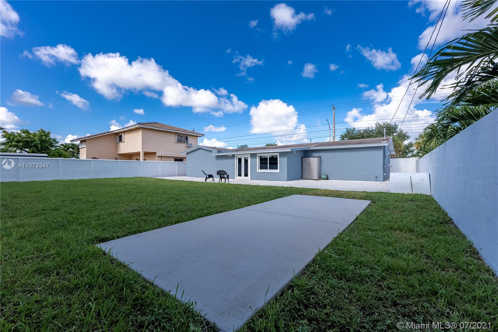 No expense was spared on this spacious 4 bedroom 2 bathroom home in the wonderful neighborhood of Palm Springs Estates. The owners were thoughtful and precise in choosing every feature in this home. From the beautiful impact windows and doors, large circular driveway, large tile floors throughout, recessed lighting, a modern style kitchen with high gloss cabinetry and stainless steel appliances, beautifully designed bathrooms with granite vanity tops, an office space with a backyard view, and a big backyard with an open patio great for entertaining. Garage was converted into a laundry room and another space for a gym or an extra office space. A 5-ton A/C unit inside and outside were upgraded in 2018, Roof was done 7 yrs ago. Close to schools, shopping, restaurants, and major highways.