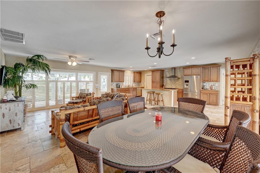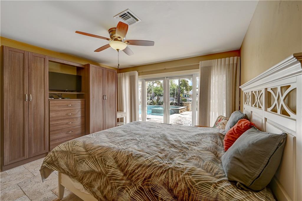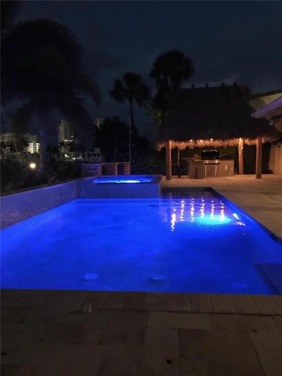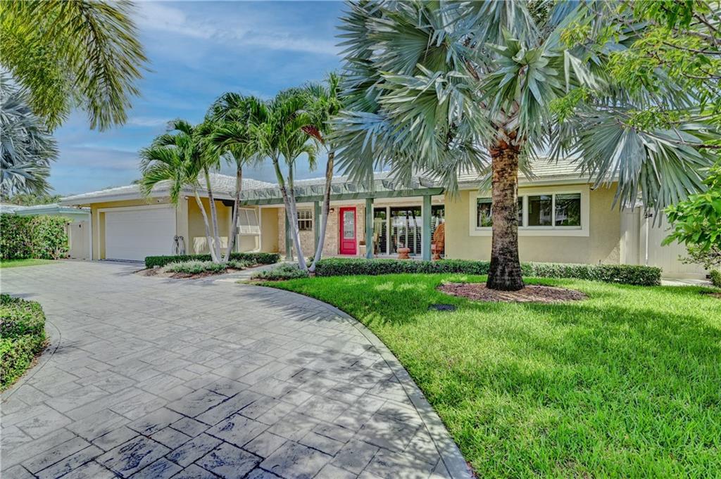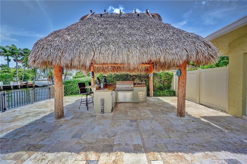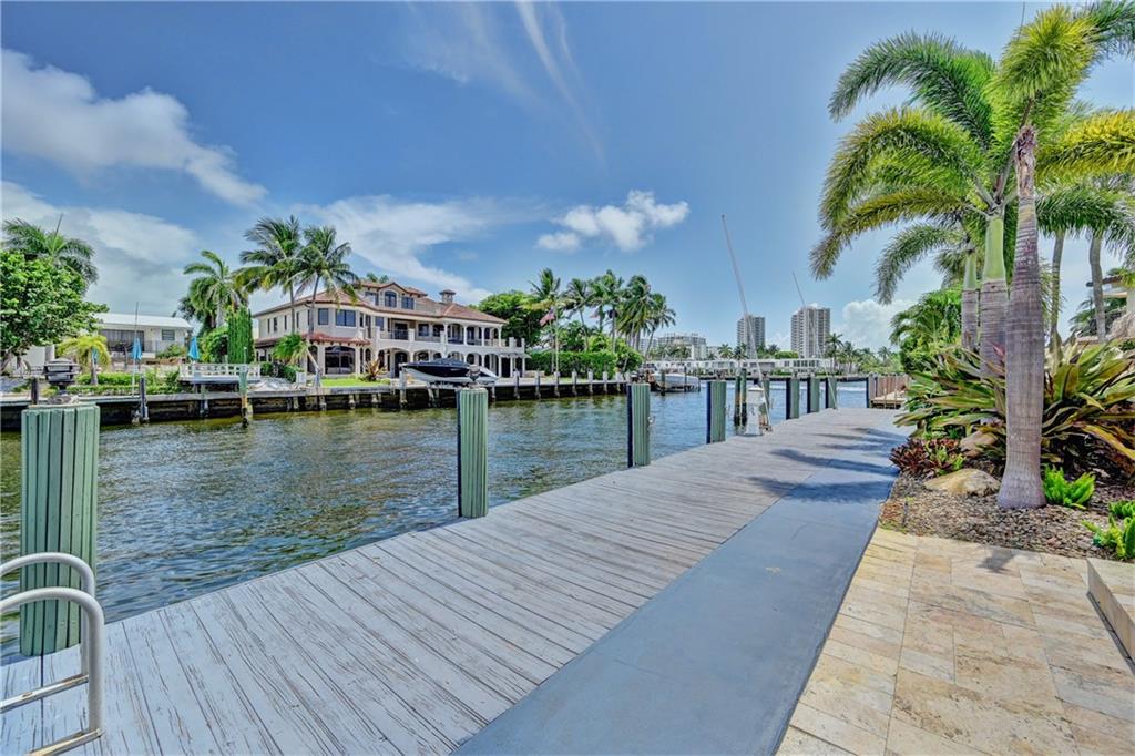 Coral Ridge one story beauty on oversized lot just one off the Intracoastal point. Perfect for those who love to boat and/or entertain. Large covered patio overlooks heated pool with waterfall/spa, outdoor kitchen with built in gas grill/gas burners, fridge, ice maker. Deep water ocean access with no bridges perfect for boaters with 100 foot seawall and 80 foot dock. Open floor plan has kitchen open to living room/dining room, all renovated with travertine tile throughout. Split floor plan. Master and guest bedroom overlook pool and water. Impact windows & doors, 2 car garage, built in cabinets for storage. Large circular gated driveway that gives added privacy/security. Bayview Elementary school district &close to private schools. Minutes to the mall, Las Olas, the beach, and more.