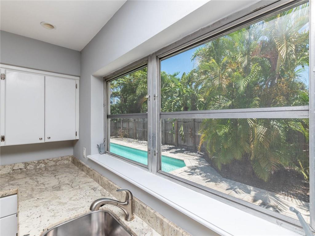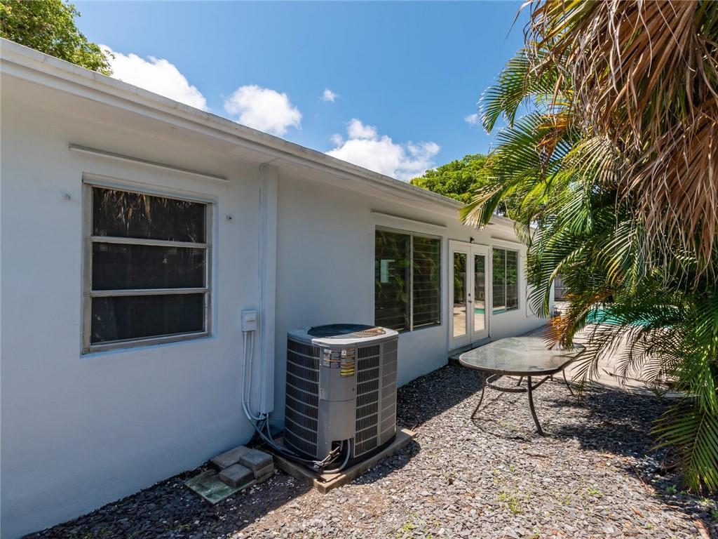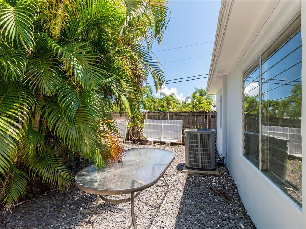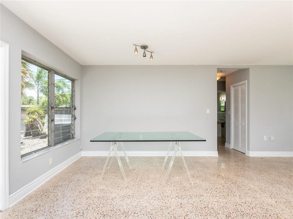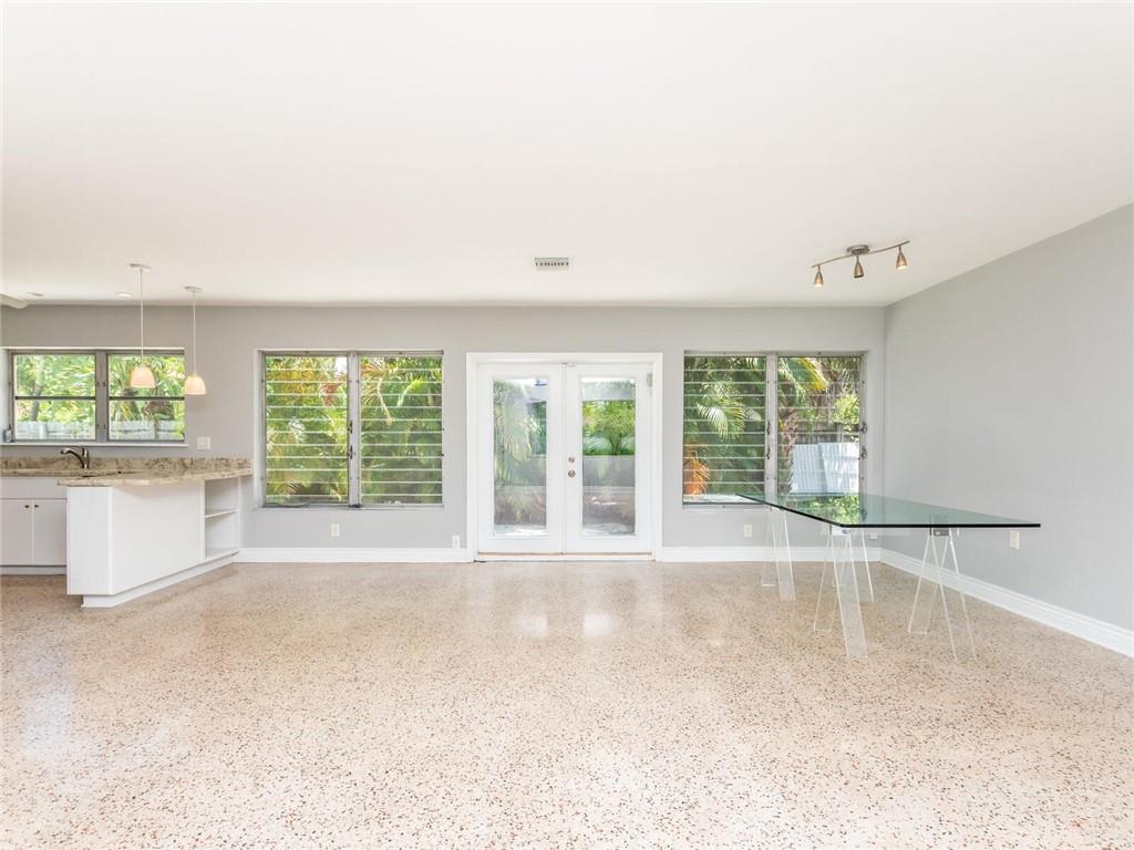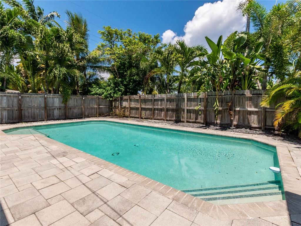 Corner lot. Well maintained Mid-Century home close to shopping/dining/beach. 3/3. Two nice sized bedrooms. Huge Primary suite with large walk-in closet and extra bonus room. Office/den/games/sitting room.... Fenced back patio with heated below ground pool. Lots of out door space to enjoy the South Florida weather. Excellent condition original Terrazzo flooring in Large living/dining area and two of the three bedrooms. Freshly painted inside and out. Stainless steel appliances in open plan kitchen. Central A/C. This home is just west of US-1 in Poinsettia Heights neighborhood.