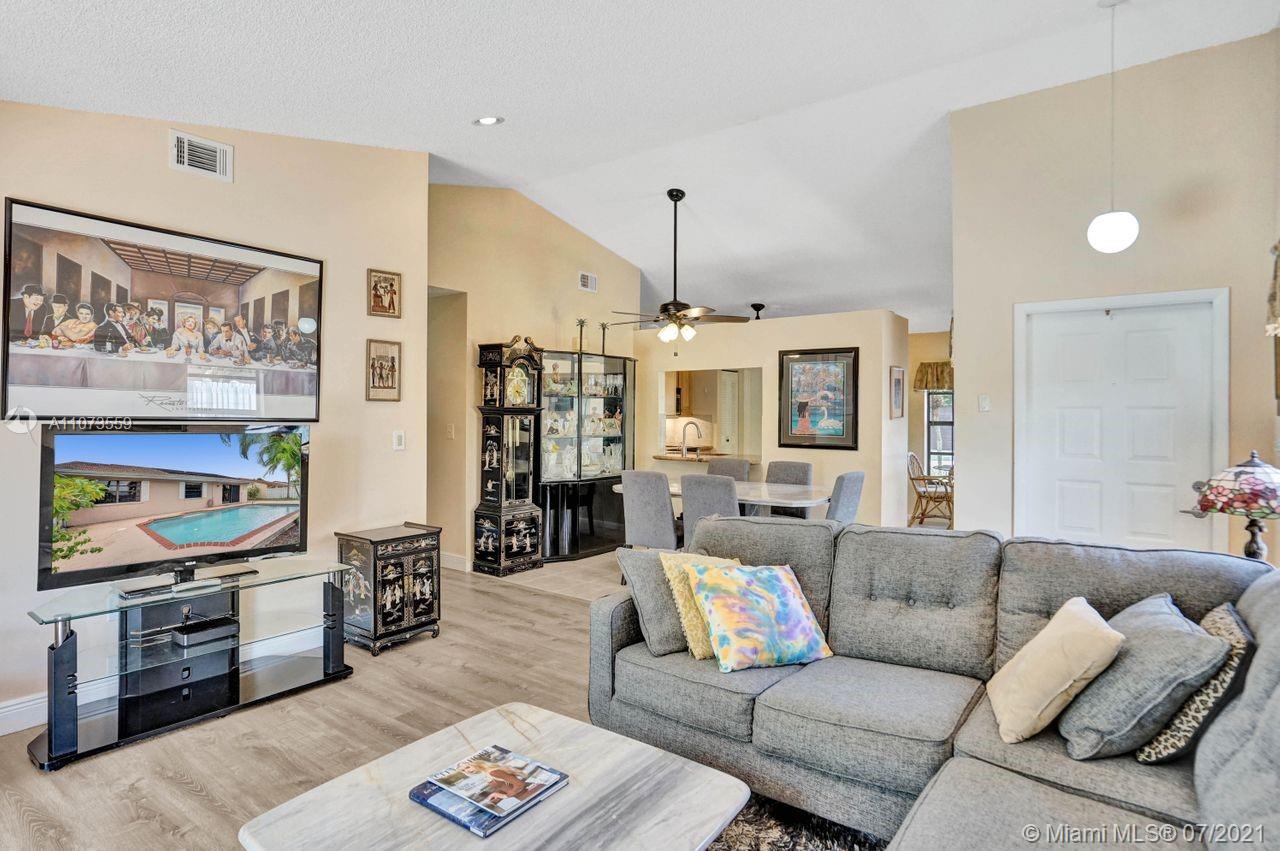 Come and see Shenandoah's latest neighborhood gem! Boasting a beautiful sparkling pool overlooking a pristine lake filled with wildlife. The kitchen, updated with beautiful cabinetry, granite countertops, and SS appliances. Updates to this gorgeous 3-bed 2-baths home include wood laminate flooring in the living room, master bedroom, and hallway, a recently updated hallway bathroom, and a permitted 150-amp electrical panel added in 2020. Outdoors, enjoy South FL living year-round. The large primary bedroom offers an ensuite bath w/walk-in closet & views of the sun-kissed lake from the window. Ample driveway parking, 1-car garage, & hurricane shutters add more value. Enjoy tree-lined streets, community park, & amenities. Close to businesses, A+ schools, shopping, dining, & highways.