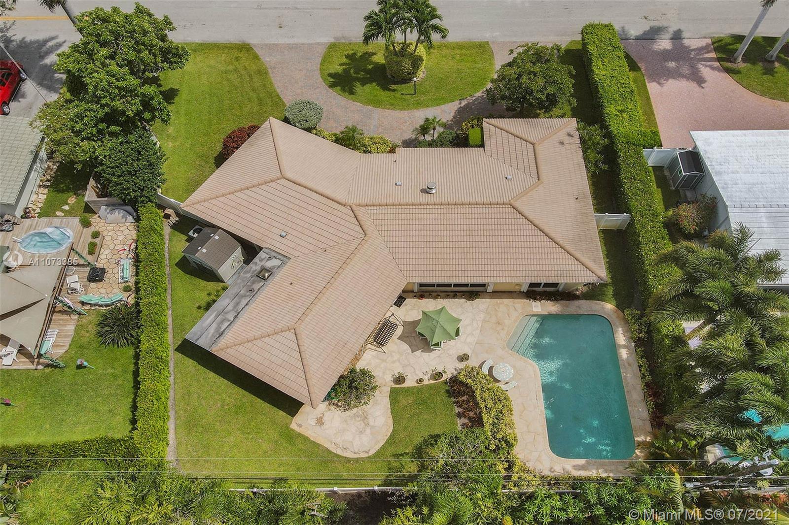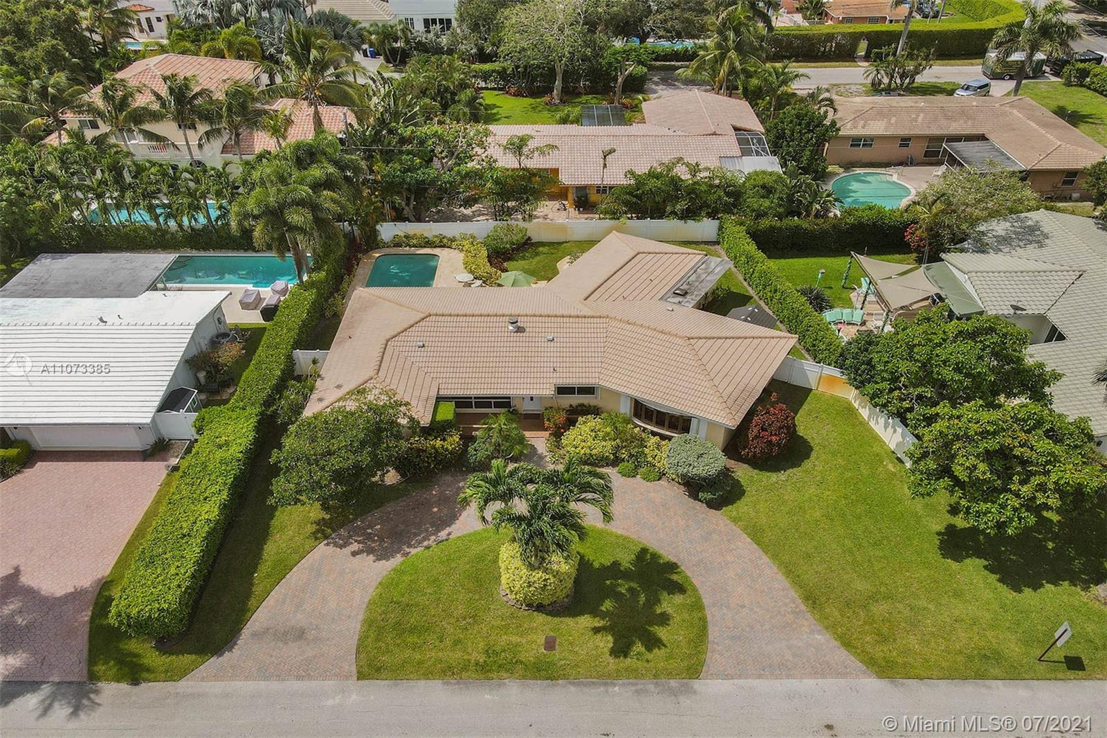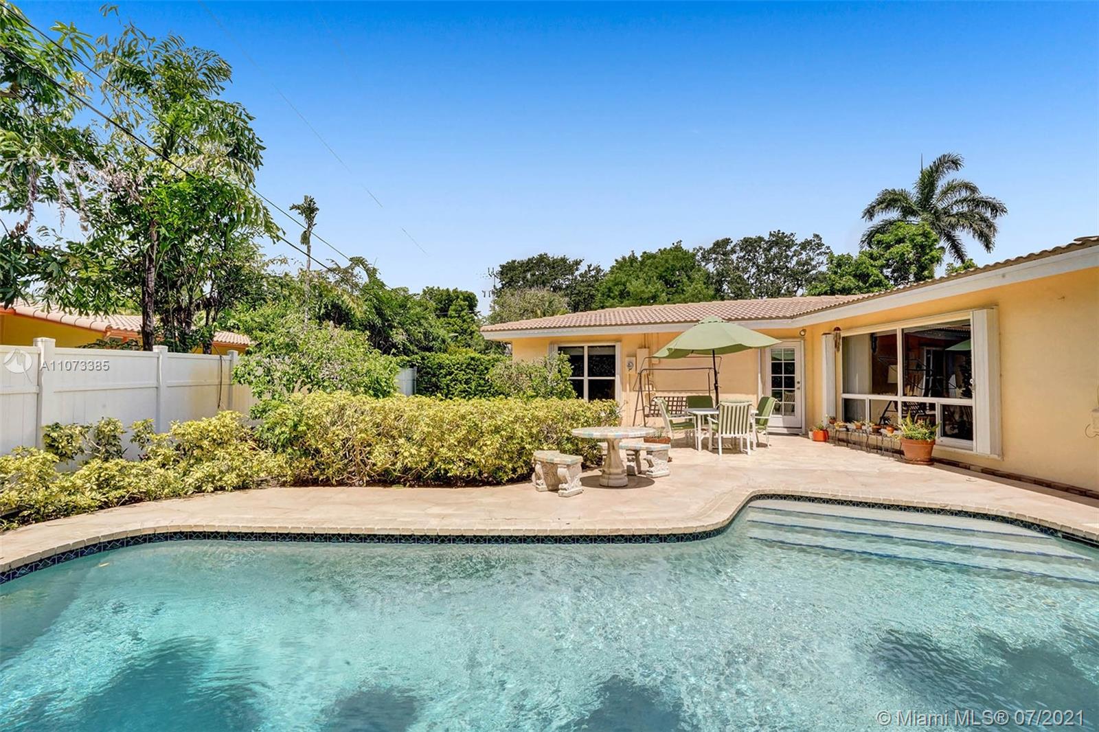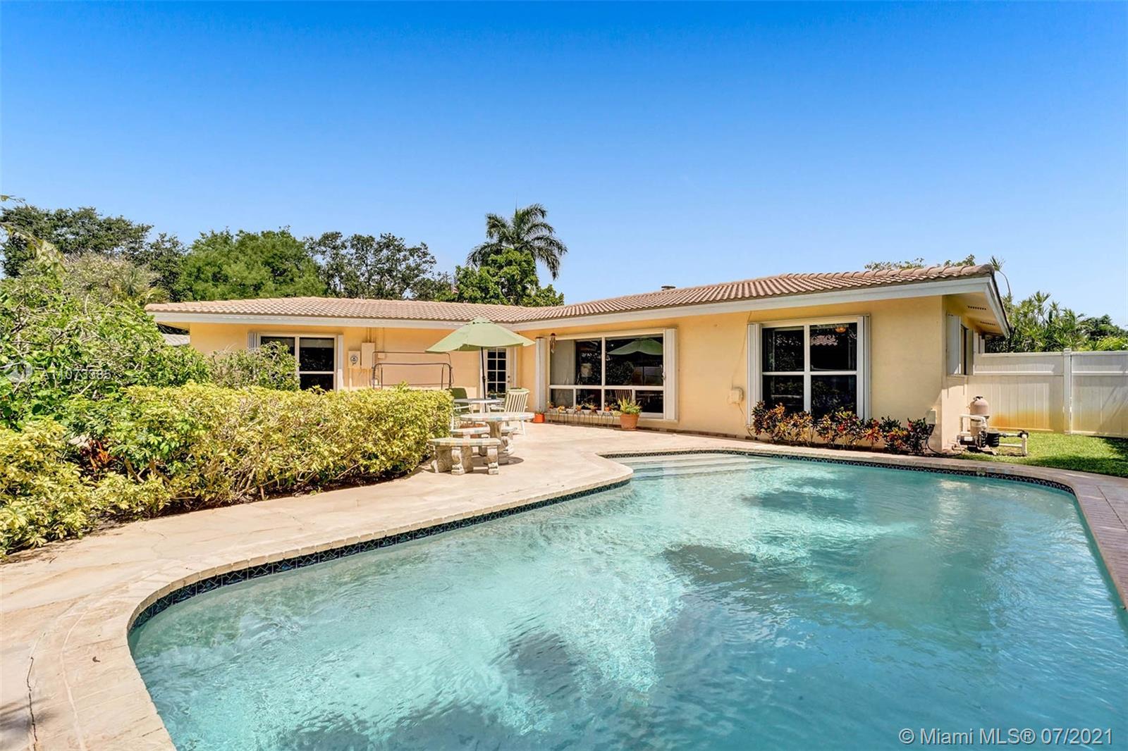 Charming Mid-Century one story pool home located in the desirable Coral Ridge neighborhood and the Bayview School district. The dining room, breakfast room and family rooms are bright with natural lighting from large windows that overlook the gardens and pool that are lush with mature landscaping and privacy hedges. Large living room features a wood burning fire place. Master en-suite with skylight and long walk in closet. 2nd and 3rd bedrooms share a Jack-n-Jill bath. Roof was replaced in 2007, newer Rheam AC and water heater. Laundry/Storage room. Accordion shutters throughout. Workshop shed with sink and utility area could be used as a she shed or pool side wet bar. dated kitchen, baths, electrical and plumbing. Under air 2406 as per owner.