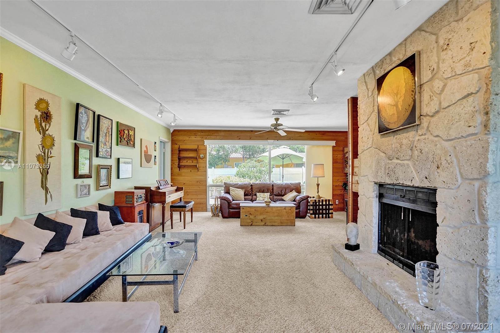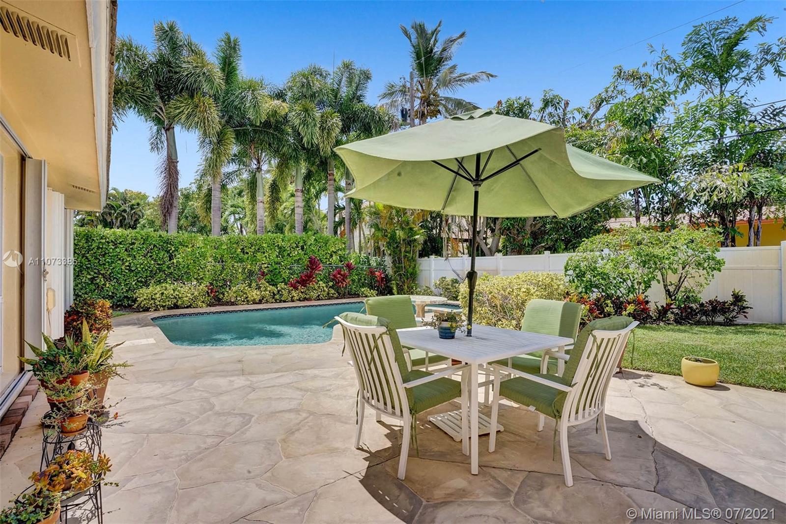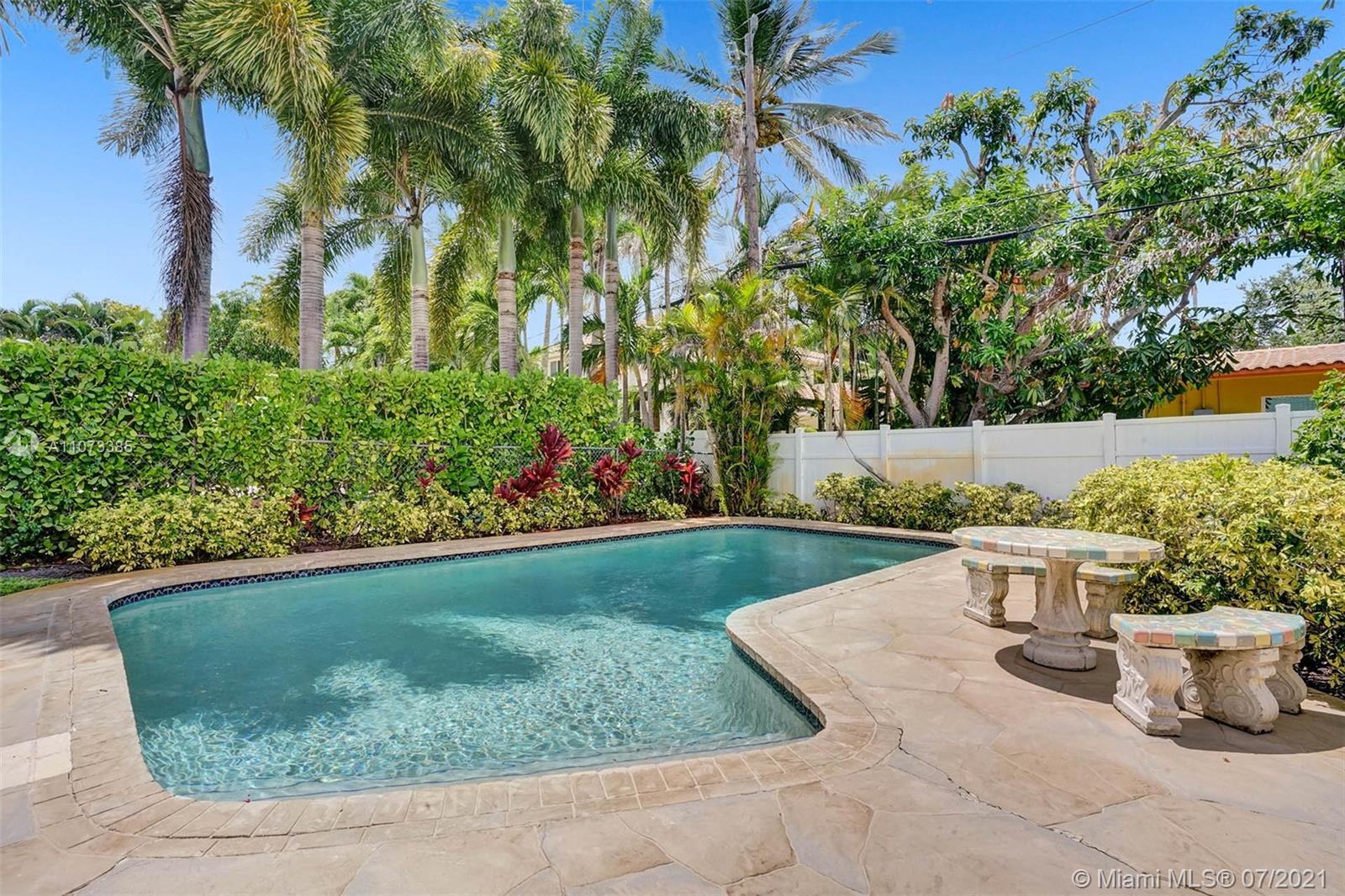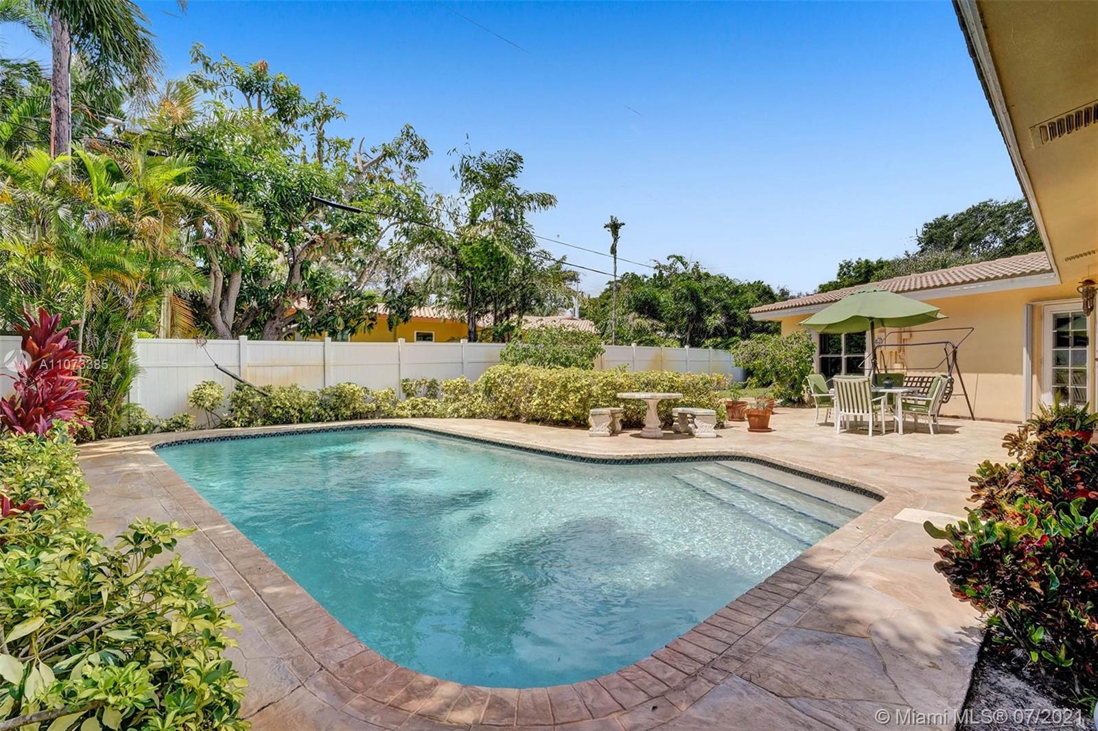 Charming Mid-Century one story pool home located in the desirable Coral Ridge neighborhood and the Bayview School district. The dining room, breakfast room and family rooms are bright with natural lighting from large windows that overlook the gardens and pool that are lush with mature landscaping and privacy hedges. Large living room features a wood burning fire place. Master en-suite with skylight and long walk in closet. 2nd and 3rd bedrooms share a Jack-n-Jill bath. Roof was replaced in 2007, newer Rheam AC and water heater. Laundry/Storage room. Accordion shutters throughout. Workshop shed with sink and utility area could be used as a she shed or pool side wet bar. dated kitchen, baths, electrical and plumbing. Under air 2406 as per owner.