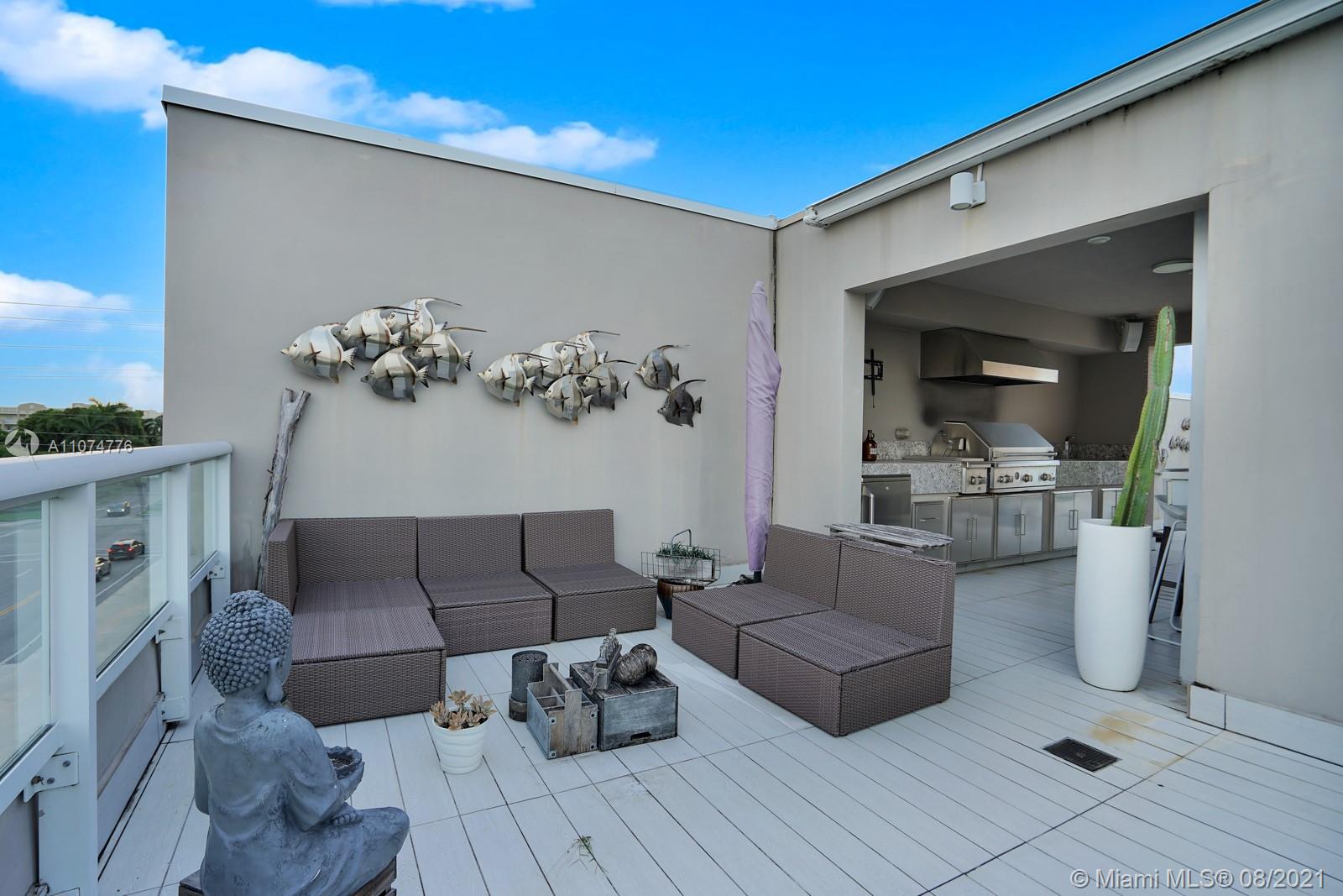 Model home corner unit 3 level with terrace, elevator, semi furniture, excellent location, 3 full bedrooms, 3 full baths, and 2 1.2 baths, Appliances SS, quartz countertop, wood cabinets, Included BB-Q en great view from a terrace. Cosmo-chic community gorgeous amenities to family enjoy.