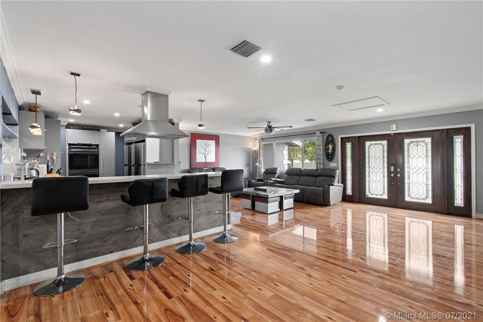 This Beautiful and Spacious 4 Bedroom 3 Bath Home with a pool is a Must-See. It has an Open Floor Plan with over 3,000 sq. ft. and has New tile throughout the living and dining room area from 2019. The Kitchen is truly chief's dream with plenty of space. The backyard is perfect for entertaining with Family and Friends with a pool and jacuzzi and a Large space under roof to place a summer kitchen for BBQ'ing. The side of the property is large enough for a boat and/or RV to be parked. Their is an in-law quarters attached to the property in the back and has its own kitchen, bathroom, living and dining room. This could be an Income Producing Property. FACTS: Roof 2016, Windows (Hurricane Impact) 2016, A/C 2016, Refrigerator 2019, New Pool Pumps 2019, Fence 2015