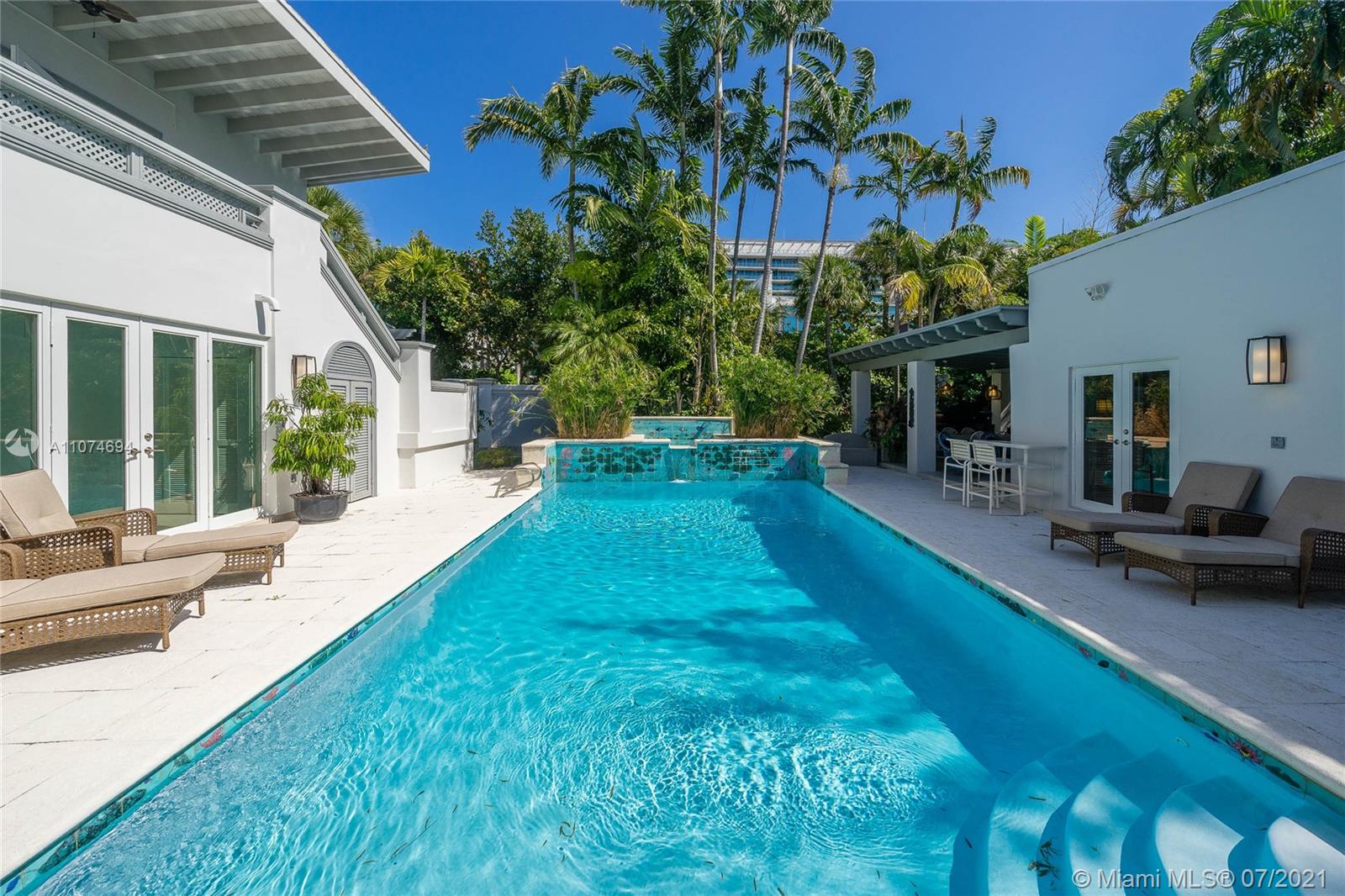 Amazing vacation home only 1 block from the Beach. With its own private heated lap pool/fountain & enormous entertainment space inside and out, this home has 4 bedrooms, 4 baths. Huge Gourmet kitchen, all allergy free cement floors, split bedroom plan. Master bedroom has large glass doors opening to pool/fountain & large corner covered patio. Lush landscaping, over sized lot of 12,000+ sq ft. on quiet street. Walk to beach, parks, restaurants, gyms, Starbucks, etc. Rent a golf cart and/or bikes and truly enjoy the Island life! Available short term/long term. Price varies upon dates. Separate 1bed/1bath apartment (without kitchen) can be available with an added price.