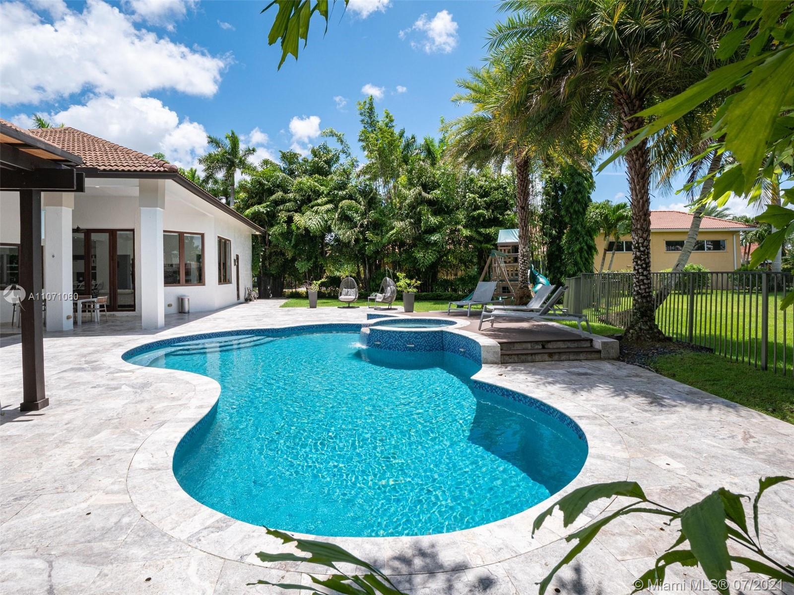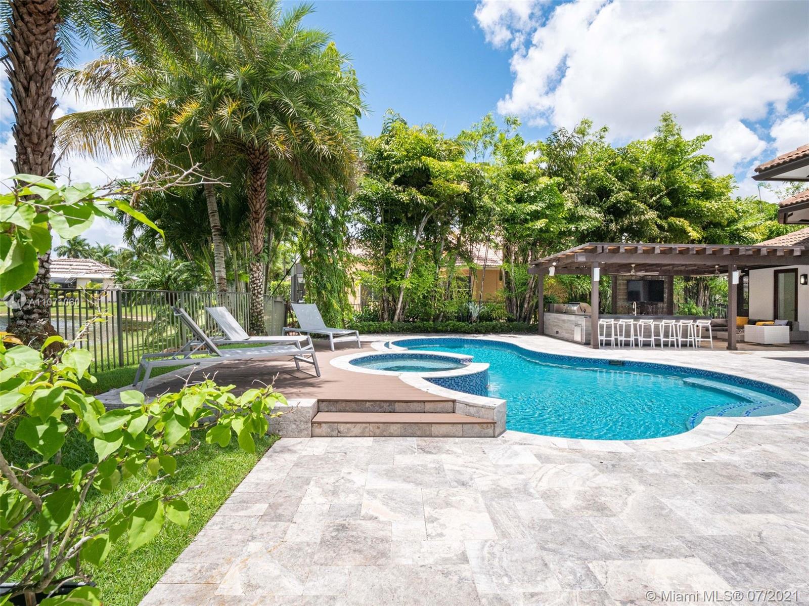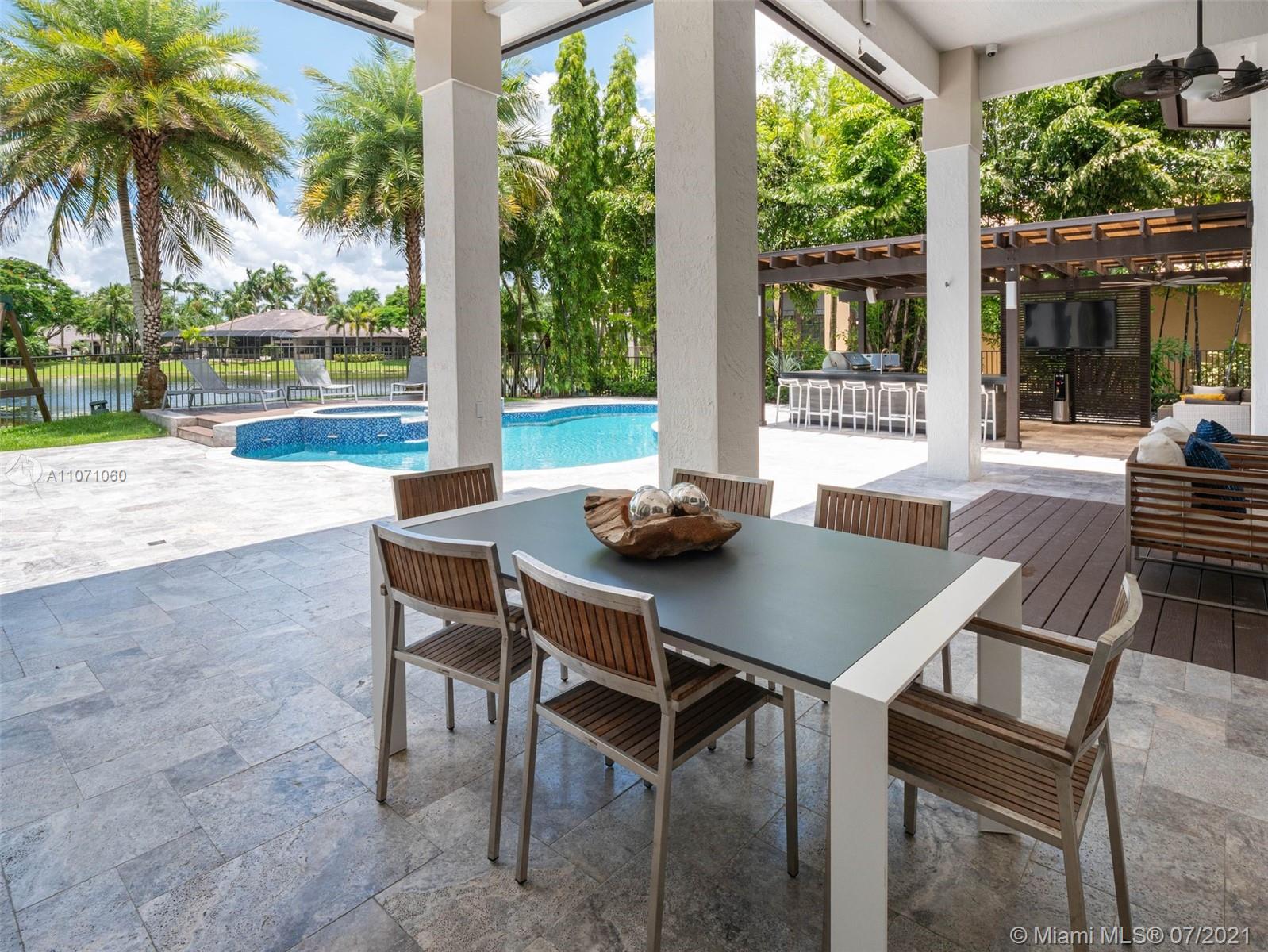 This Smart Home Is Immaculate and Fully Remodeled. Sound System, Cameras and Speakers by SONOS in The Entire Home. Featuring 5 BR/5.5 BA/Office/Gym/Sauna. Perfectly Set on a 1/2+ acres lot. Designer Bathrooms, Top-of-the-line GD Italian Kitchen, MIELE Appliances. Marble Floors, Smooth finish walls, Dry Wall Ceiling Designs with LED Lighting. Custom Closets, Cabinetry and Italian Doors. High-End Motorized Window Treatments. New Fast-Speed Pool Heater Pump, 4 AC units, Double-Pane Impact Windows & Central Vacuum are Some of The Features. Enjoy The Fully Fenced Backyard Perfect for Kids (Playground) & Pets. A Unique Outdoor Living Space With A Custom Designed Wood Pergola Fully Equipped (TV & Appliances). A 3-Car Garage with Cabinets/Storage. Stop by this Majestic Porte-Cochere and Come in!