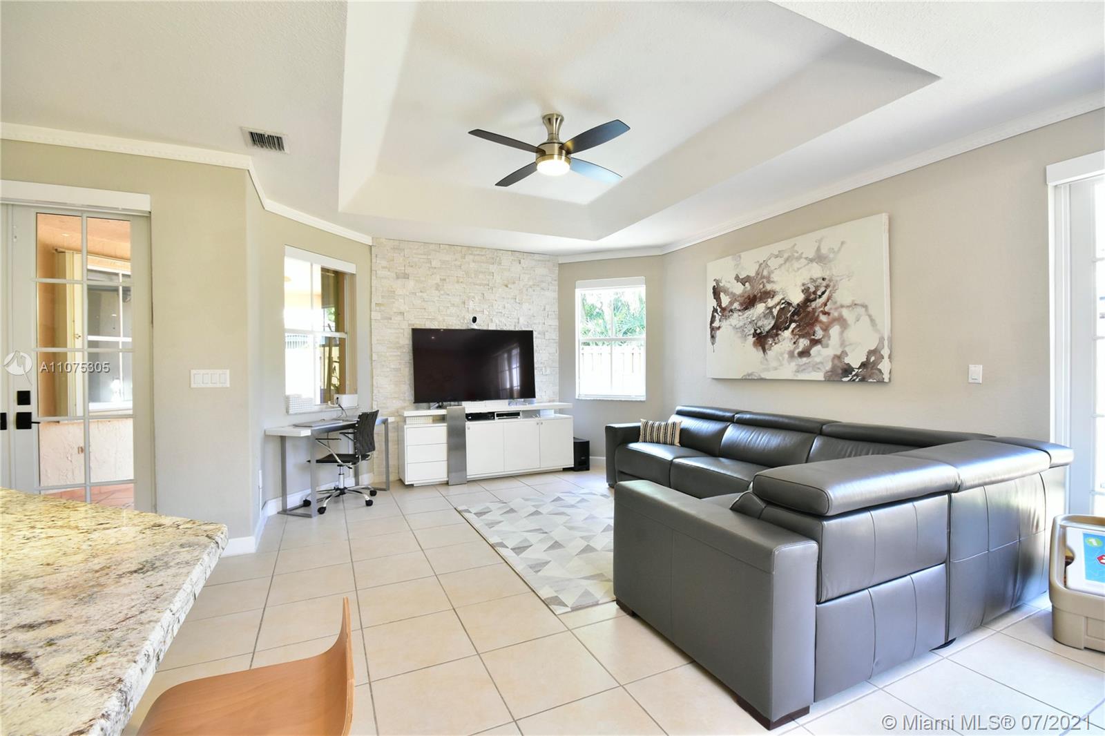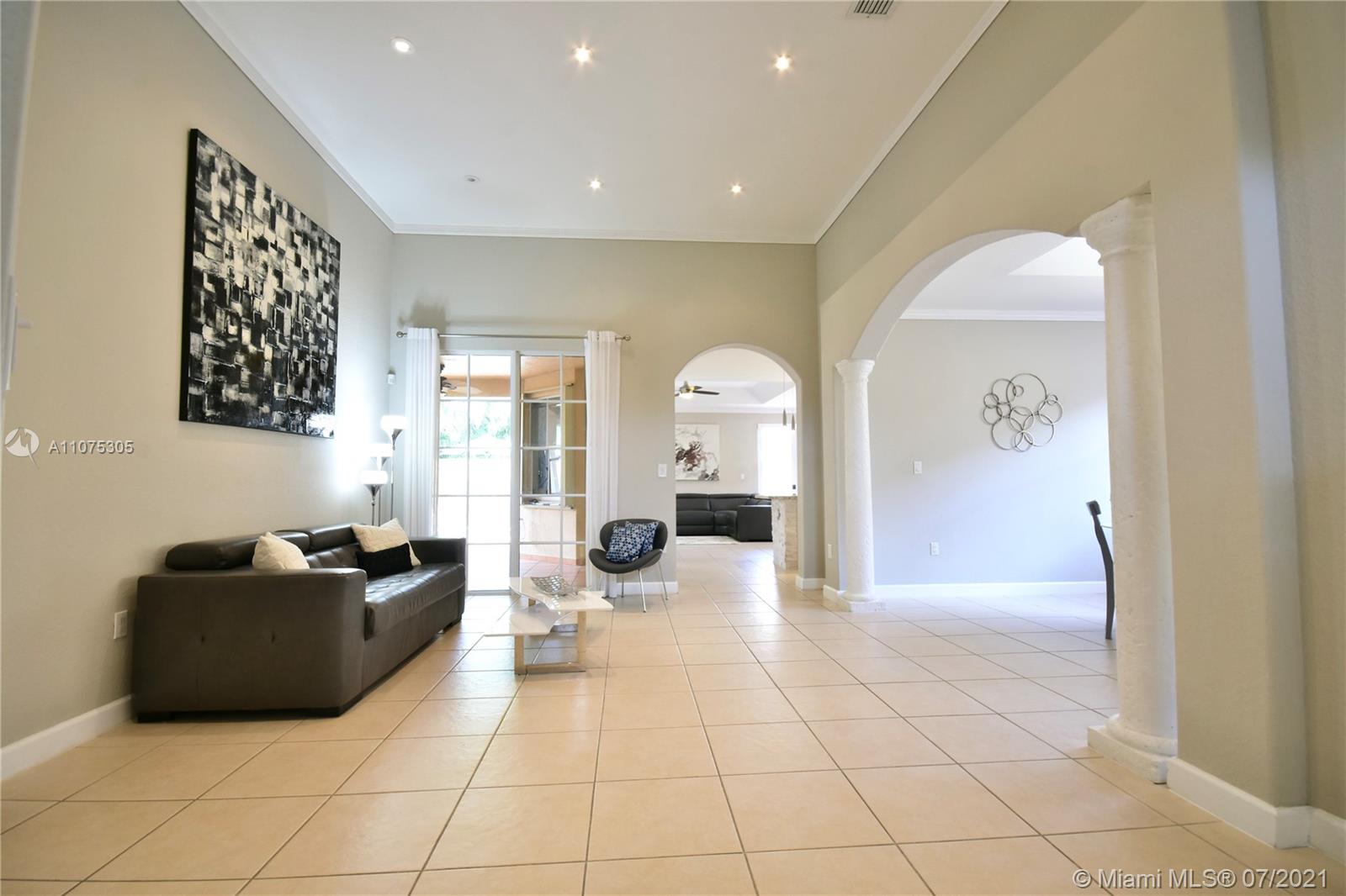 Enjoy this Beautiful and charm one story home in the desirable gated community of Goldvue Estates. Centrally located in Doral. 3 Bedrooms/ 2.5 Baths, exquisitely renovated and perfectly maintenance, it has tile throughout the house, a spacious & comfortable family room, open kitchen with SS appliances, Dining and living room separately, new water heater, new AC, w/Nest control, motion alarm inside, Closets built out. Nice gallery and Jacuzzi on the patio. Accordion Shutters all over the property. Enjoy a comfortable lifestyle, in a very quiet and great neighbor in Doral, community pool, Kids playground, 24 hrs security available. Close to main highways, shopping Malls and great schools. SEE **VIRTUAL TOUR**
