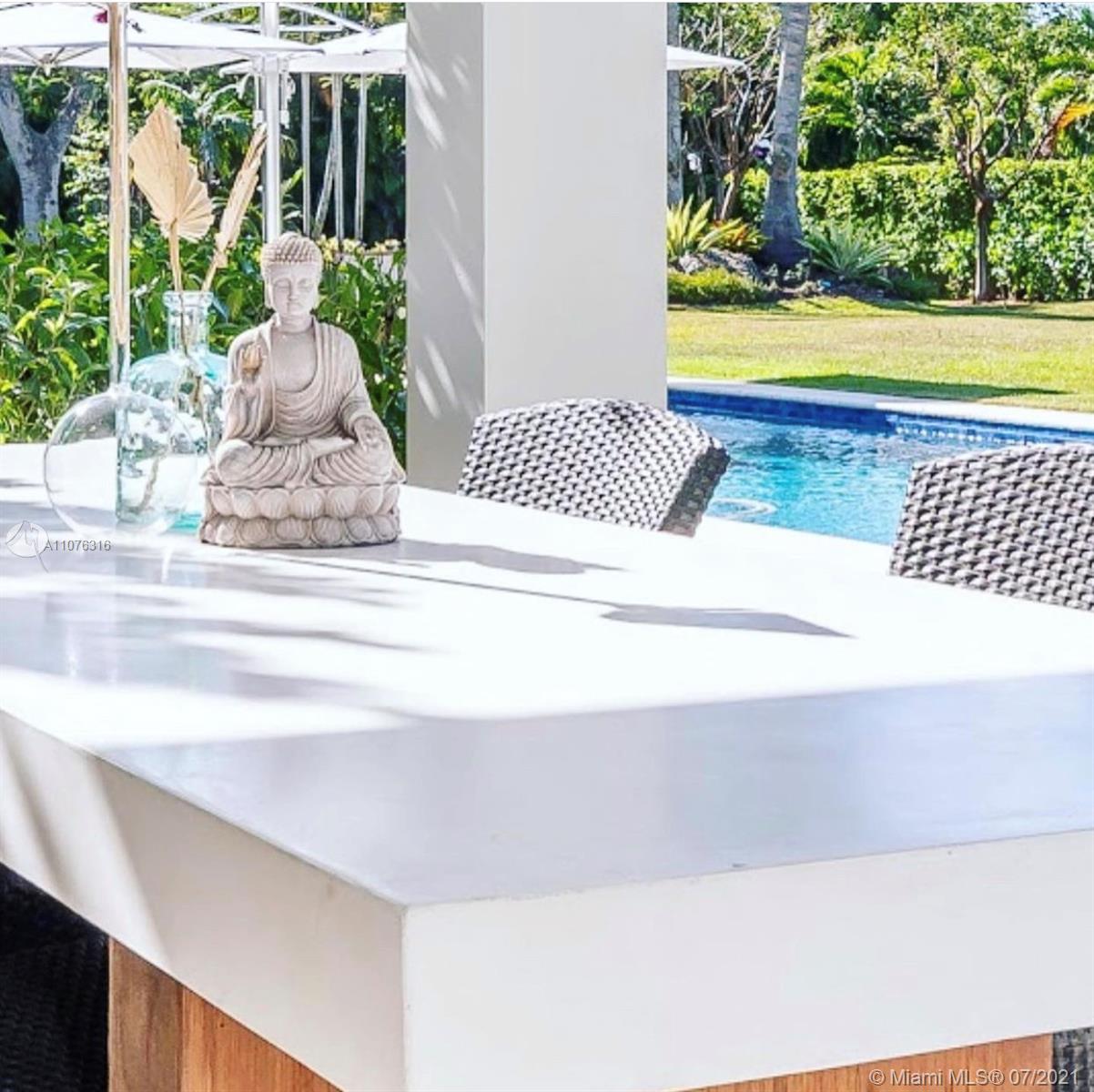 Exquisite Pinecrest Contemporary Plantation 6 bd/ 6.5 bath Estate built with finest finishes and unmatched attention to detail.Features include wire brushed white oak floors, coffered ceilings, custom cabinetry, and designer lighting fixtures. Designer kitchen w/oversized Island, Thermador appliances, gas range, pot filler faucet, 2 Dish/w, microwave drawer, wine cooler. Formal living, dining, informal dining, family, billiard room w/ wet bar, Den , & All custom closets. Summer kitchen w/ built-in gas grill, fridge, sink, sitting & eating areas, overlooking an oversized pool w/views to parklike deep acre lot. Completed 9/18 and fully updated 2021 w/ Added generator, Updatedducts,Tintedwindows, Blk out shades , Lighting,Landscaping, Water filtration system, Control 4 system.CURATED ESTATE