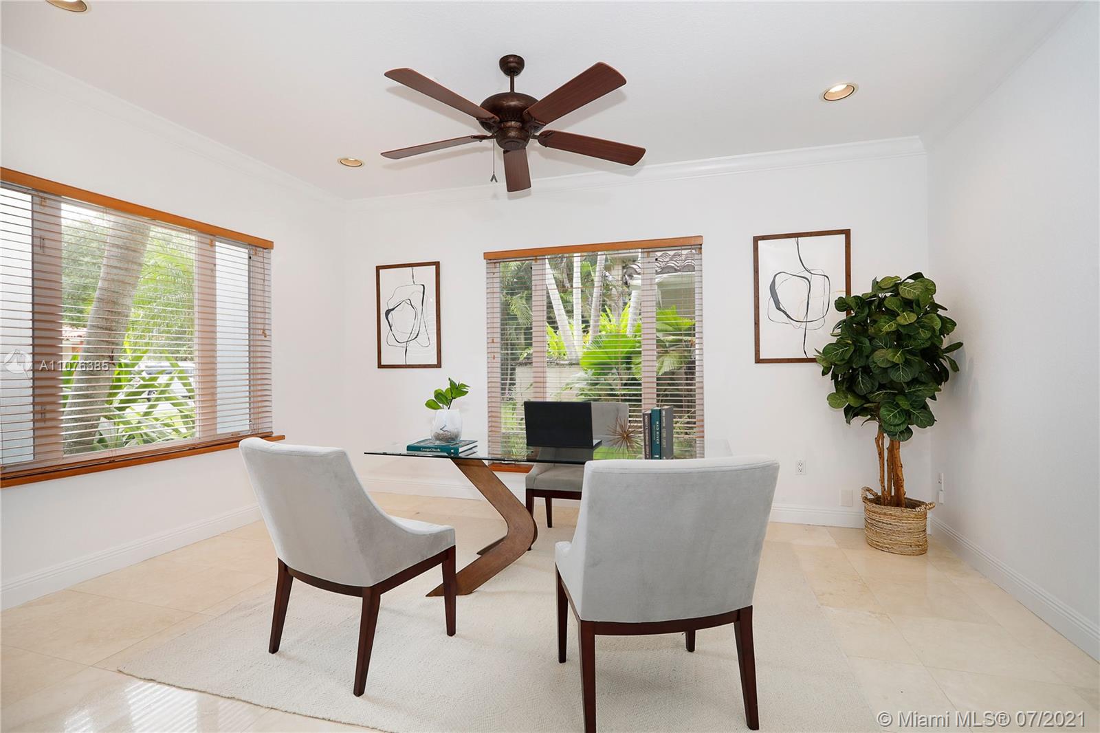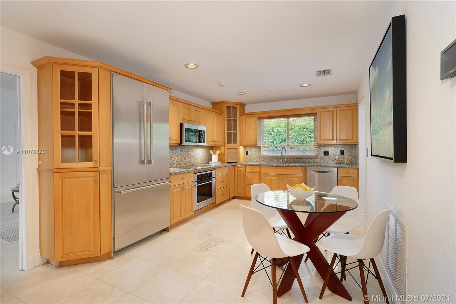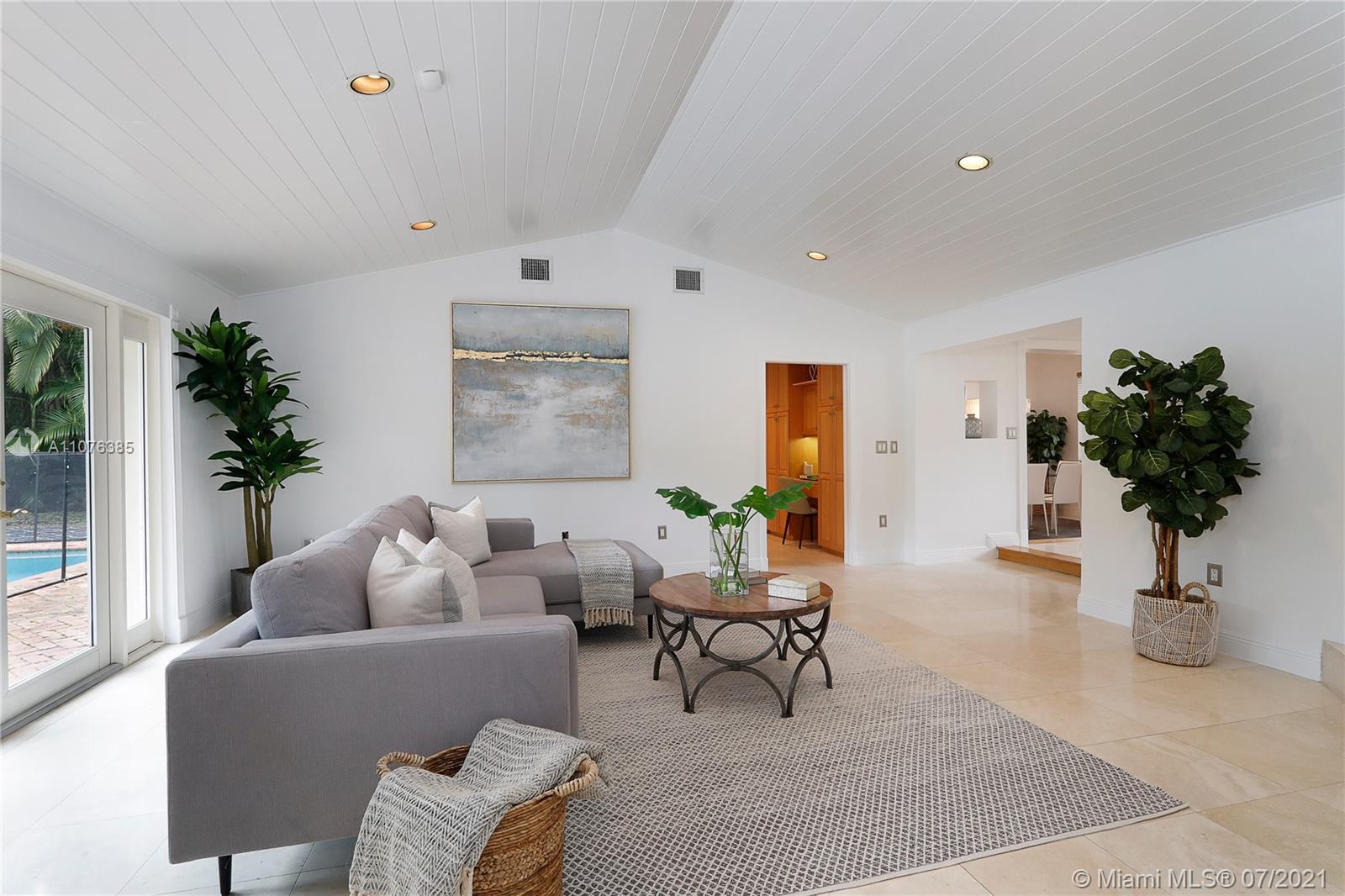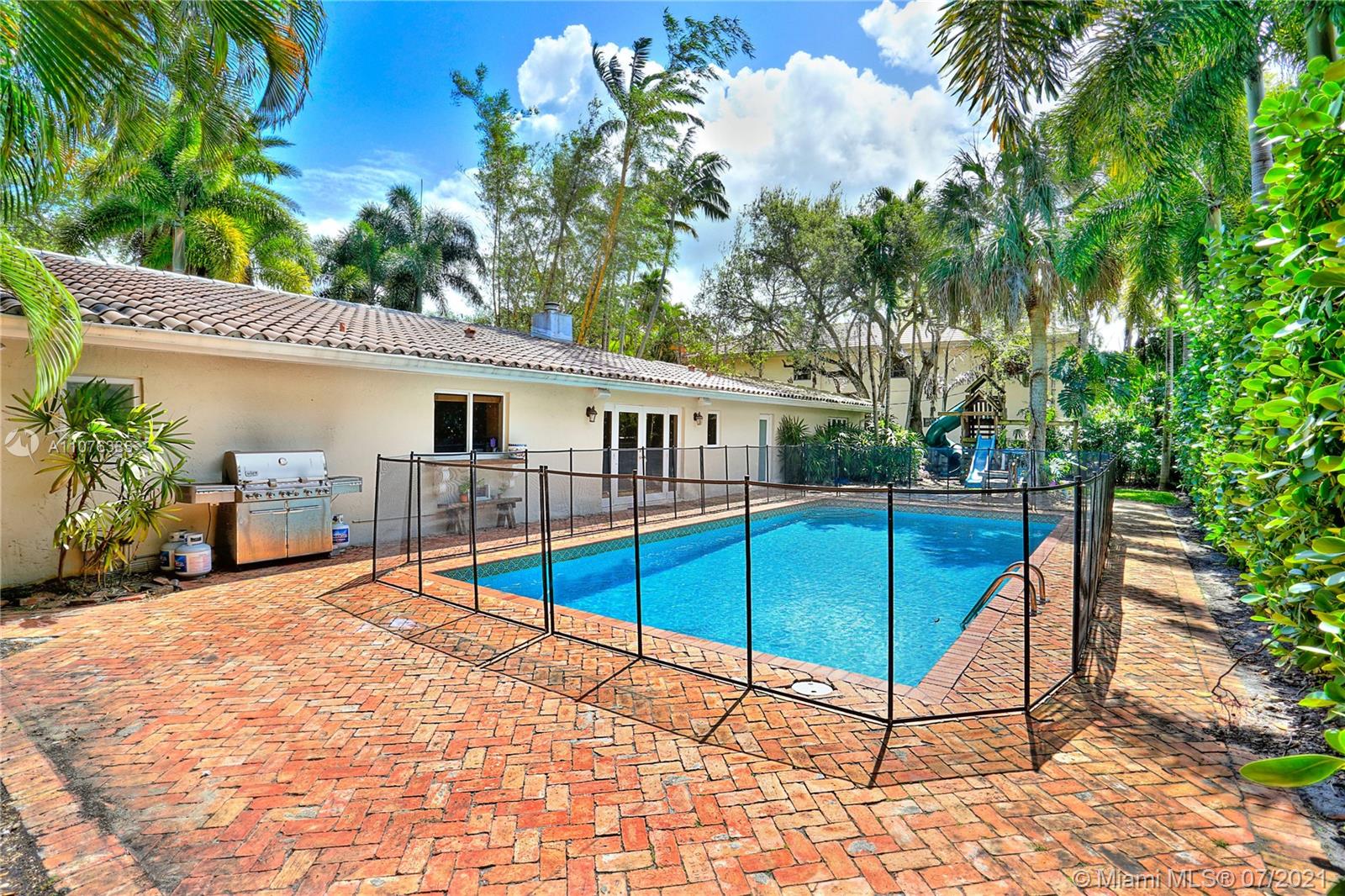 Perfect Coral Gables home beautifully renovated & located on quiet, tree-lined street with great parks nearby. This 4-bedroom, 3-bath house is complete with elegant marble & hardwood floors, & open spaces with lots of natural lighting. The spacious kitchen has a lovely view of the pool area, & features stainless steel appliances, granite countertops, & a breakfast area. The bright living room has high wood-beamed ceilings, glass French doors with serene views of the pool, & a fireplace to add to its character. The additional den can be used as a media room, office or play room, & the home has large closets & plenty of storage.Master bedroom has an en-suite bath, & closet with built-ins.Lushly landscaped yard with a fenced heated pool,circular driveway & 1-car garage, impact glass.