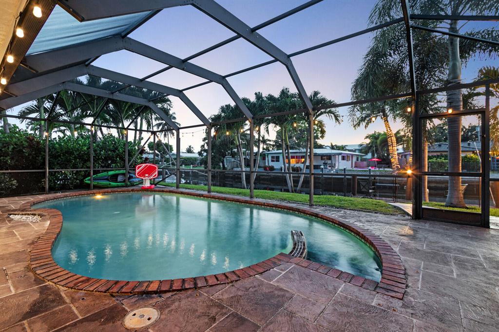 OVER 2500 SFT HOME IN IMPERIAL POINT; 76' WATERFRONT ! OPEN FLOOR PLAN w/ large great room & wall of windows bring in the light ! THREE BEDROOMS PLUS LARGE OFFICE. Custom kitchen, formal dining room, extra sitting area between kitchen and Great Room, inside laundry room. Large Master w/cabana bath, dressing area. Garage converted to air-conditioned office w/6 windows. Multi-speaker surround sound system. Brazilian wood and porcelain flooring, crown molding, IMPACT WINDOWS! Begin your new lifestyle with boating and a golf cart in this spectacular Cul-de-Sac home ! SOLAR PANELED HEATED/SALT WATER POOL and the HUGE OUTDOOR KITCHEN AND DECK offer a gathering area for entertaining and a water view around the curve inviting you to head for the open waters. Newer electric panels, AC, etc. You.