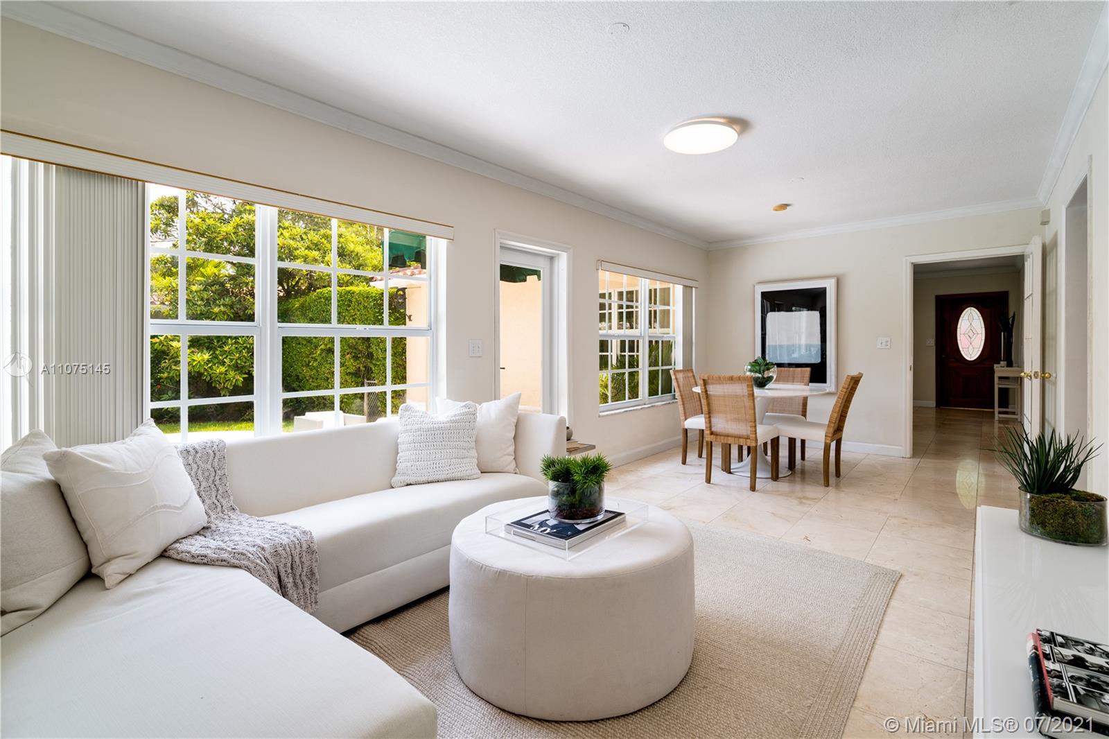 Urban living with the benefits of suburban space! Less than a 1/4 mile from Miracle Mile & all its restaurants & shops, lies this beautifully maintained & updated Coral Gables home on a 12,000 sf lot. Elegant brick circular driveway & front porch invite you in. A true split floor plan, there is an upstairs private primary suite w/free-flowing natural light, 2 walk-in closets, & a jacuzzi tub. There is a second en-suite bed/bathroom downstairs. Another 2/1 bedroom wing has original hardwood floors & plenty of windows for your vitamin D fix! There are family & living rooms w/impact doors/windows overlooking sizable yard w/free-form pool & deck. Spacious 2 car garage w/plenty of storage, & interior laundry. Lovingly cared for home ready for new family to make memories! A Very Special Home.