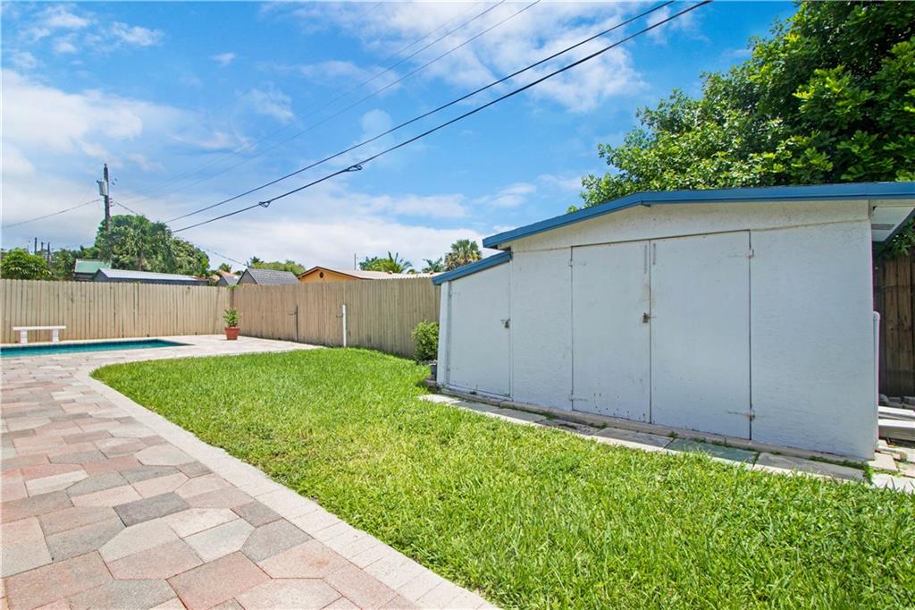 Beautifully maintained and updated pool home in a great location! Same owners for 40+ years. Pool, roof, and A/C were all redone in 2017. Updated electric panel in 2016. Kitchen and both bathrooms have been updated as well. Kitchen features stainless steel appliances and tons of storage space. Home features a split floor plan with 3 bedrooms, PLUS a den/office that could easily be a 4th bedroom. Accordion shutters all around for hurricane protection. Storage shed in the backyard and paver patio around the pool.