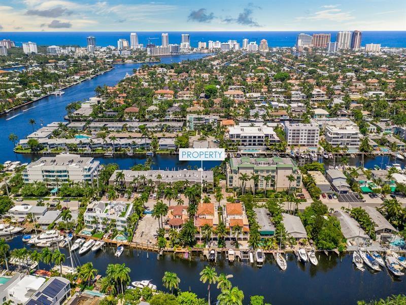 Own this luxurious tri-level waterfront townhome and experience outdoor living with a Direct Ocean Access deeded dock for up to 40 foot boat, a bike ride to the beach with its beautiful promenade, and Just Minutes from Las Olas Blvd with its renowned restaurants. Close to FLL airport. Lushly landscaped side entrance with double paneled wood doors leading to LR/DR with French Doors opening to patio and landscaped, fenced garden area with a view of the city and single-family estate homes. Lg gourmet kitchen, Elevator, marble, and wood floors. Impact Pella windows and doors. Large master suite with Sitting/Study area. Luxurious Master Bath with jetted tub. Stunning roof deck with outdoor shower and electric lines for Hot tub, BBQ etc . Roofed patio with tranquil views of canals and city.