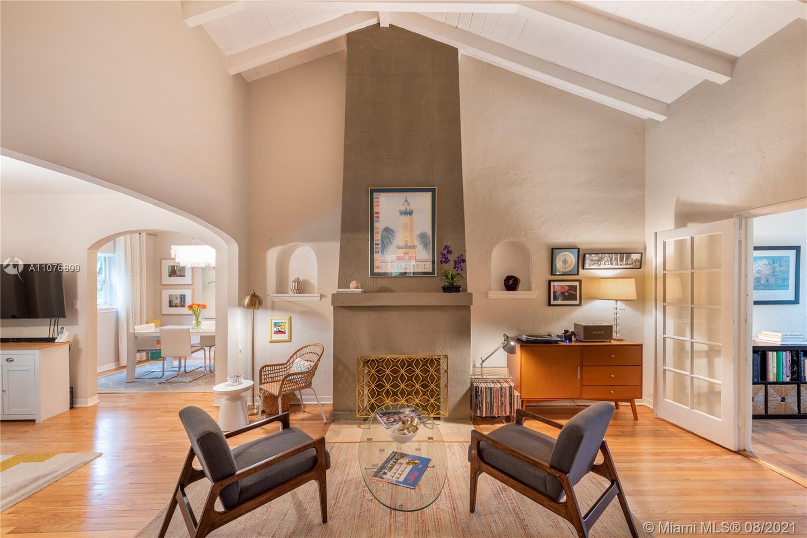 New Listing! Charming 3 bdrm/2 bath home with 1788 Adj.sq.ft on 7200 ft. lot with room for a pool. Live 2 blocks west of LeJeune, north of Coral Way, and around the corner from Granada Golf Course. Perfect for walking to nearby restaurants. Foyer entry, cathedral ceiling living room with fireplace, FamRm with FR doors to fenced back yard.Formal DR. The eat-in kitchen was a former porch now enclosed and has a beamed ceiling. Built-in 1937. High ceilings, wood floors, garage with laundry area. Bathrooms and kitchen were updated in 2012 with many impact windows added at that time. Hardwd floors added/refinished. Central A/C. Inspection report available from Allied. Short closing preferred. In choice Gables Prep School District for K-8 grades which is north of Palermo Avenue. FIRM PRICE.