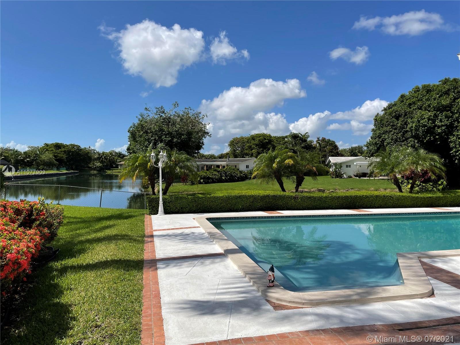 Rare find in the village of Pinecrest! Water front home in a desirable cul-de-sac. This beautiful home features an abundance of natural light, 5 bed, 4.5 bath + den/office, formal living & dining, family room with vaulted ceilings and built- in bar. In addition, wood floors, remodeled kitchen including large cooking island and breakfast nook, new bathrooms, and newer roof from 2016. As a bonus this home offers spectacular views of the pool and canal from all areas throughout the home. Great neighborhood with excellent public/private schools and wonderful parks nearby.