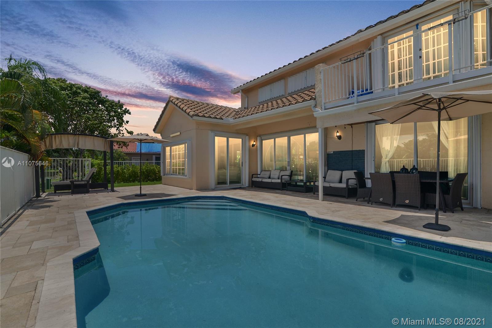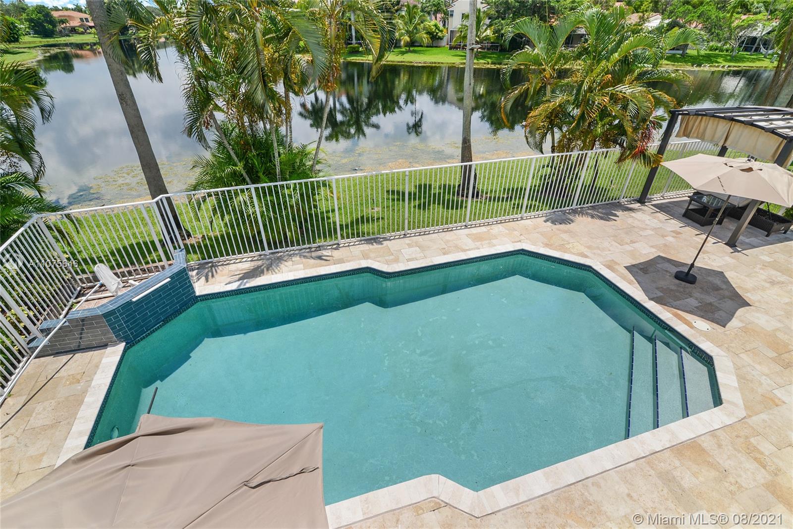 LOOK NO FUTHER! Beautiful Pool Home with Spectacular Lake View. 3 Bedrooms 3 Full baths. Very Bright home with Marble Floors inside. High ceilings. Master bedroom upstairs only. Accordion Shutters. Located in a small, Gated & centrally located enclave with resort style community pool LAGUNA SPRINGS II. WALKING DISTANCE to Indian Trace Elementary, Tequesta Trace Middle School and Park facilities, shopping. ROOF 2018. AC 2019.