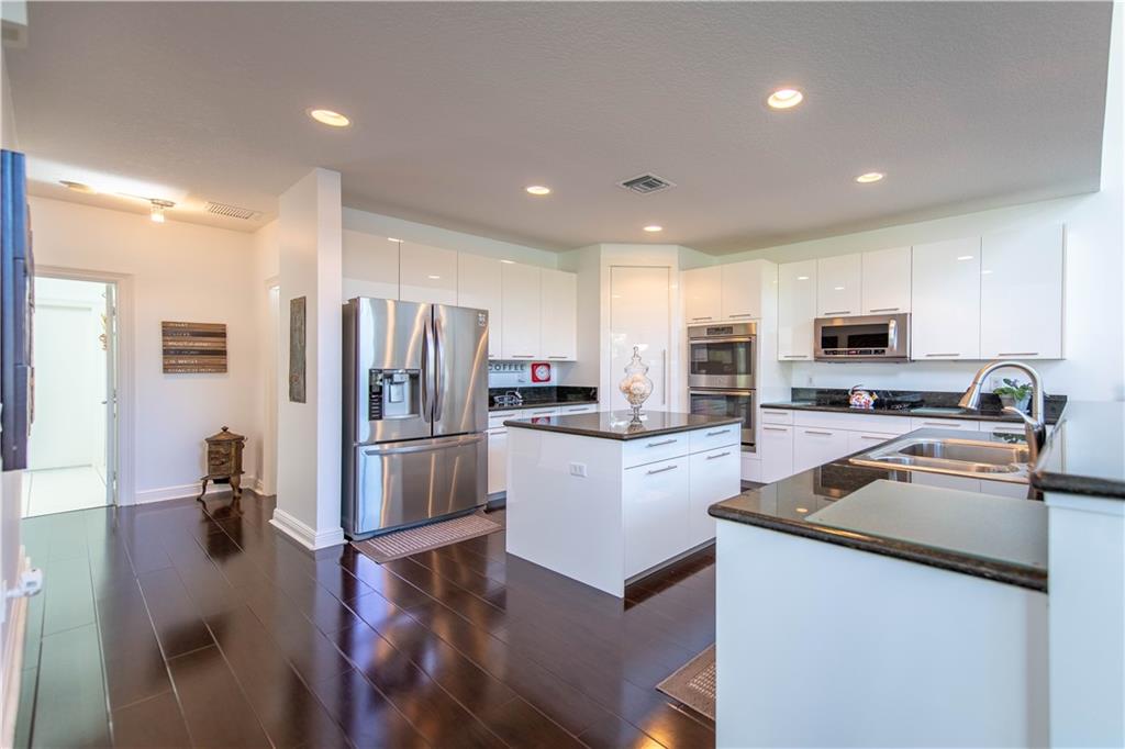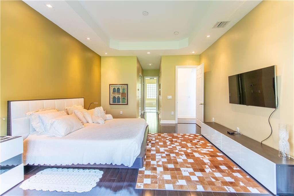 Contemporary luxury home, features 5 bedrooms + oversized glass-enclosed loft and 5 bathrooms. The house has 3 master bedrooms, main master bedroom is on the first floor along with another mini suite with its own private bathroom. The third master bedroom is on the second floor. Upgraded gourmet kitchen with center island, new appliances and granite countertops. Wood floors throughout the entire house. Great outside area with plenty of space for a pool.