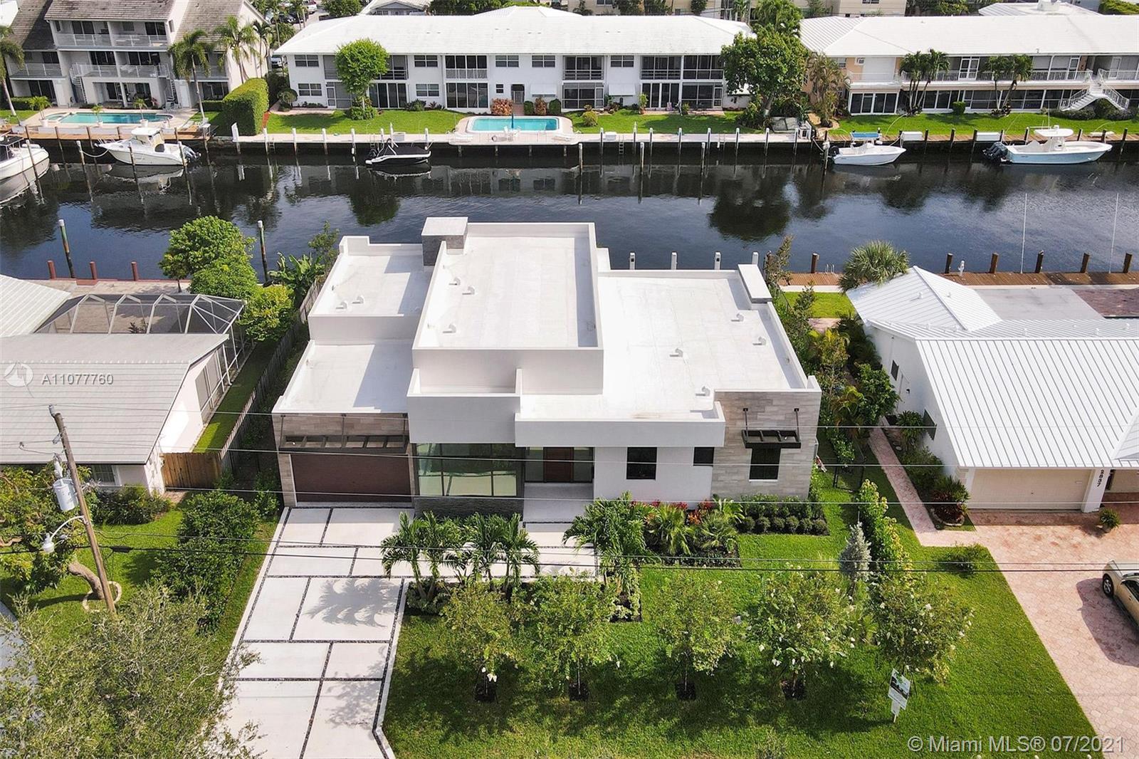 100 FEET ON THE WATER! Award winning Architect Steve Brandt and Designer Sarah Goldflust designed a modern home in one of Fort Lauderdale’s sought out neighborhood of Coral Ridge! This home includes a 4 bedroom 3.5 bath 2987 living and 364 SQFT covered patio, and a pool. Developers paid close attention to details when designing this modern home, with 14 foot ceilings 10 foot sliding glass doors that fully open to that yard and pool creating and indoor/outdoor feel. Special features include imported European Kitchen Made by DOCA, gas range stove top & BBQ, SUB ZERO & WOLF appliances, Brazilian imported Pivot front door, Italian imported flooring, and 100-foot concrete dock designed for boaters. Boat over in 1 min to the open intracoastal and enjoy the finest restaurants along the coast