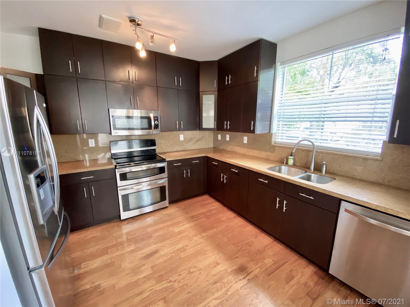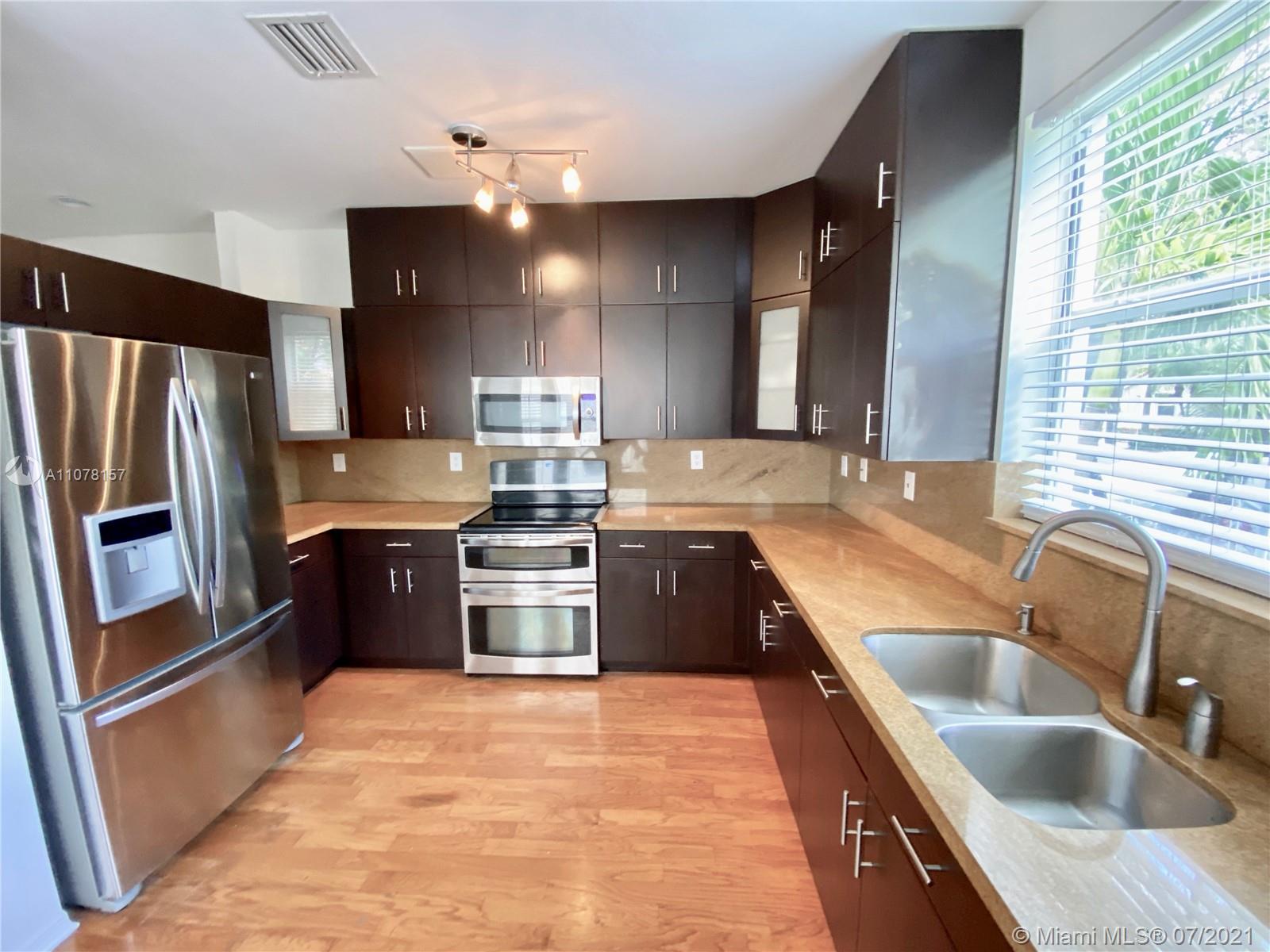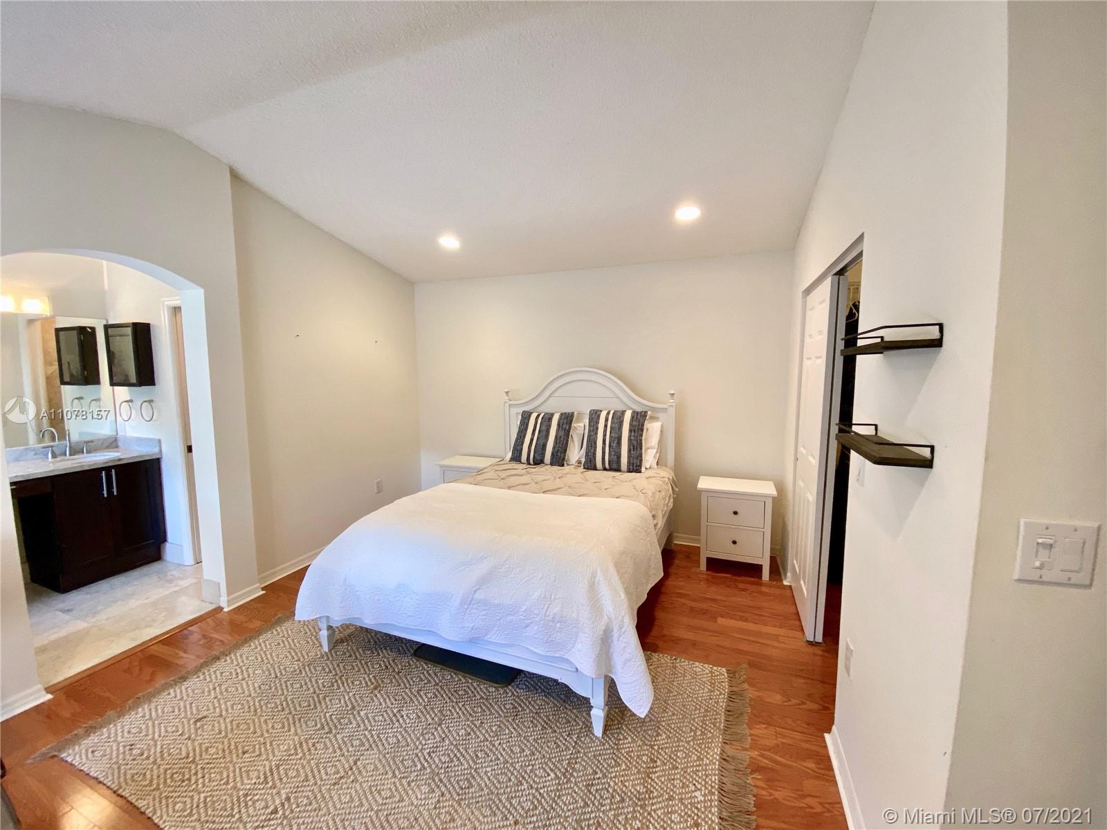 Lovely 3/3 townhouse located in desirable and guard-gated West Lake Village in East Hollywood. This spacious townhouse features beautiful genuine wood floors throughout, updated kitchen and bathroom with granite counters, plenty of storage space including an attic, washer/dryer room, driveway with 2 parking spaces, guest parking within walking distance. 1 bedroom and 1 bathroom on the first floor. Pet-friendly community. NEW ROOF - assessment paid in full by seller at Closing. Very well maintained community with 24-hour security patrol. Amazing amenities: 4 tennis courts, heated swimming pool, basketball , fully-equipped fitness center and children's park. 5 minutes from the beach. Close to supermarkets, restaurants, Gulfstream Park, Ft. Lauderdale Airport, Aventura mall, and more.