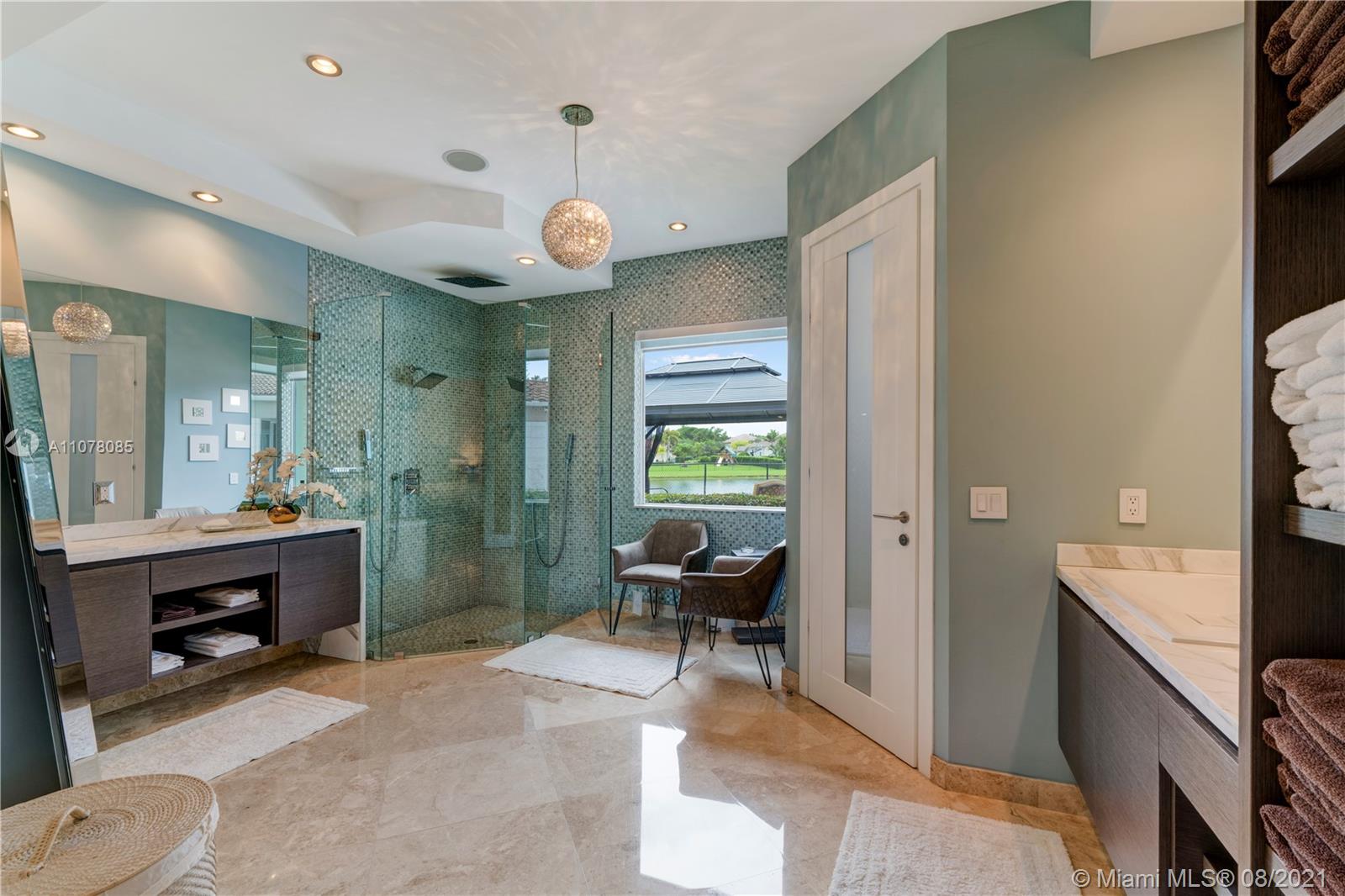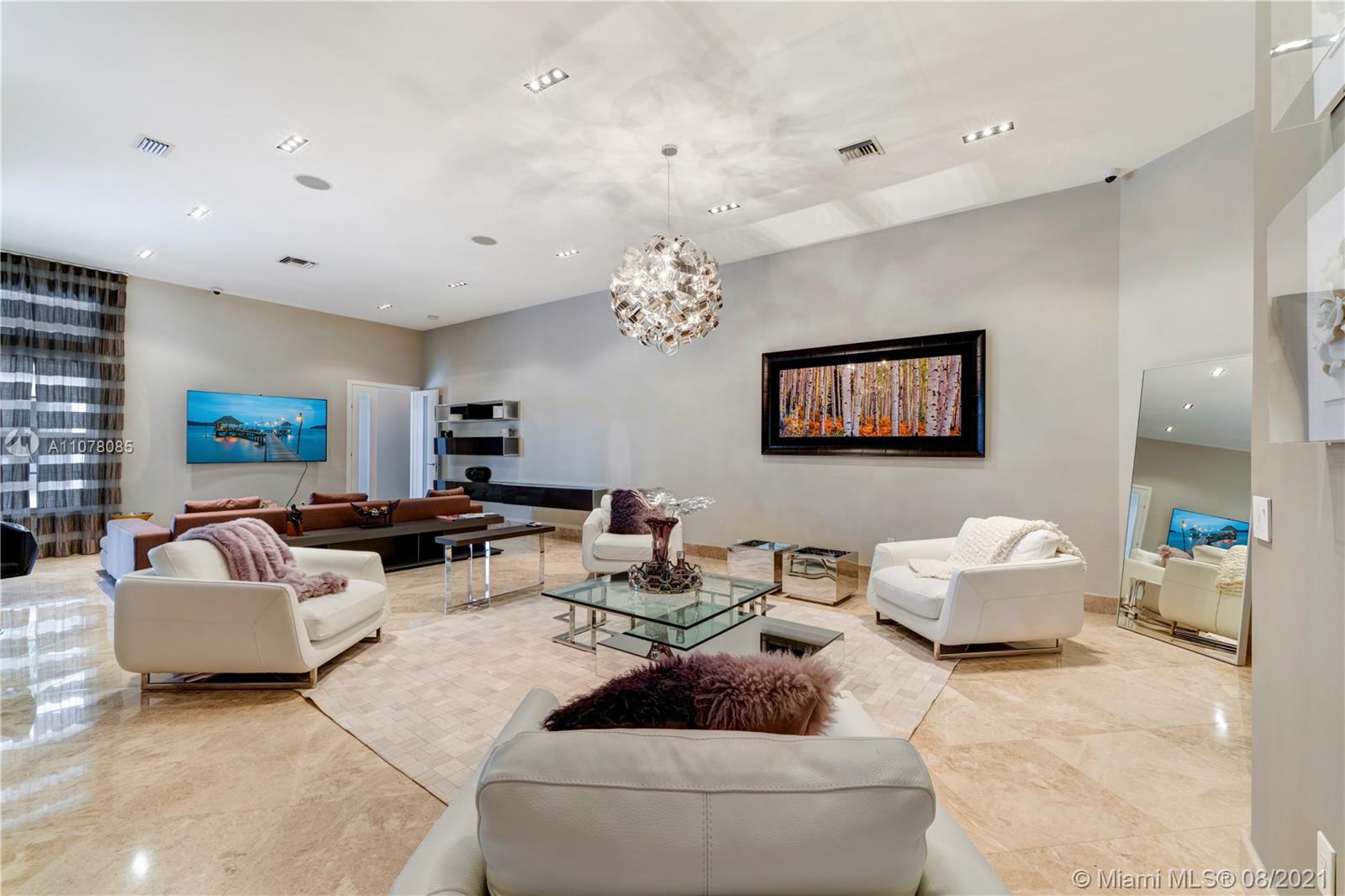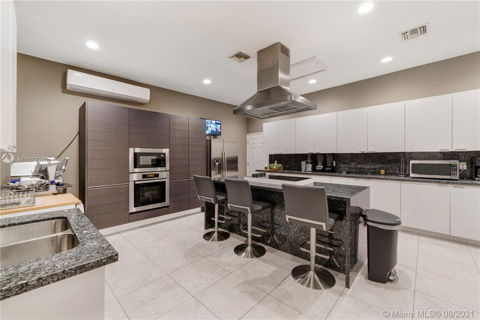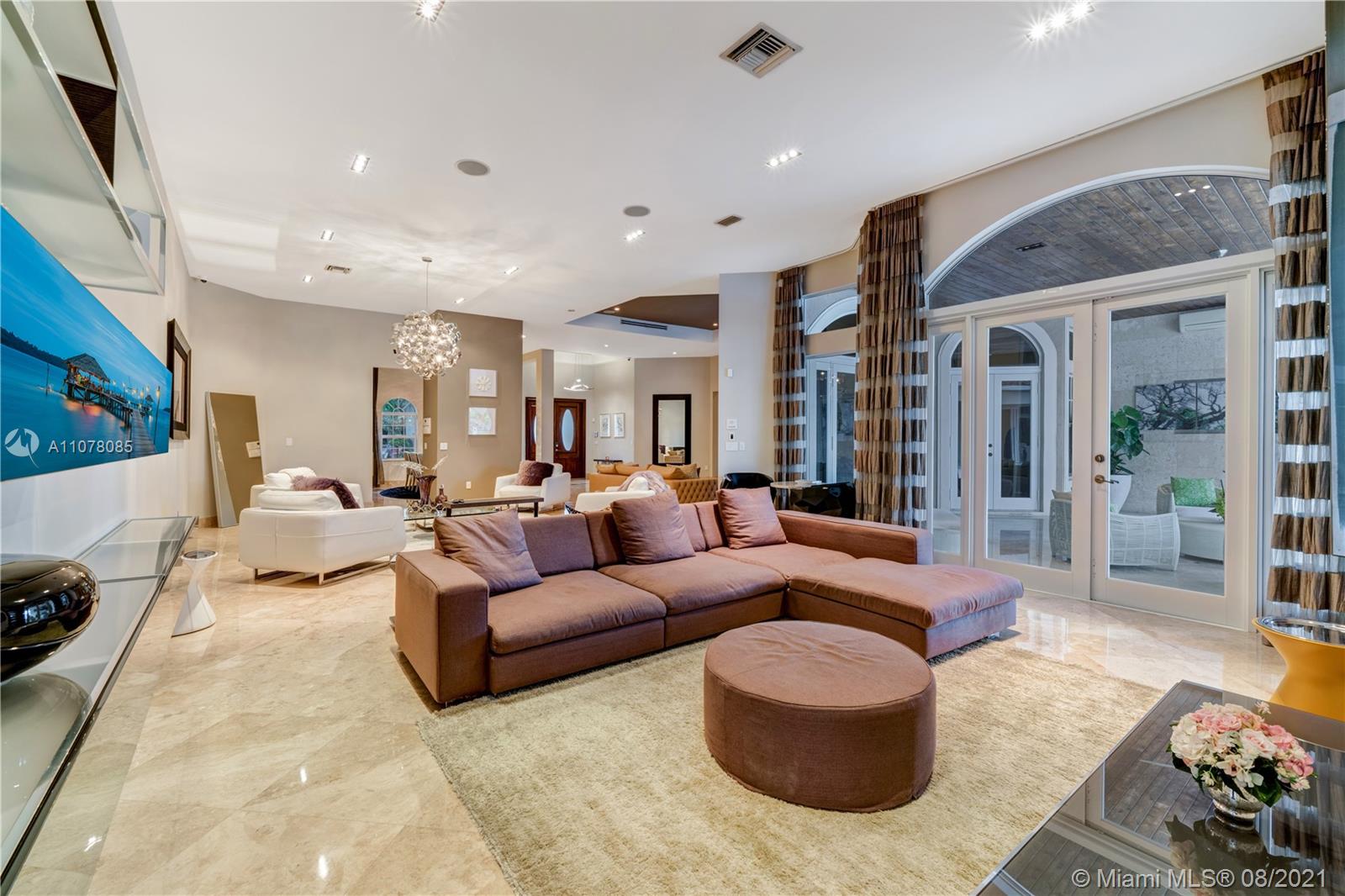 Amazing opportunity to live life in a spectacular home. Ready to move in, modern house professionally decorated and designed with 7 bedrooms, 8 full bathrooms, 1 half bathroom plus office. All Italian wooden doors, lamps, sofas, and Fendi rugs, surround sounds system, communication system throughout the house, alarm with face recognition system, and movement sensors, inside and outside the house, High electric curtain system impact windows, modern Dana Armani kitchen, marble floors, marble bathrooms, Molteni Closets, swimming pool, and jacuzzi with heater and hydromassage system, retractable awnings in the pool area. The house is perfect for families who are looking for an outstanding outdoor area. Professional gazebo, wood deck, and summer kitchen area with grill.