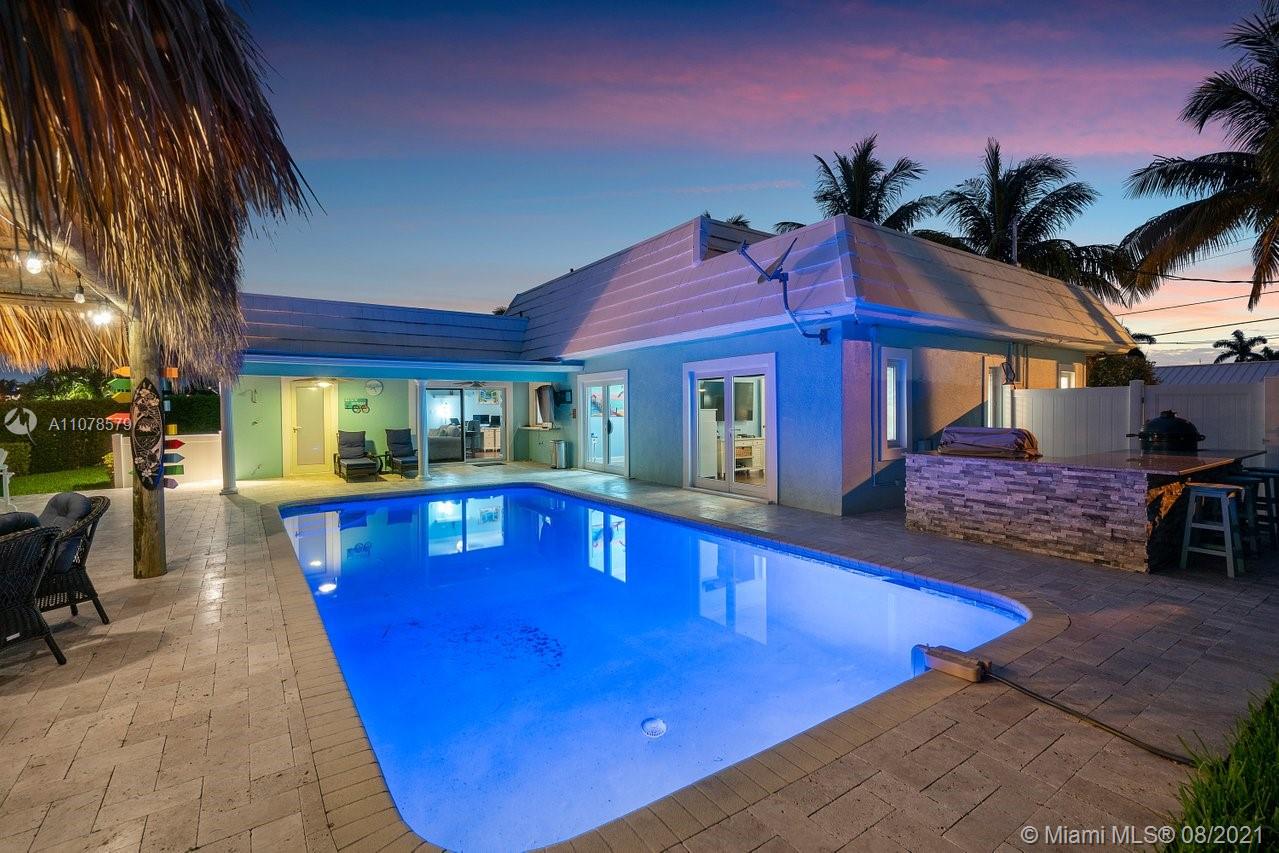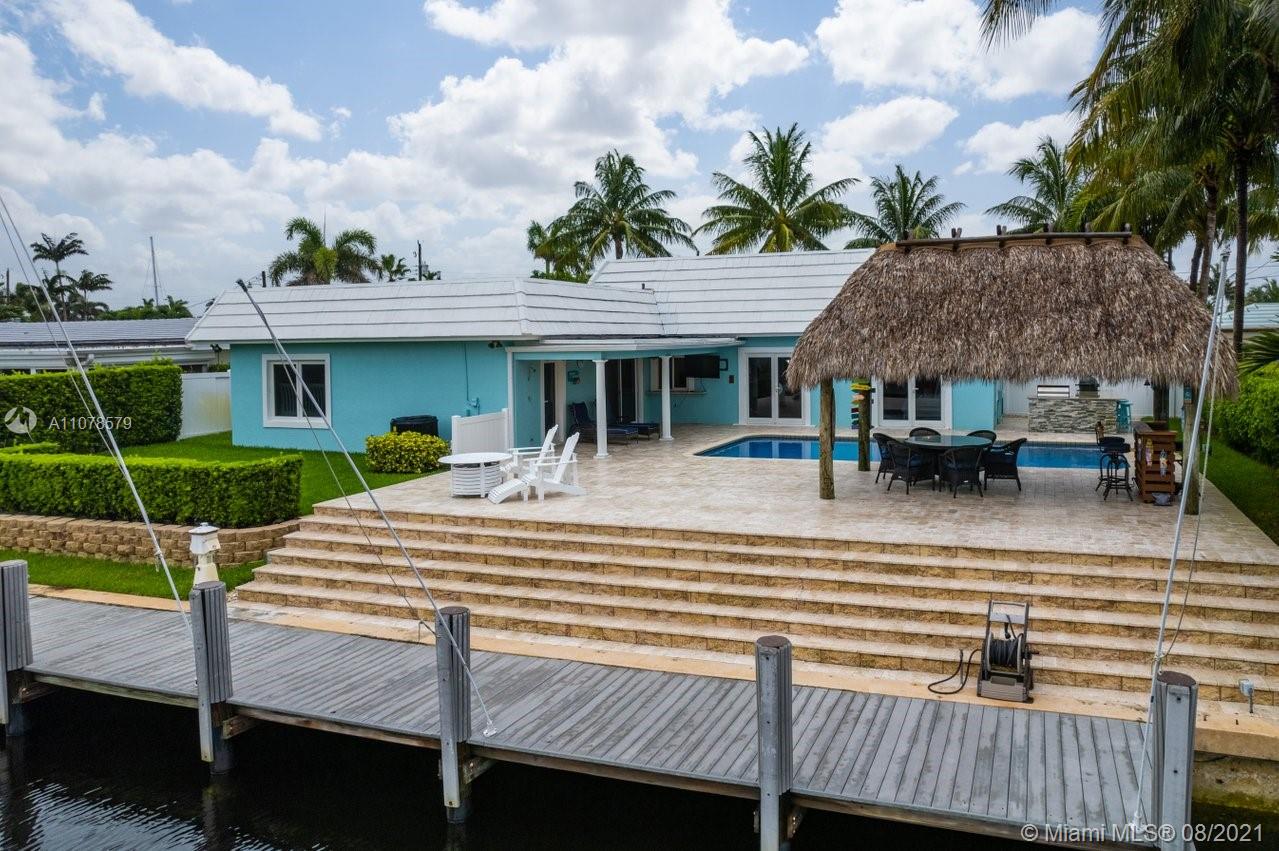 A boater's dream home with a private dock 90ft on the water and just minutes from the Hillsboro inlet and the open ocean with No Fixed Bridges. The property is Completely Remodeled and Move-in Ready. Featuring hurricane impact windows & doors, a spacious layout with wood floors throughout, beautifully upgraded kitchen and bathrooms. A work of art backyard offering a private Pool, an Outdoor Kitchen with a Tiki hut all overlooking the dock and water. Great curb appeal with tropical landscaping, circular paved driveway and a 2 car garage.